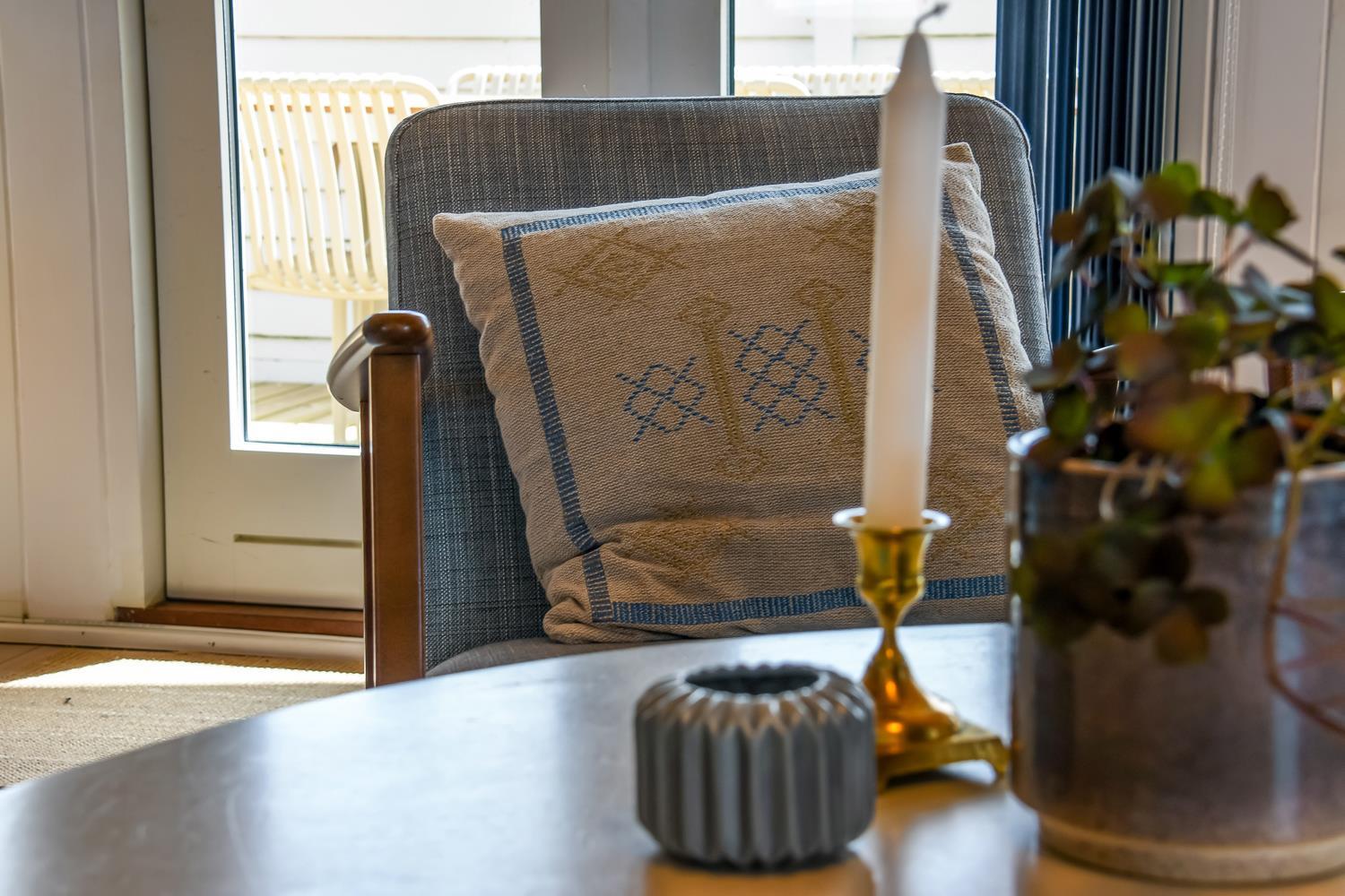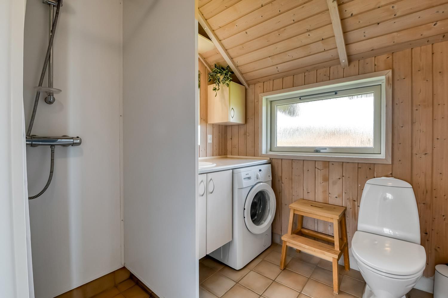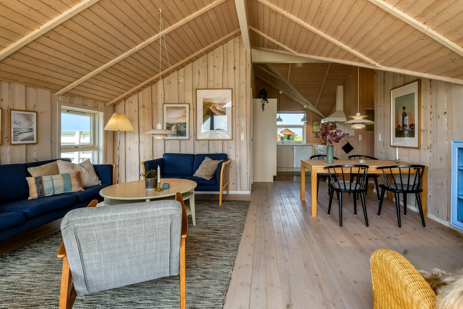 Så snart man har hentet nøglen til huset kan ferien begynde. Man bliver mødt af et hyggeligt indrettet hus på 70 m2 som er bygget 2005. En lille entré byder velkommen til et lyst og indbydende opholdsrum. Opholdsrummet består af en stor og godt udnyttet stue med loft til kip og et køkkenhjørne. I stuen er der et stort vinduesparti der giver et godt lysindfald og blik på den nye terrasse. Desuden er der hyggelige polstermøbler og fjernsyn med danske og tyske kanaler. Brændeovnen bidrager til god opvarmning og ekstra hygge på køligere dage, og lænestolen lige ved siden af indbyder til afslapning ved f.eks. at læse en bog. Køkkenhjørnet er veludstyret med blandt andet glaskeramisk komfur, emhætte, køle-/fryseskab, opvaskemaskine og mikroovn. I huset er der et fint lyst badeværelse med toilet, håndvask og bruser og der er også en vaskemaskine. Badeværelse opvarmes med gulvvarme. Til sidst er der tre hyggelige soveværelser. Et værelse er med dobbeltseng, det andet værelse er med to enkeltsenge og det sidste værelse er med en køjeseng.