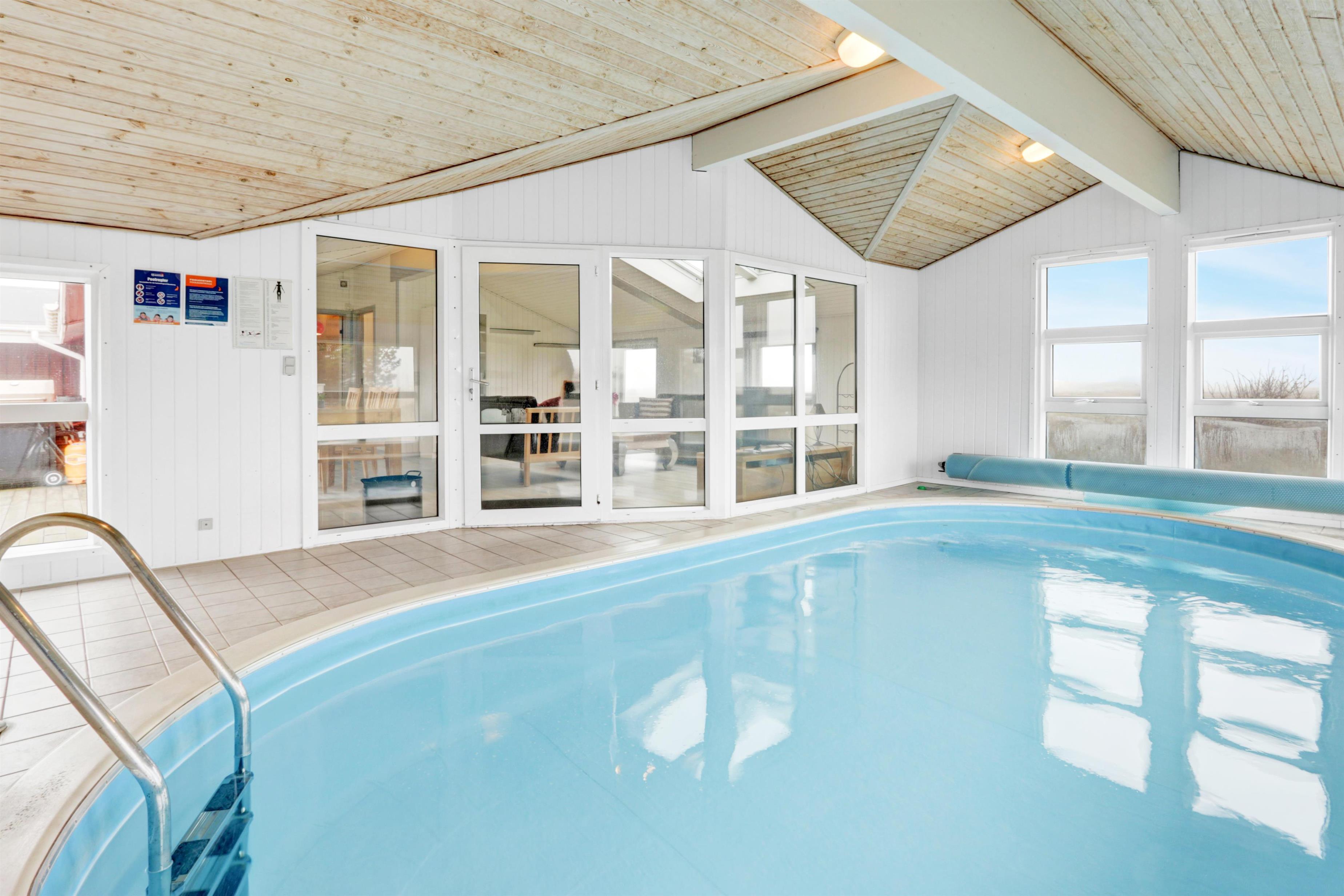 Det indbydende poolrum byder på en 6,0 x 3,0 x 1,0 m swimmingpool samt spabad til 2 personer. Poolen får varmt vand via en separat varmepumpe, hvilket giver en mere energivenlig drift. Fra poolrummet er der adgang til badeværelse med bruseniche og direkte adgang til husets sauna. Derudover findes et ekstra badeværelse med toilet, håndvask, bruser og vaskemaskine. Poolafdelingen og begge badeværelser har klinkegulv med gulvvarme.