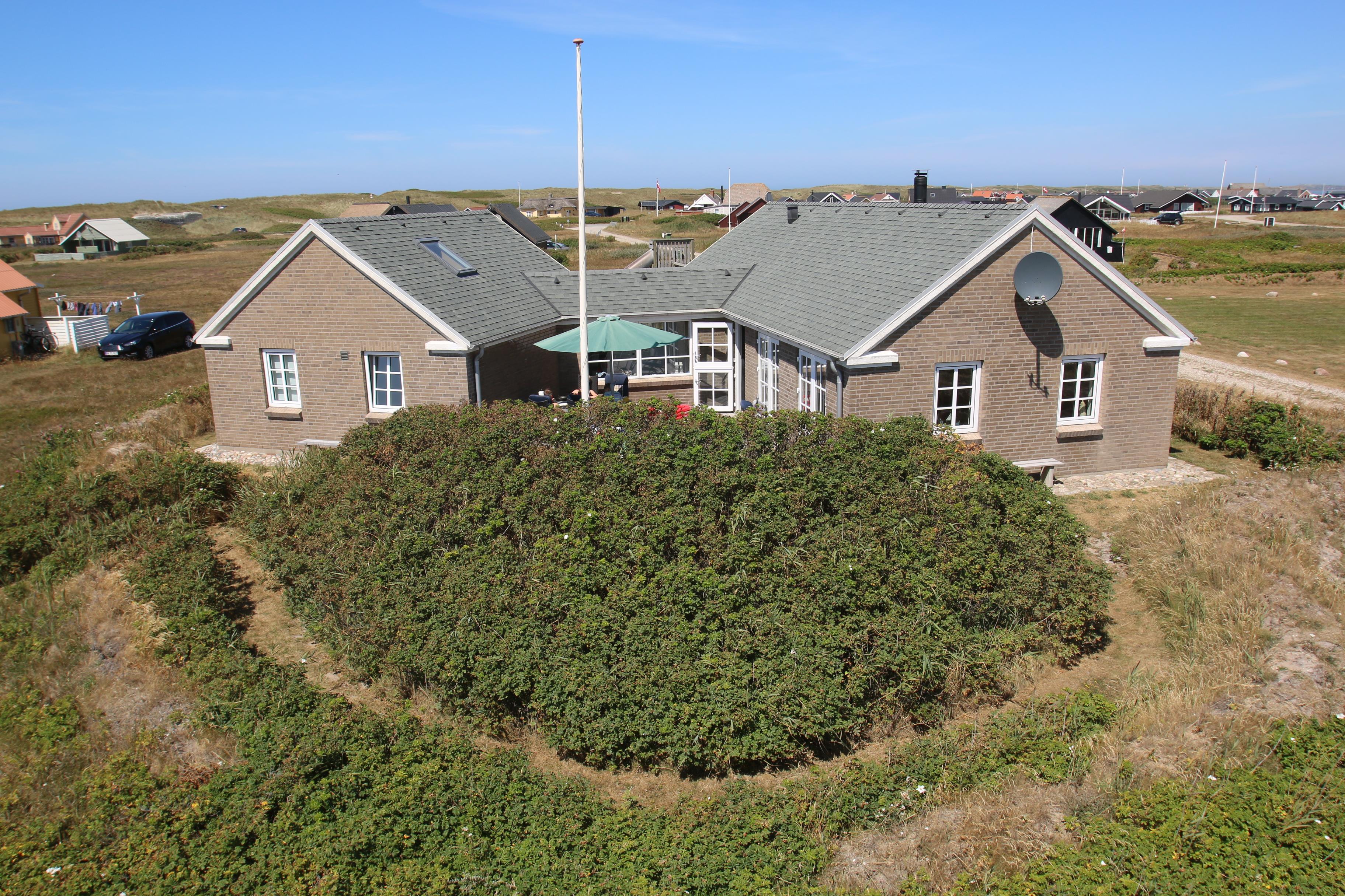 Huset har flere gode terrasser med havemøbler og grill samt 2 solvogne. Een af terrasserne er endda aflukket via et mindre stendige. Haven byder også på en legeplads til børnene med sandkasse, gynger og rutsjebane. Her er endda også en bænk til de voksne, så de kan sidde og betragte børnene ellers kan man også holde øje med dem fra terrassen. I det hele taget er der rigtig mange gode muligheder for at sidde rundt om huset og nyde udsigten. Vesterhavet er ikke langt borte og her kan man ligeledes solbade, vandre, flyve med drage eller lystfiske.