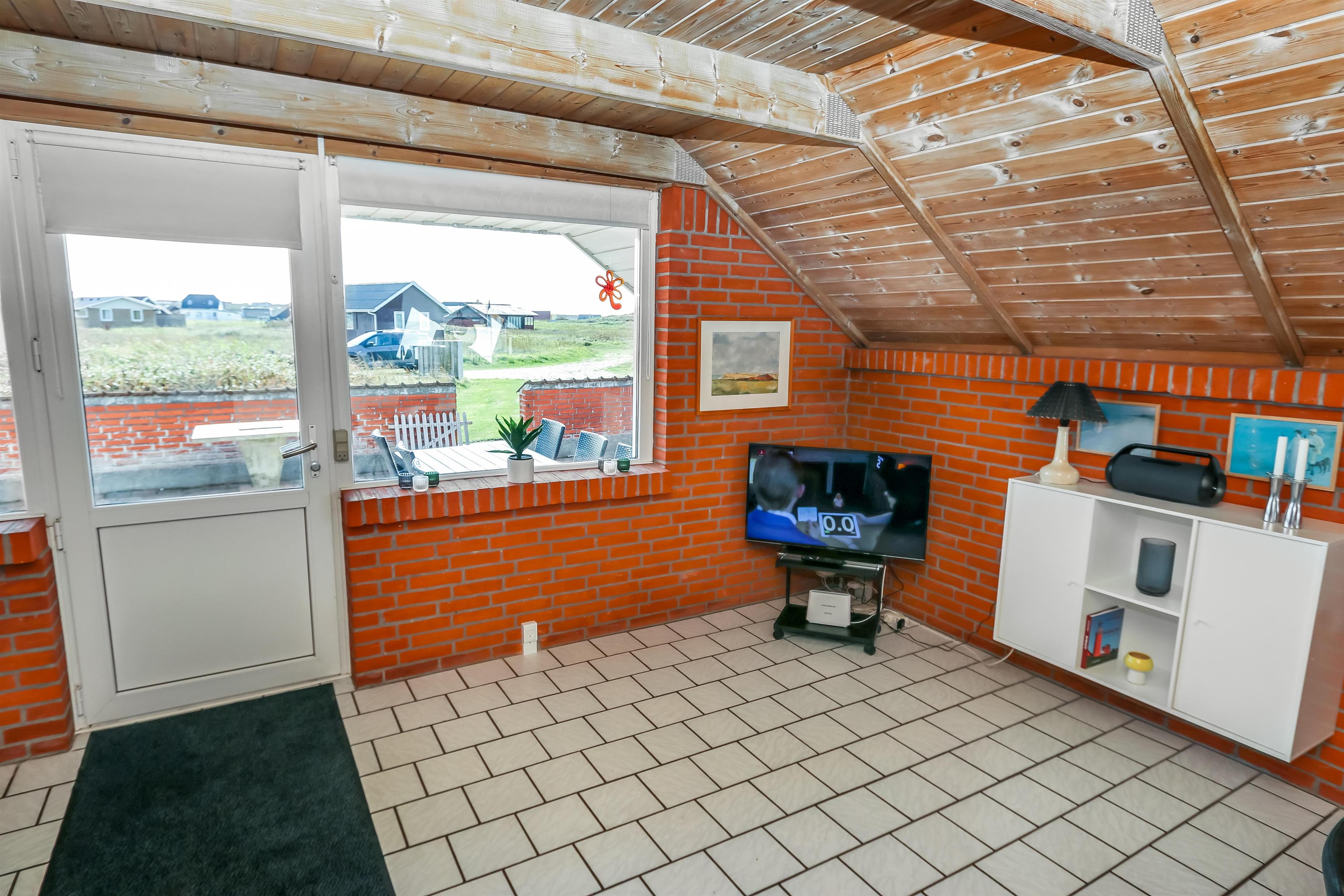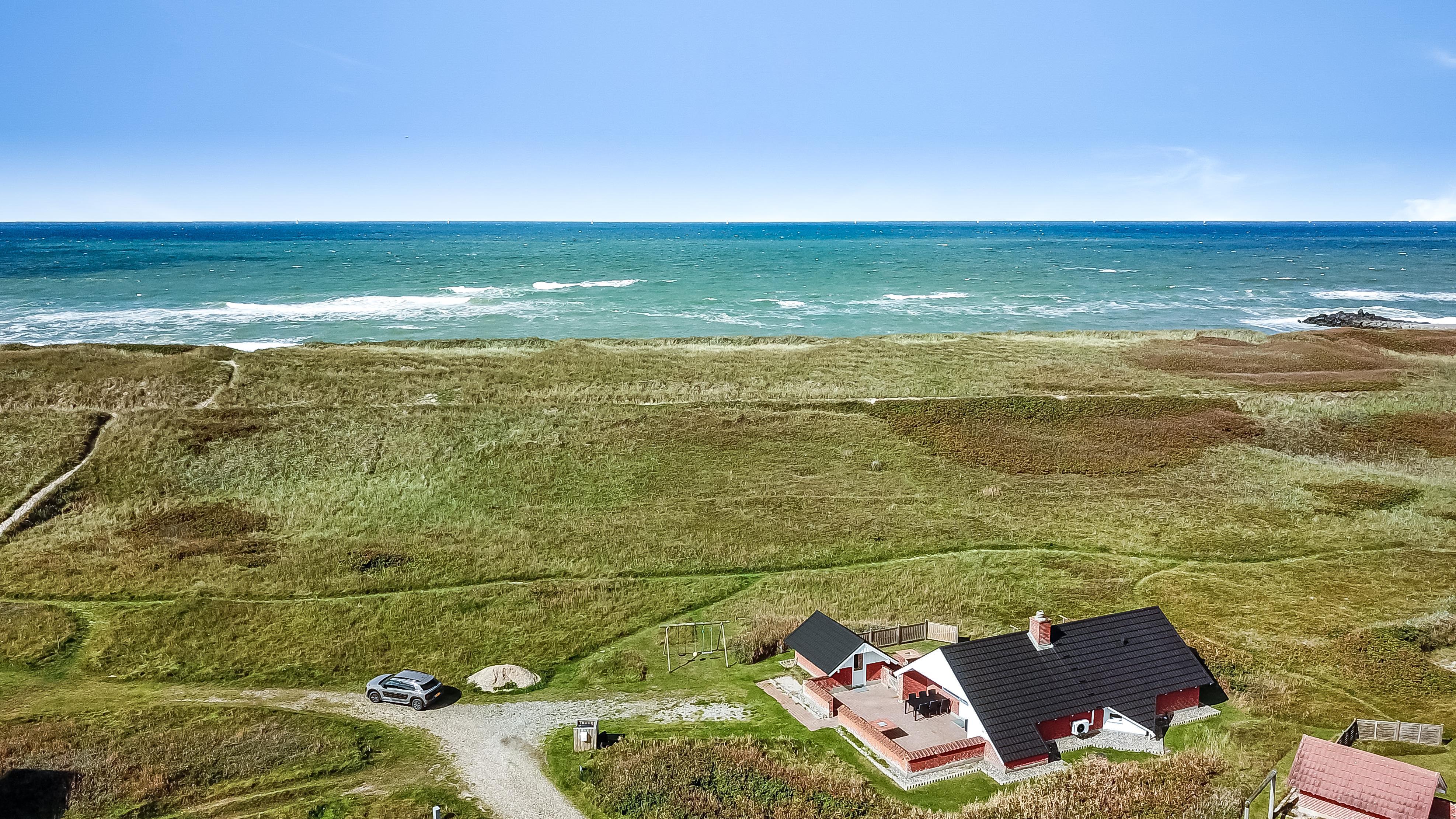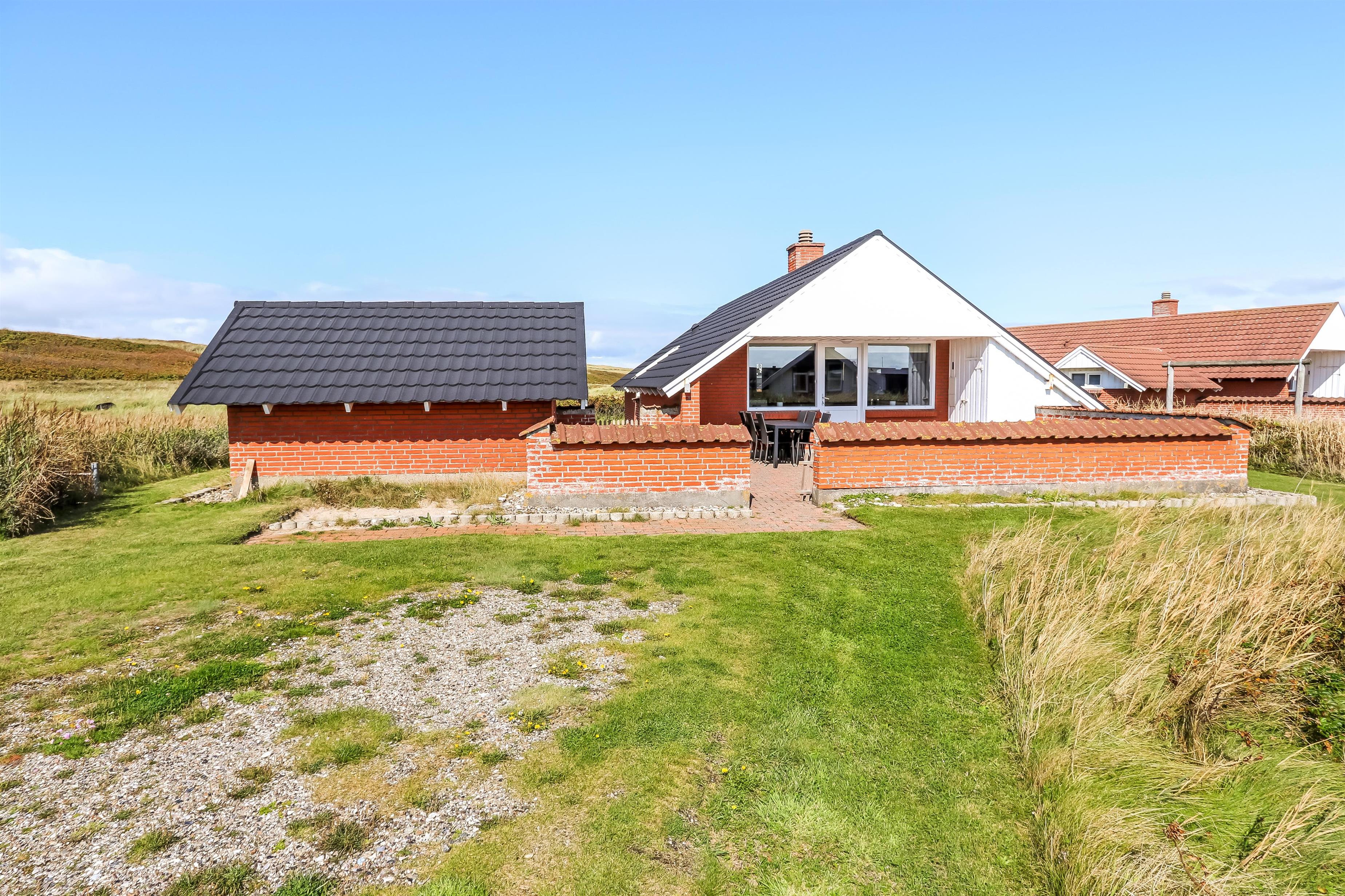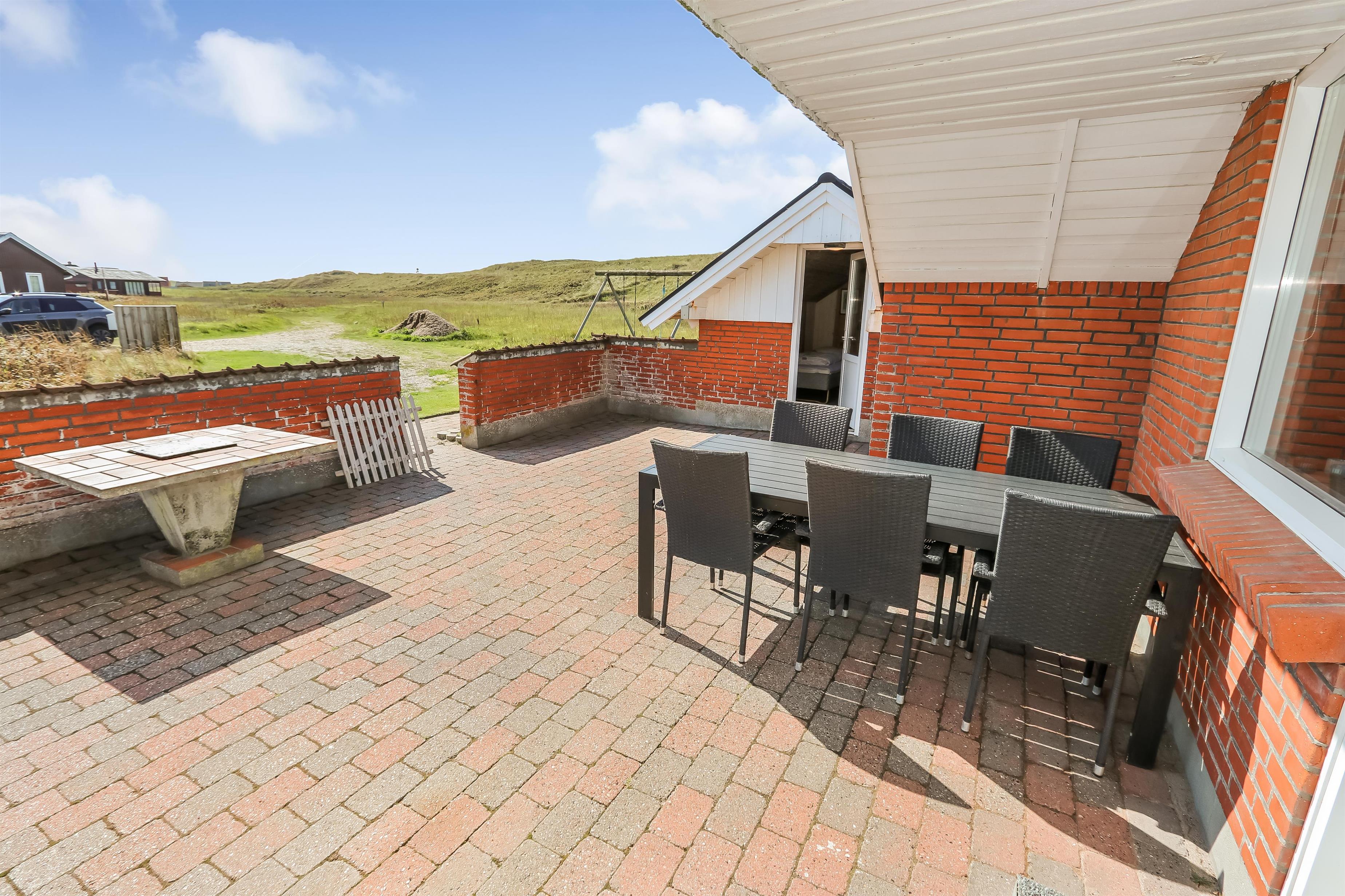 Udgang til indhegnet, delvis overdækket terrasse med havemøbler og grill. Huset ligger på en 4.000 m2 stor, naturgrund kun 100m fra Vesterhavet og tæt på Ferring sø. Lad batterierne med en god bog, lange gåture i rolige og fredelige omgivelser, nyd beliggenheden, lyden af Vesterhavet og at terrassen er indhegnet og dermed er perfekt hvis børn og husdyr medbringes. Besøg de mange attraktioner og oplevelser som nås indenfor max 30 min eller besøg fiskerbyen Thyborøn eller den dejlige handelsby Lemvig med masser af specialbutikker. I Sommermånederne kan de mest nødvendige indkøb klares hos Bovbjerg Camping.