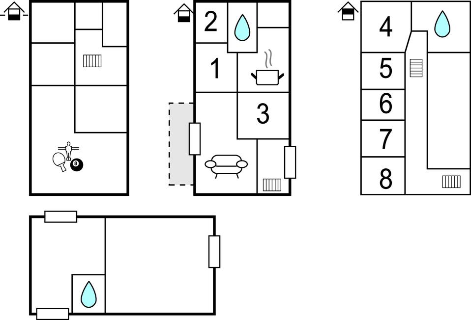 Bemærk: To af soveværelserne er gennemgangsrum, så de er oplagte til børnefamilier.