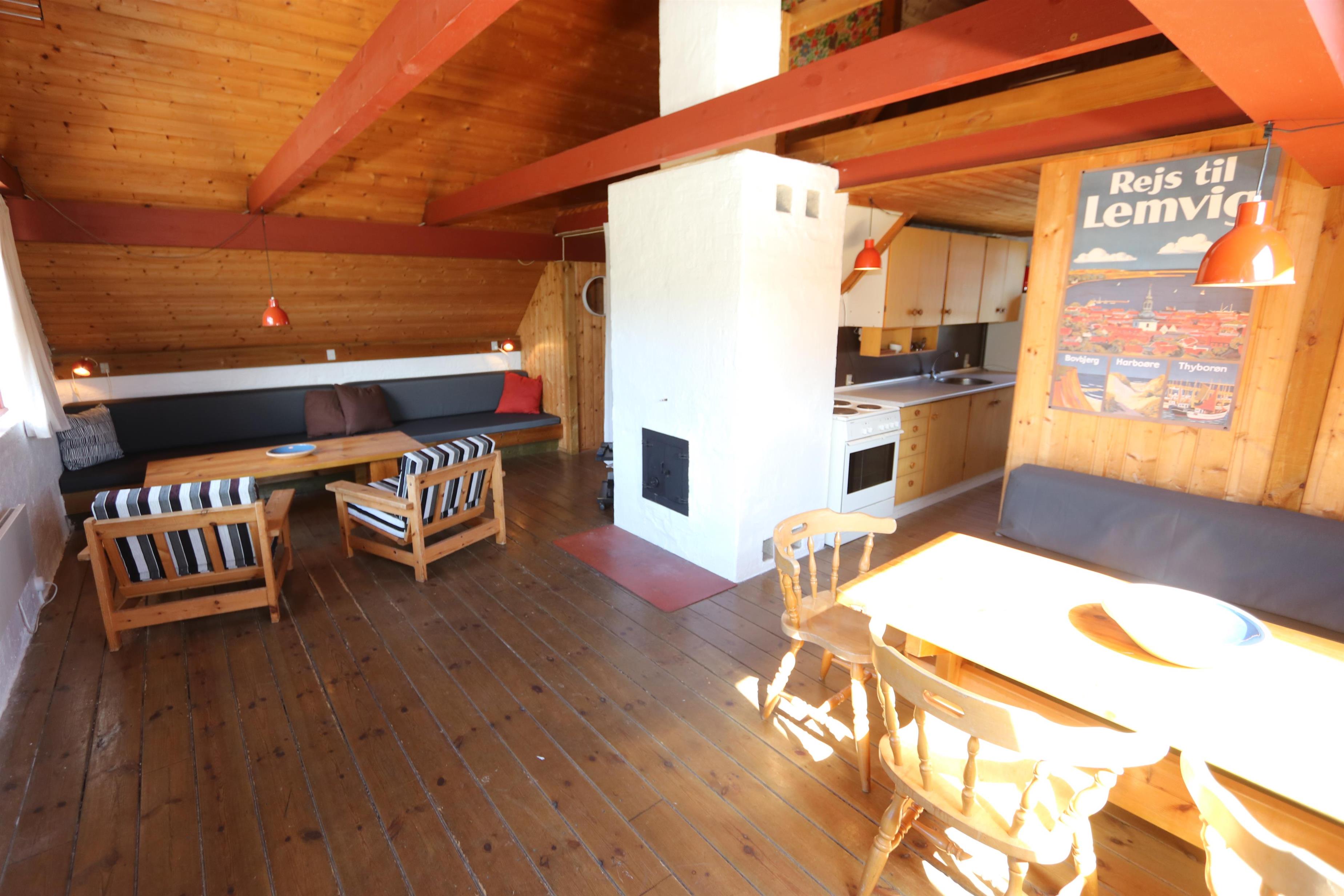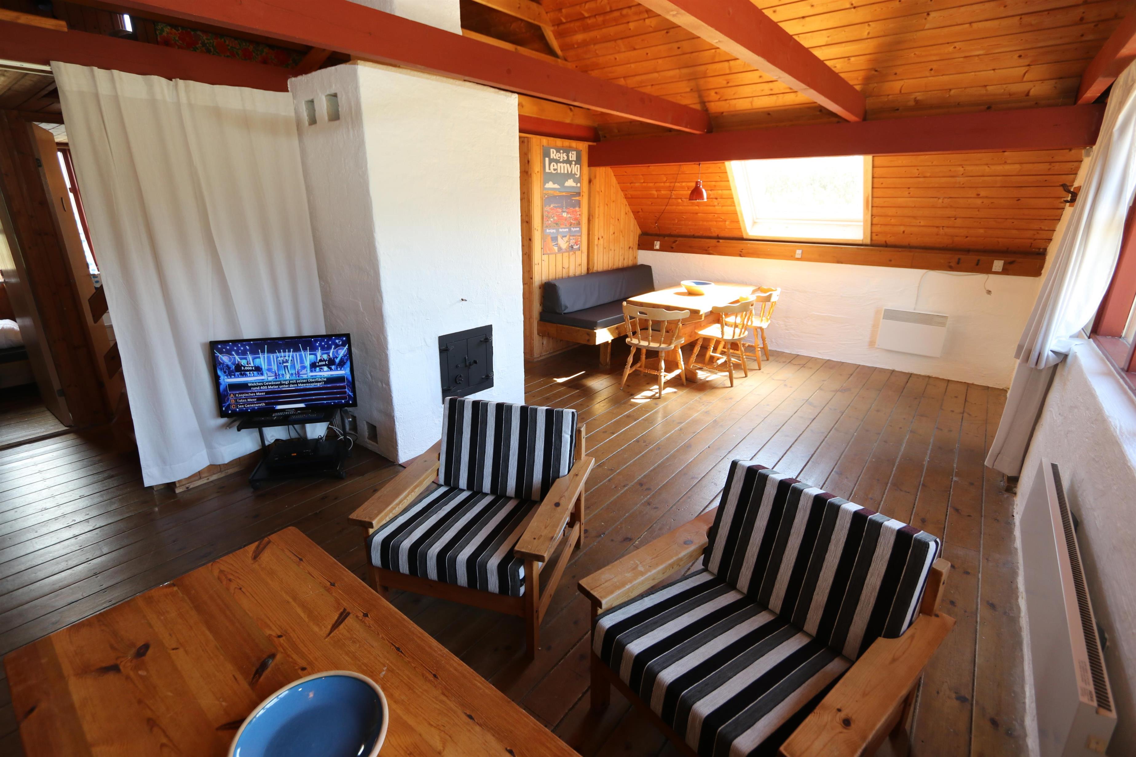 Rustikt sommerhus på 90 m2 med 2 soverum (1DS, 4ES). Soverum med 1 DS er på 1. sal. 2 ES i vinkel i værelse i stueplan og 2ES i opholdsstuen. Huset er enkelt indrettet med en opholdsstue med polstermøbler, TV med danske og tyske programmer og pejs. Enkelt køkkenhjørne med elektrisk komfur med 4 kogeplader og køleskab med lille fryseboks. Badeværelse med toilet, håndvask og bruser. 2 husdyr tilladt.