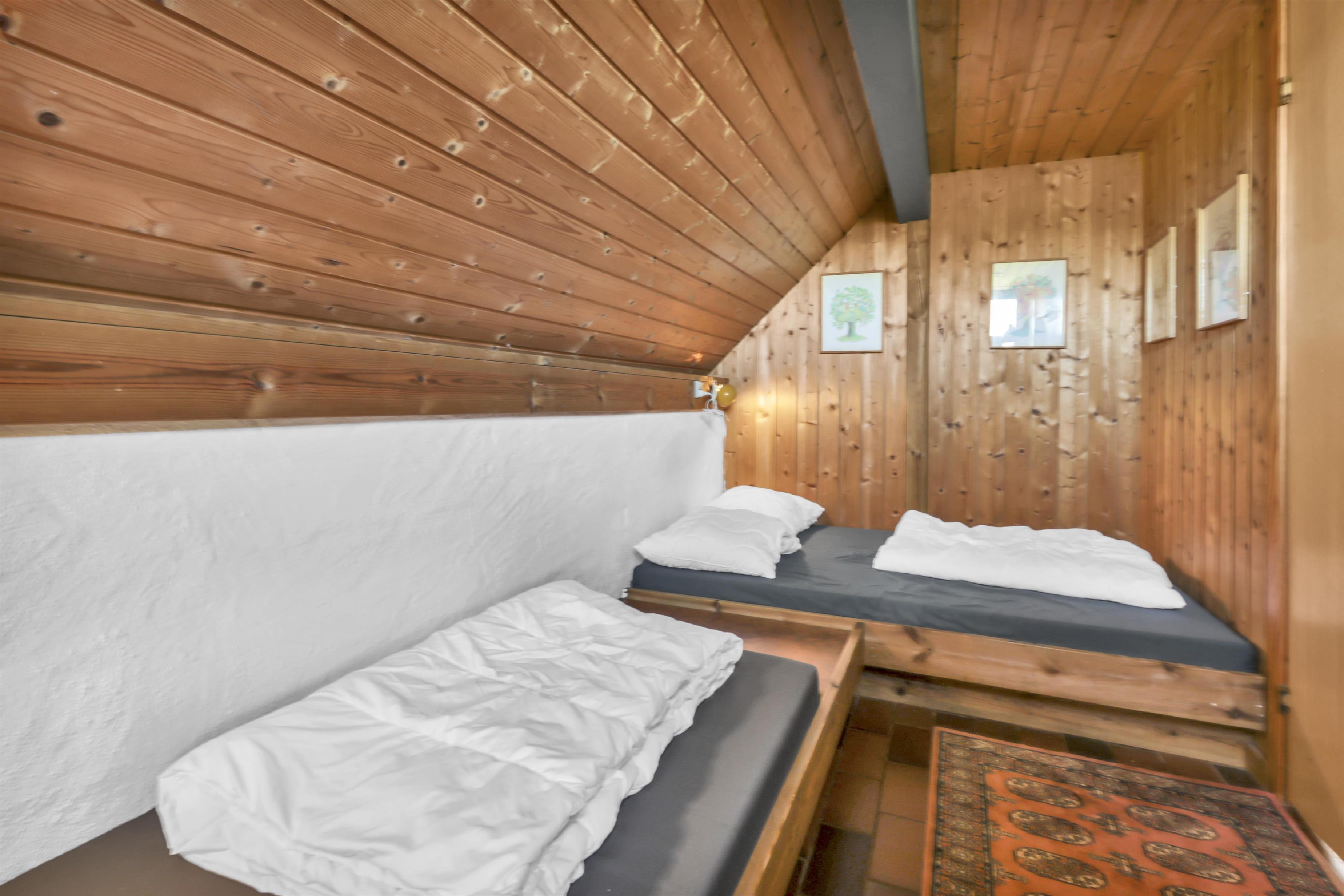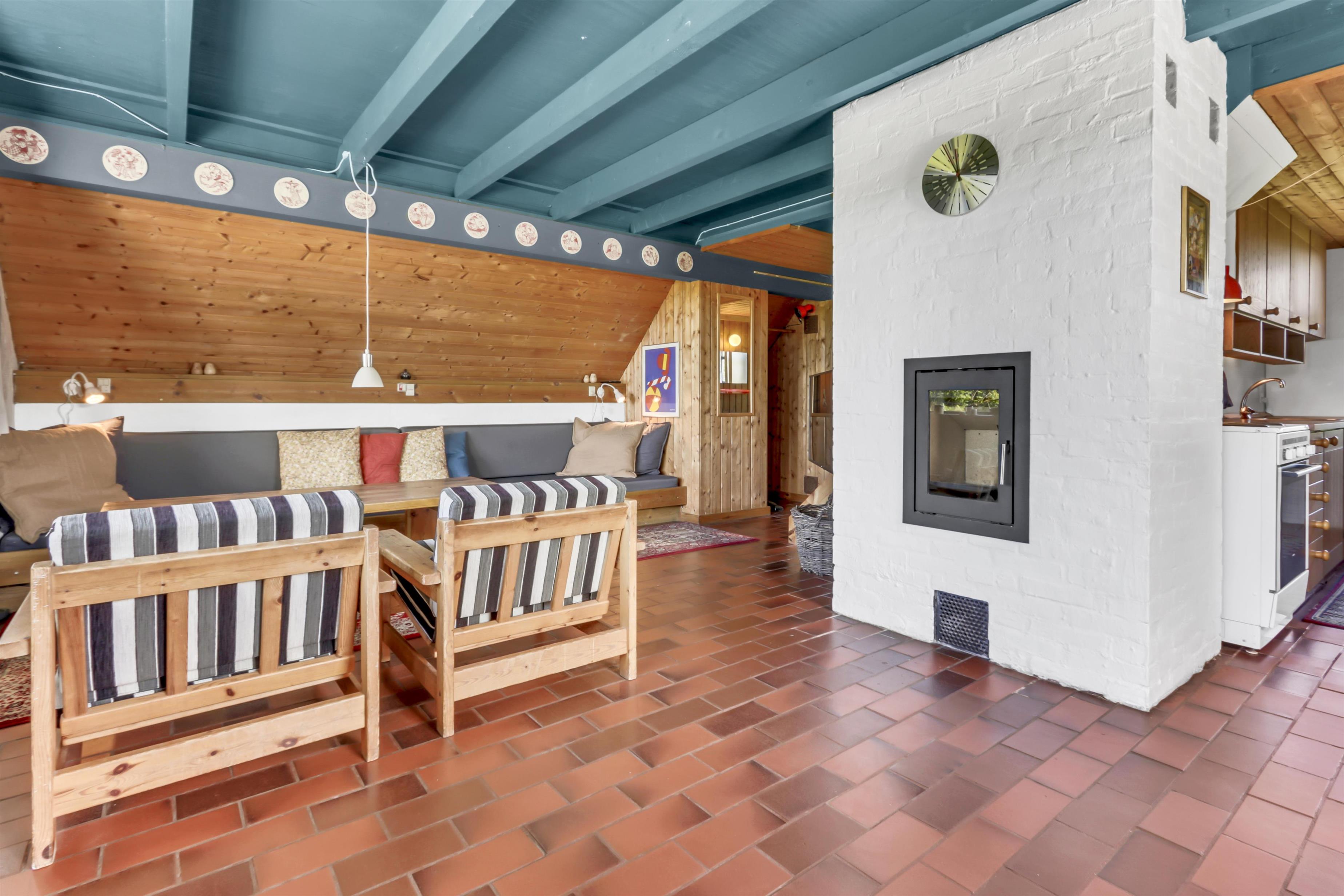 Rustikt sommerhus på100m2 med 2 soverum (1DS, 4ES). 2 åbne soverum på første sal med 1 DS og 2ES. sal. 2 ES i vinkel i værelse i stueplan. Huset er enkelt indrettet med en opholdsstue med polstermøbler, TV med danske og tyske programmer og pejs, varmepumpe. Enkelt køkkenhjørne med elektrisk komfur med 4 kogeplader og køleskab med lille fryseboks. Badeværelse med toilet, håndvask og bruser. Klinkegulve i stueplan. Ved huset er der en ladestander til elbiler. Husdyr er ikke tilladt.