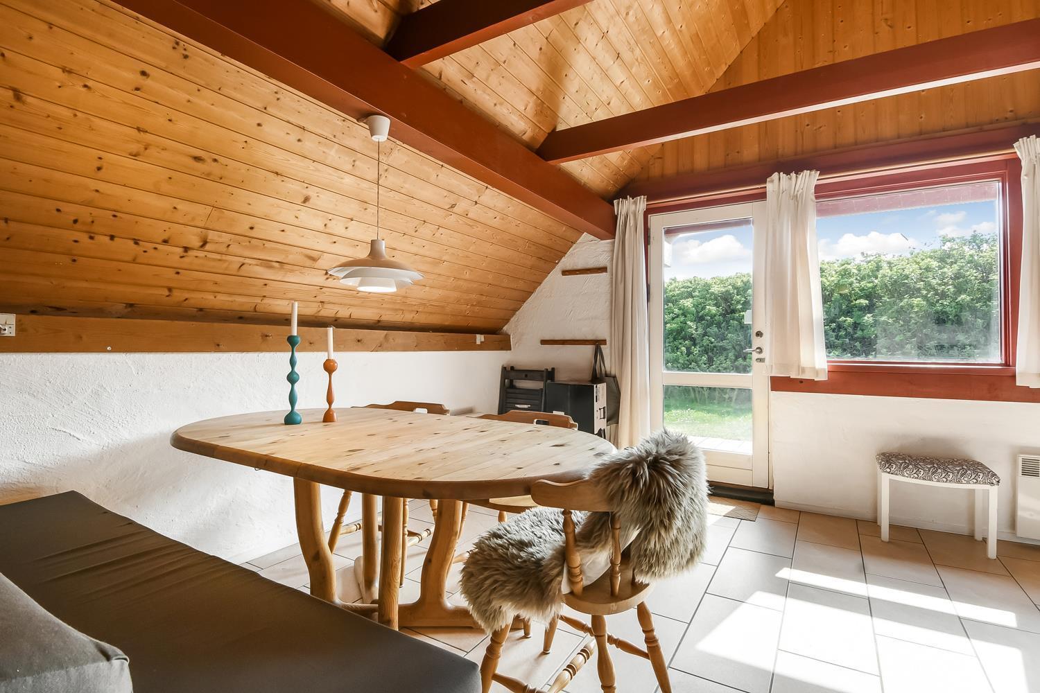 Udenfor huset er der en sydvest-vendt terrasse med havemøbler og grill. Terrassen er bindeled mellem huset og den omkringliggende natur, og bidrager i høj grad til, at følelsen af ferie, fred og ro kan sænke sig. Huset er en del af Fjaltring Ferieby som ligger klinet op ad klitterne ved Fjaltring Strand. Lige på den anden side af klitten ligger noget af det flotteste badestrand som Danmark har at byde på. Stranden og havet ligger til fri afbenyttelse året rundt.