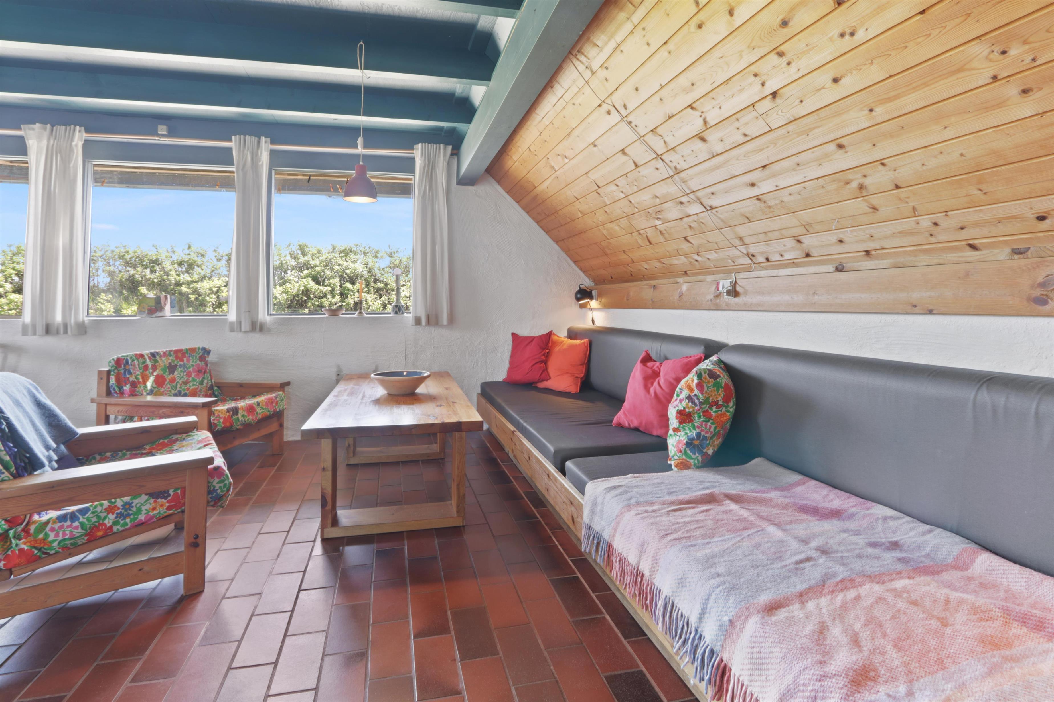 Fra opholdsstuen er der udgang til en lille, overdækket terrasse med havemøbler, 2 solvogne og grill og fra balkonen på 1. sal er der udsigt til Vesterhavet. Huset er en del af Fjaltring Ferieby som består af 25 næsten identiske A-huse fordelt i 5 cirkler. Hele Feriebyen ligge i en dejlig ”gryde” i det fredede klitlandskab kun ca. 200m fra Vesterhavet. Ved fælleshuset er der el-bil-oplader til rådighed. Nyd en økonomisk ferie i et enkelt feriehus med en helt unik beliggenhed. Parker bilen og nyd at I resten af ferien kan gå til stranden på under 5 minutter. Oplev det brusende Vesterhav som hverdag byder på nye oplevelser. Gå en tur eller dyrk den daglige motion langs med havet, i det smukke landskab eller udforsk områdets mange andre muligheder.