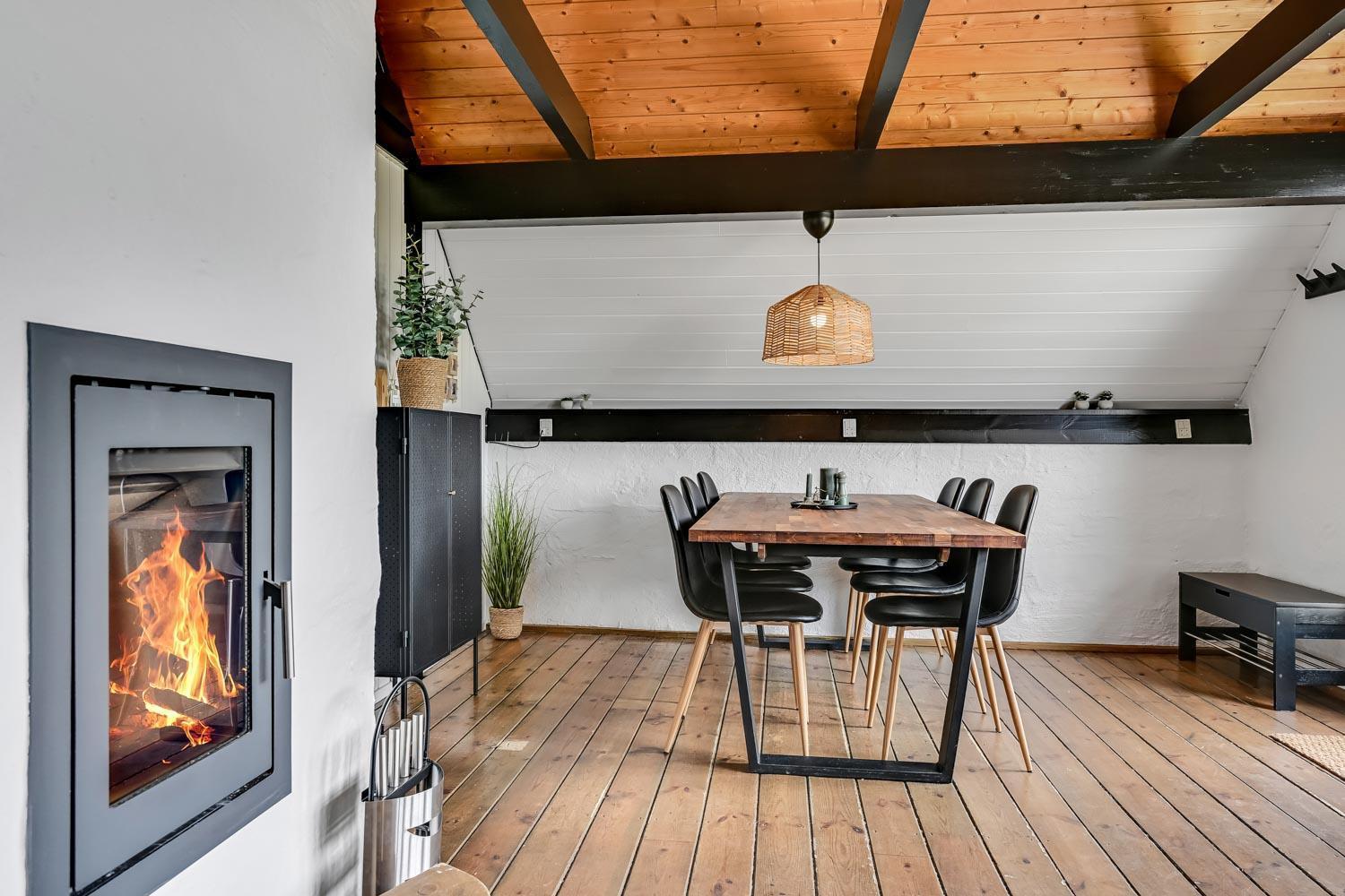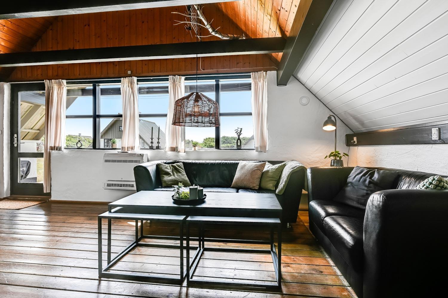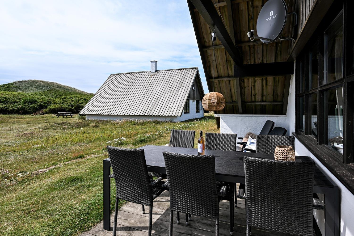 Fra opholdsstuen er der udgang til en lille, overdækket terrasse med havemøbler, 2 solvogne og grill. Huset er en del af Fjaltring Ferieby som består af 25 næsten identiske A-huse fordelt i 5 cirkler. Hele Feriebyen ligge i en dejlig ”gryde” i det fredede klitlandskab kun ca. 200m fra Vesterhavet. Ved fælleshuset er der el-bil-oplader til rådighed. Nyd en økonomisk ferie i et enkelt feriehus med en helt unik beliggenhed. Parker bilen og nyd at I resten af ferien kan gå til stranden på under 5 minutter. Oplev det brusende Vesterhav som hverdag byder på nye oplevelser. Gå en tur eller dyrk den daglige motion langs med havet, i det smukke landskab eller udforsk områdets mange andre muligheder.
