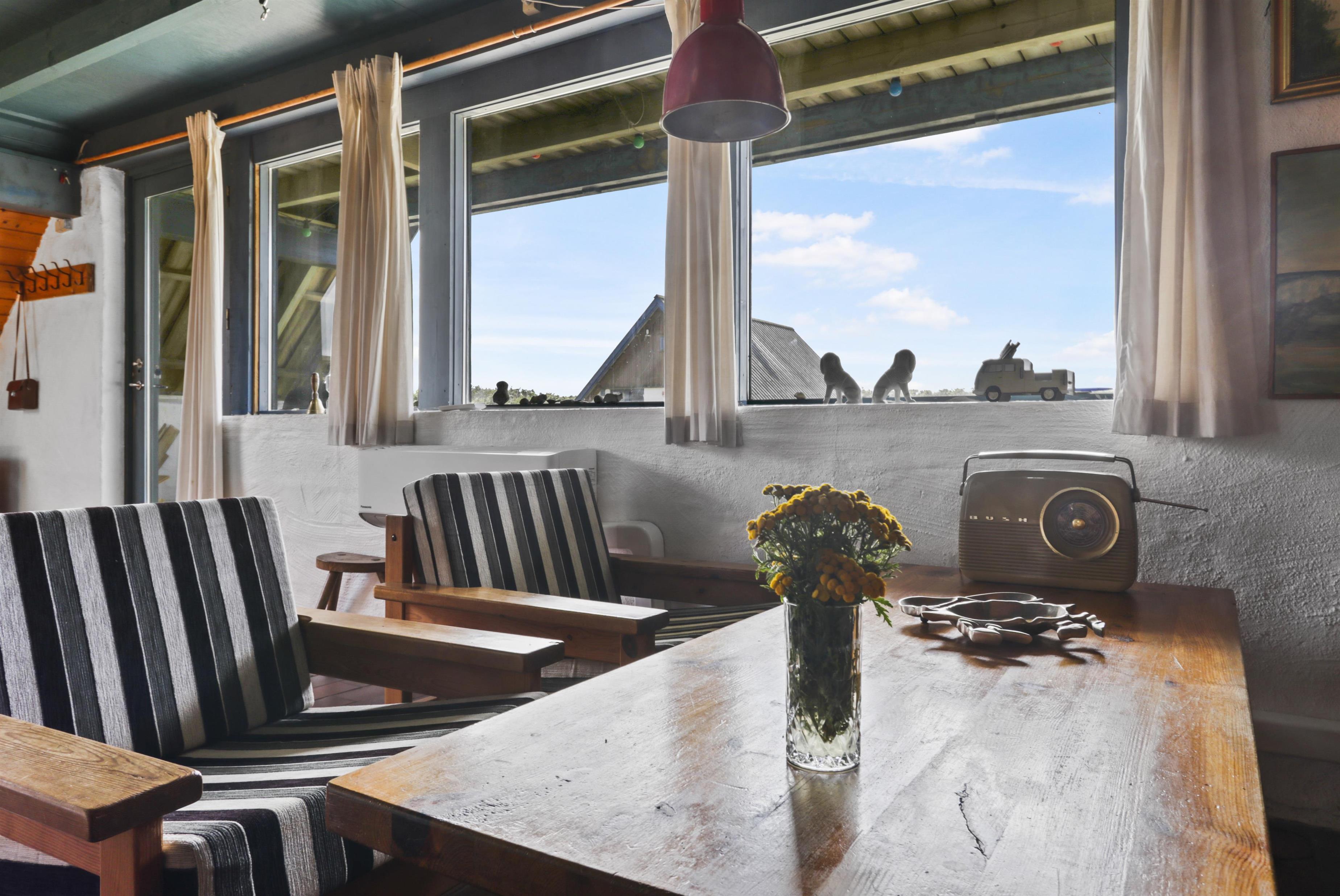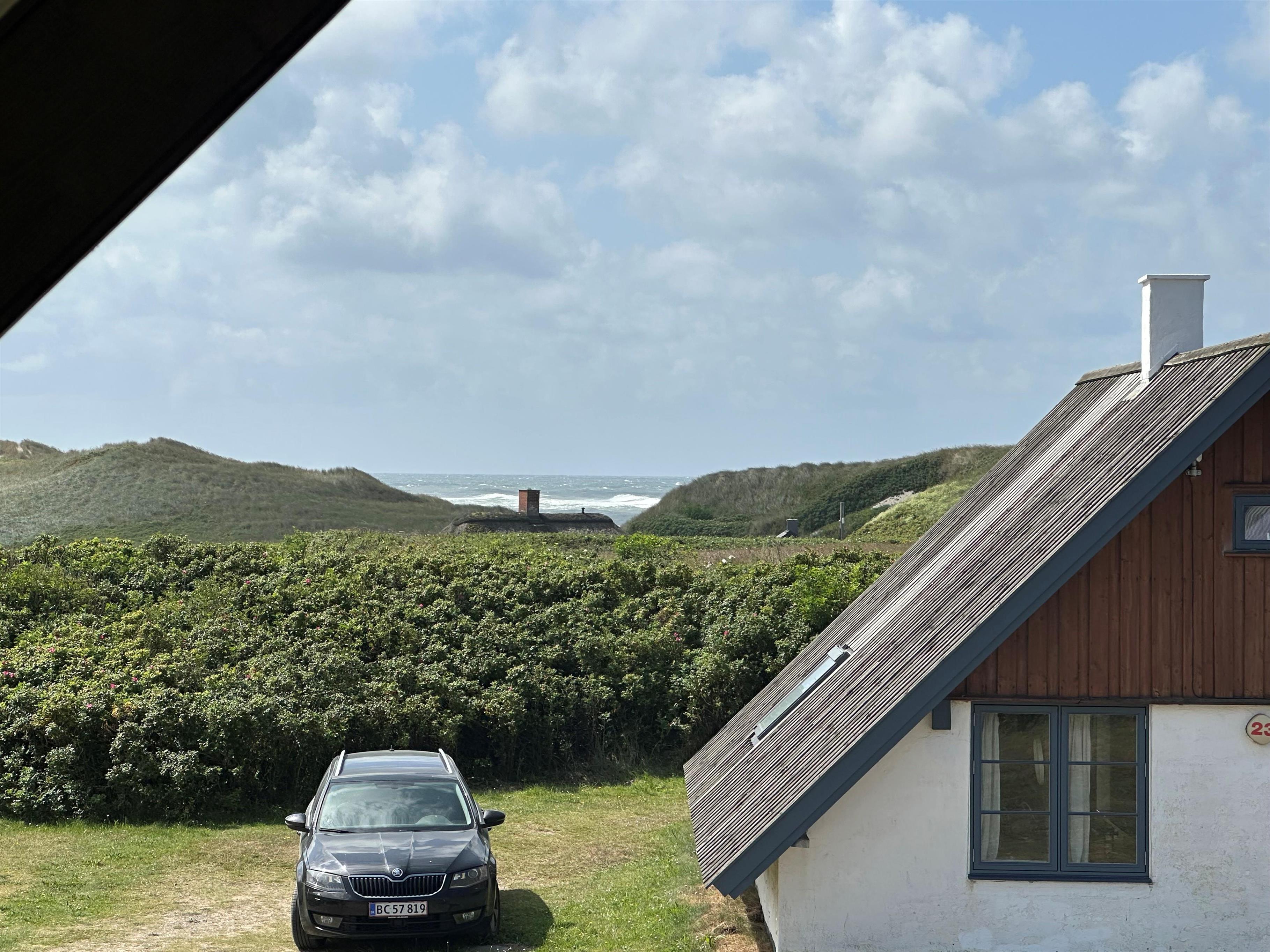 Fra stuen er der adgang til en hyggelig, overdækket terrasse med havemøbler, liggestole og grill – perfekt til lange sommeraftener. På husets balkon får I en skøn udsigt over klitterne og kan ane havets bølger i horisonten.