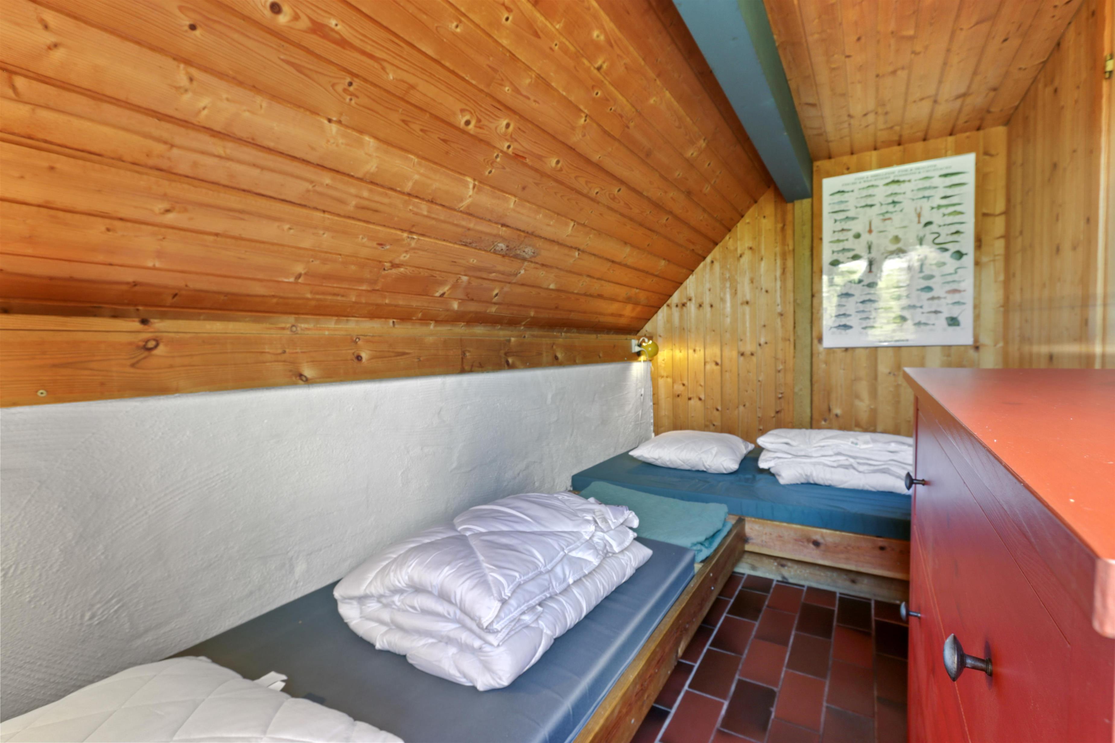 2 åbne soverum på 1. sal (1 dobbeltseng, 2 enkeltsenge)