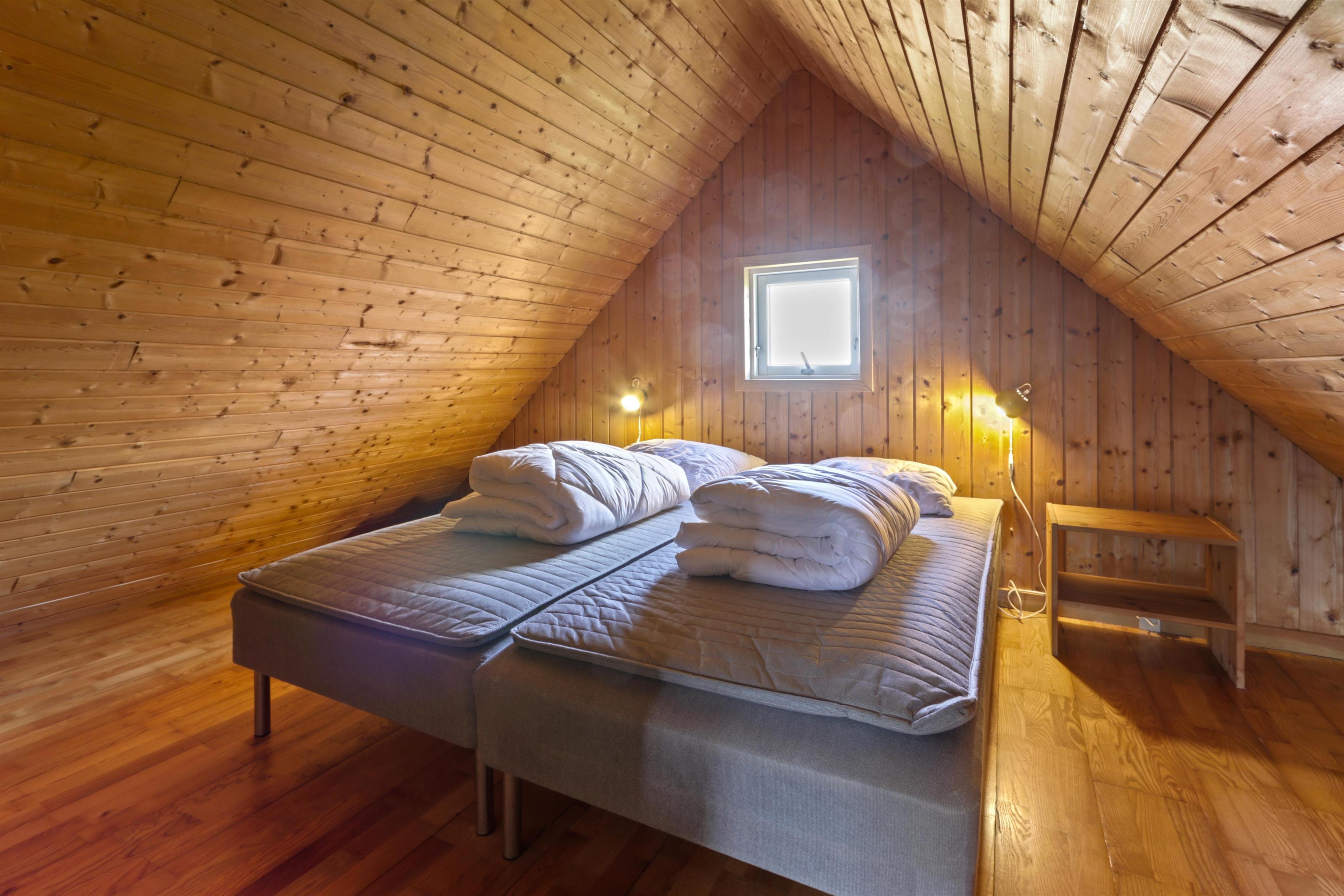 2 soverum i stueplan (1 dobbeltseng, 2 enkeltsenge i vinkel)