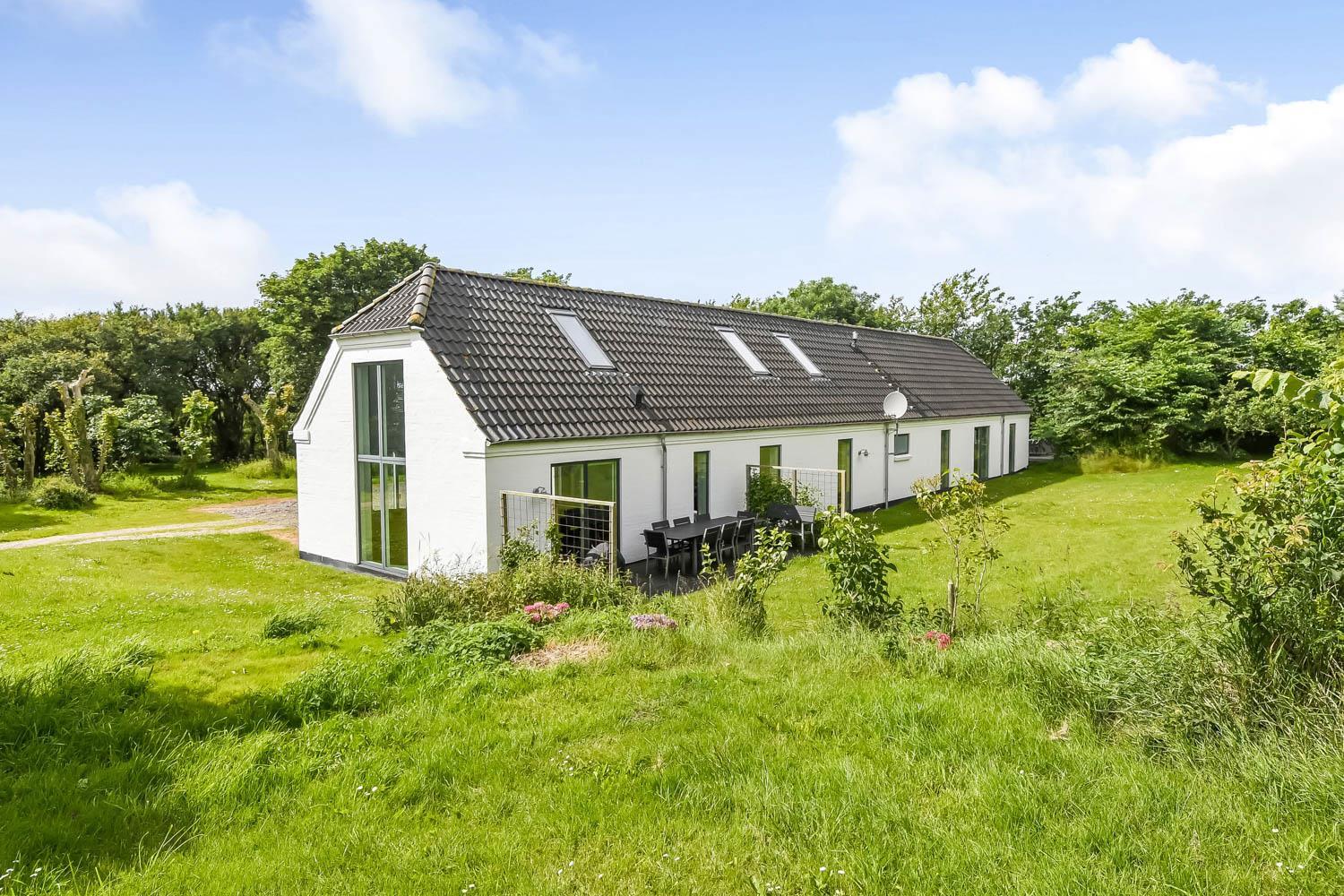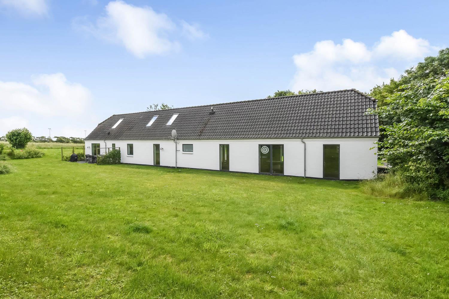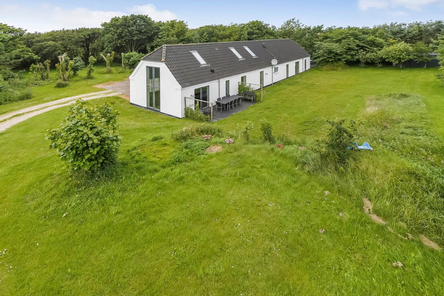 Fra huset er der en fantastisk smuk udsigt over de åbne marker. Her kan du nyde den dejlige have med anlagt terrasse, gynger. Der er 2 solvogne til huset samt en grill, så der er både noget til dag og aften. I haven er der også en bane til fodbold med mål. Der er kun seks km til Vesterhavets dejlige strand, hvor I kan få en god naturoplevelse, hvad enten det er sommer eller vinter.