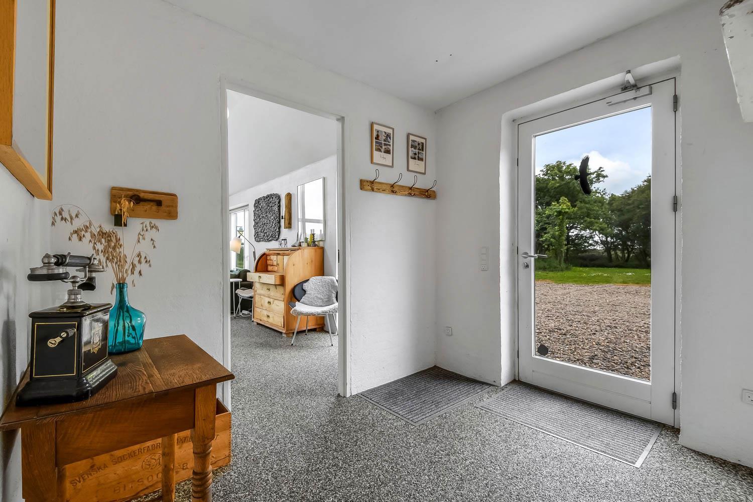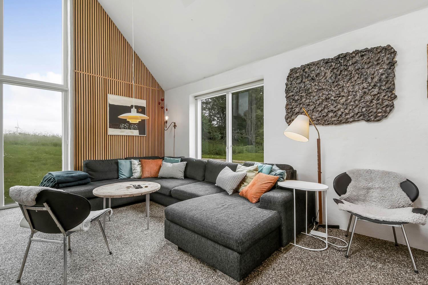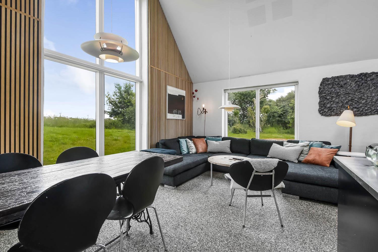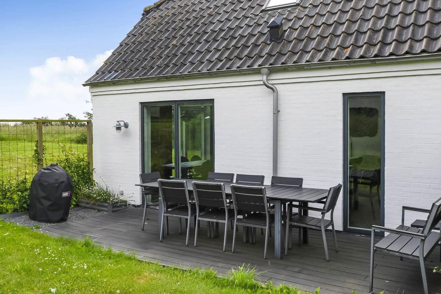 Fra huset er der en fantastisk smuk udsigt over de åbne marker. Her kan du nyde den dejlige have med anlagt terrasse, gynger. Der er 2 solvogne til huset samt en grill, så der er både noget til dag og aften. I haven er der også en bane til fodbold med mål. Der er kun seks km til Vesterhavets dejlige strand, hvor I kan få en god naturoplevelse, hvad enten det er sommer eller vinter.