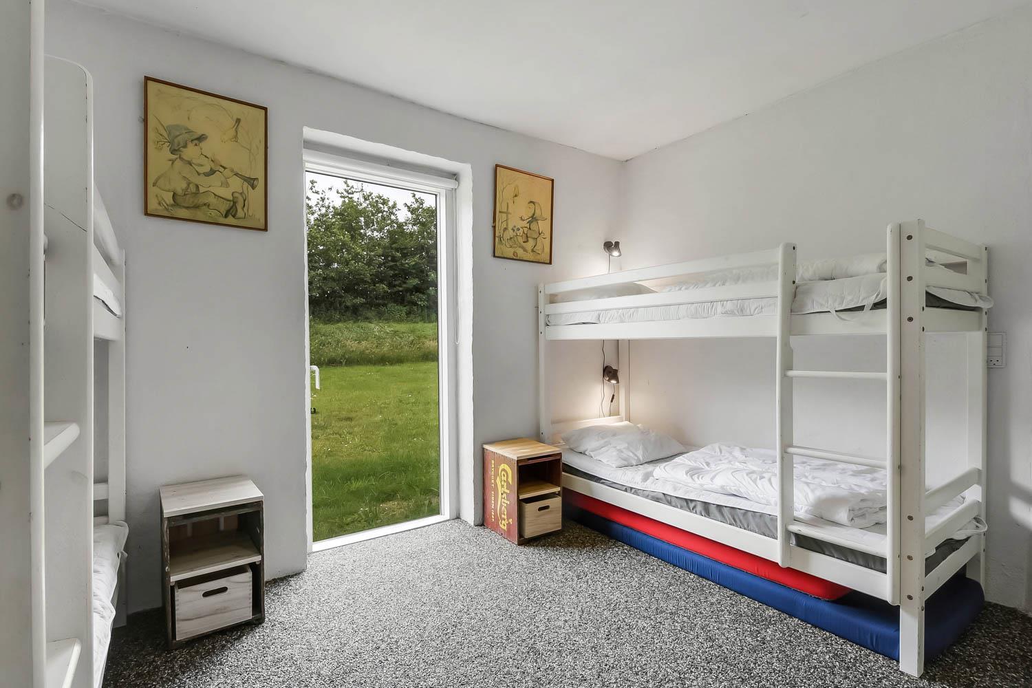 Huset har i alt 11 sovepladser. Nedenunder er der et værelse med dobbeltseng og et værelse med 4 køjesenge. Ialt 6 soveplader nedenunder. Ovenpå er der et værelse med en dobbeltseng og på hemsen, som har forbindelse med stuen, er der 3 sovepladser. Stuen, er bygget sammen med køkkenet og, er stilfuld indrettet med epoxy-stengulv, fladskærm med tysk og dansk tv, cromecast og brændeovn. Hertil er der også spisebord og sofagruppe. Det lækre køkken har 2 elkomfurer, køleskab, en 40 liters fryser, mikroovn og opvaskemaskine. Der er 2 badeværelser som ligger ved siden af hinanden i stueetagen. Det store badeværelse har gulvvarme, dampkabine med bruser, toilet, spabad og håndvask. Det mindre badeværelse har blot toilet og håndvask. Det store aktivitetsrum er i modsatte ende af stuen og byder på bordtennis, bordfodbold, poolbord og Playstation2 samt ekstra spiseborde hvis man af praktiske grunde skal spise eller på anden måde opholde sig her. Herudover har huset en barnestol, en barneseng, en tørretumbler samt en vaskemaskine. Huset er lavet som et energi rigtigt hus der opvarmes med jordvarme. Rengøring er obligatorisk ved dette hus.