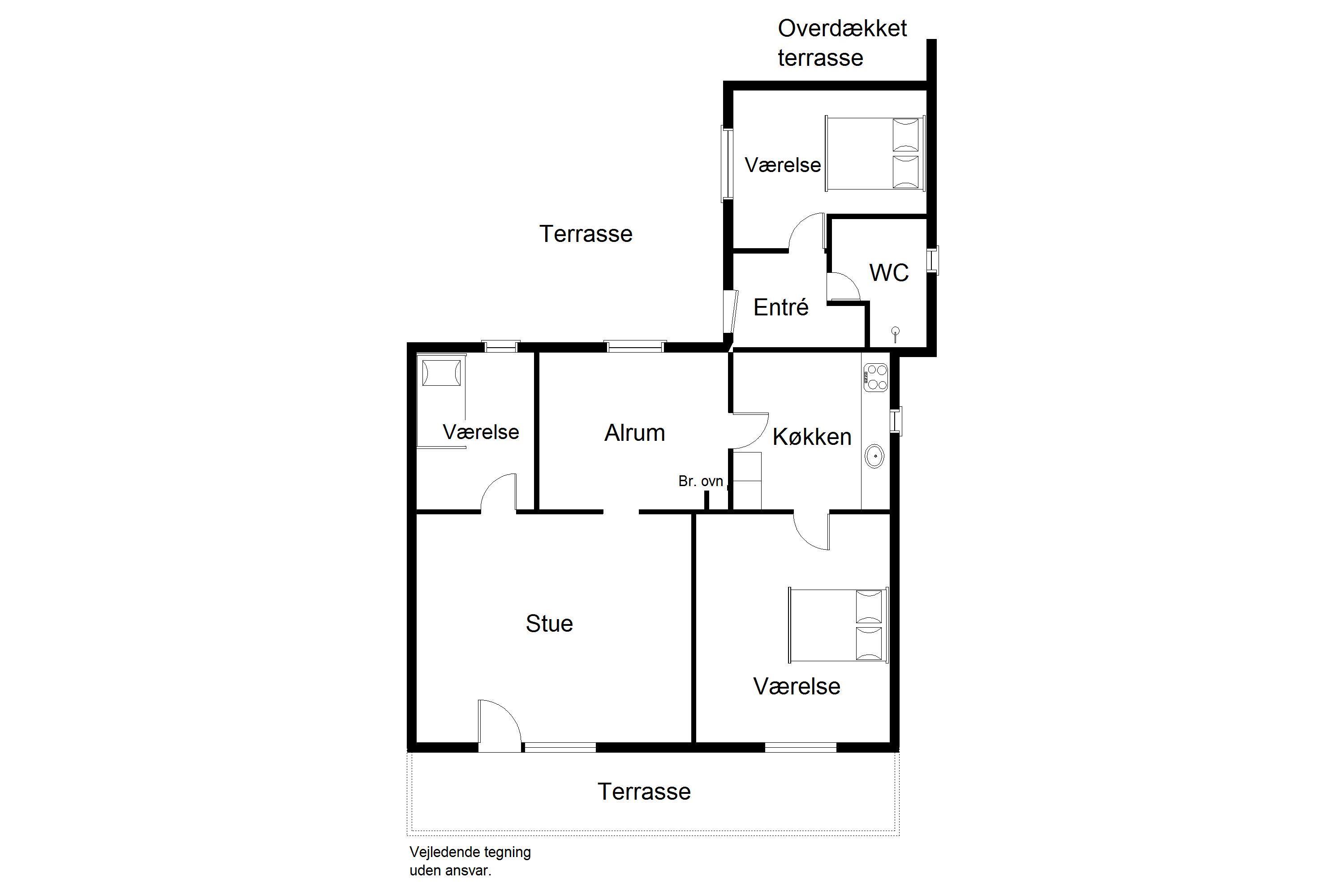 Huset rummer to gode soveværelser med dobbeltsenge samt et værelse med en enkelt seng – ideelt til både par og familier.
