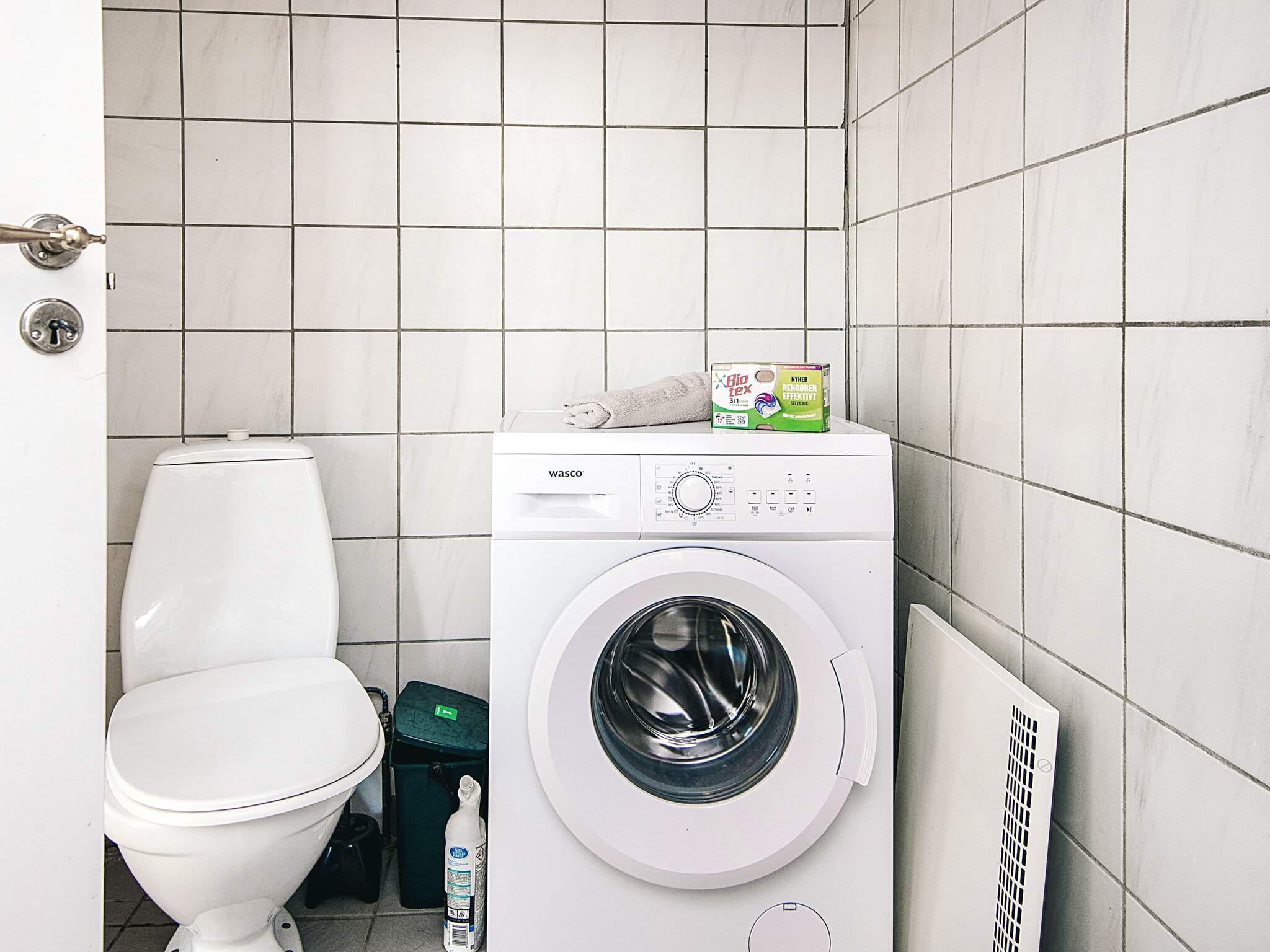 Bad/wc: Vaskemaskine, wc, håndvask, bruseniche, gulvvarme
