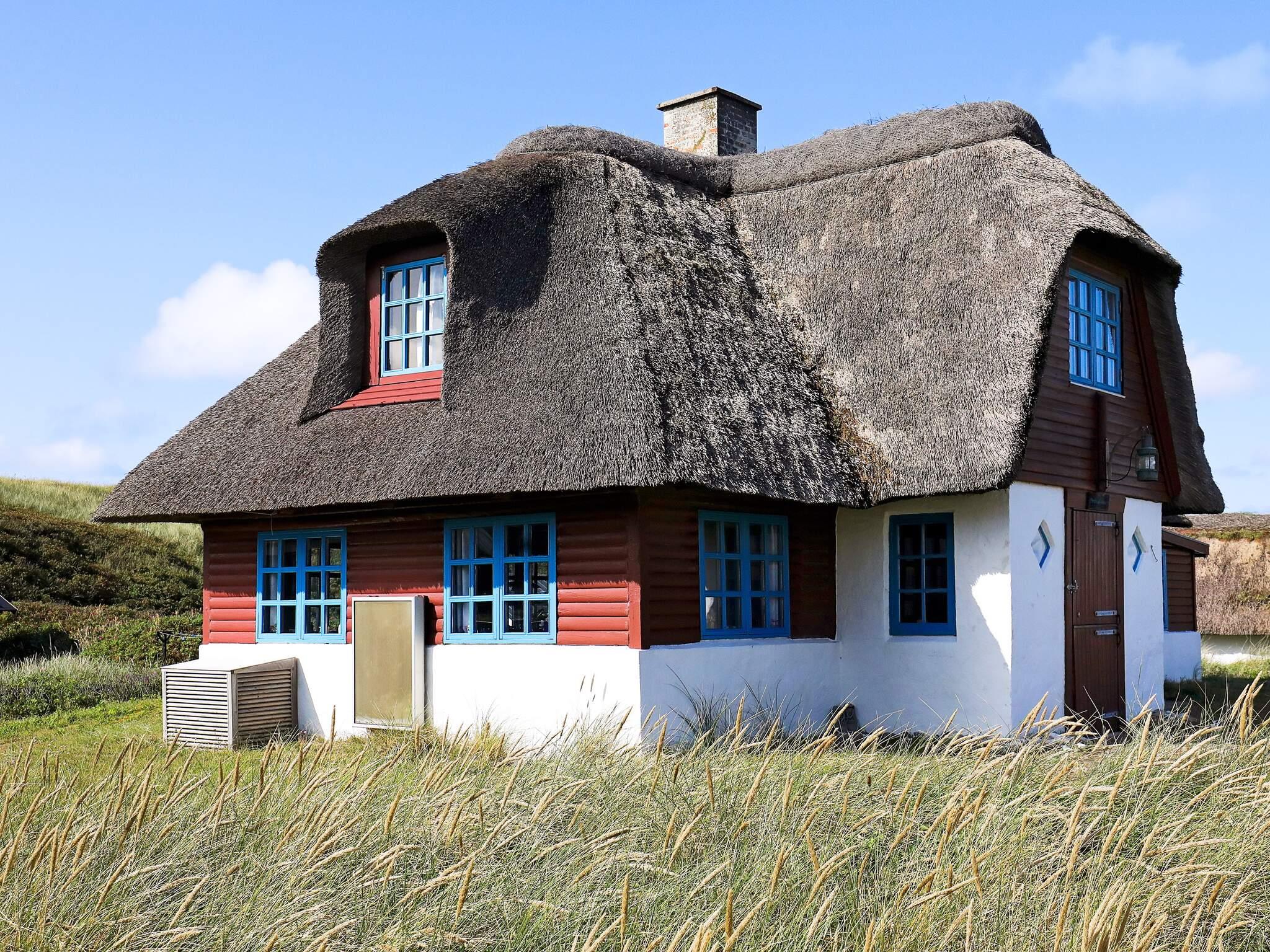Få en unik oplevelse i dette originale, charmerende sommerhus i flere afdelinger med stråtag og med samme elementer, som da sommerhuset blev bygget. Sommerhuset ligger på en naturgrund ca. 70 m fra Vesterhavet i et meget roligt område i Fjand. Det sammen med synlige bjælker i sommerhuset gør opholdet til en helt speciel oplevelse. Sommerhuset er i to plan med et soverum i stueplan, og de resterende tre på 1. sal. Der er små bondehusvinduer i sommerhuset og med en højde under bjælkerne på 2 m kan de fleste gå oprejst i hele huset. Sommerhuset er i flere afdelinger, så det er helt unikt. Bjerghuse området ligger tæt på det barske brusende Vesterhav og få km væk fra det rolige Nissum Fjord med gode børnevenlige bademuligheder. Der er gode oplevelses muligheder i området. Den autentiske fiskerby Thorsminde et besøg værd, hvor tørfisk hænger i haverne. I sommerperioden er der fiskeauktion, livreddere ved stranden, og der bliver tændt op i fællesgrillen hver torsdag. Besøg også strandings museet St. George.