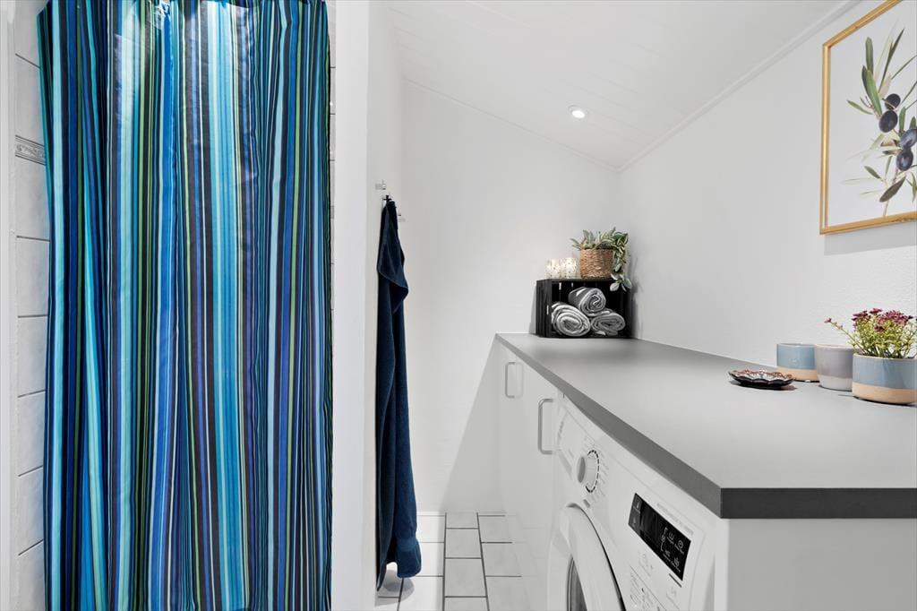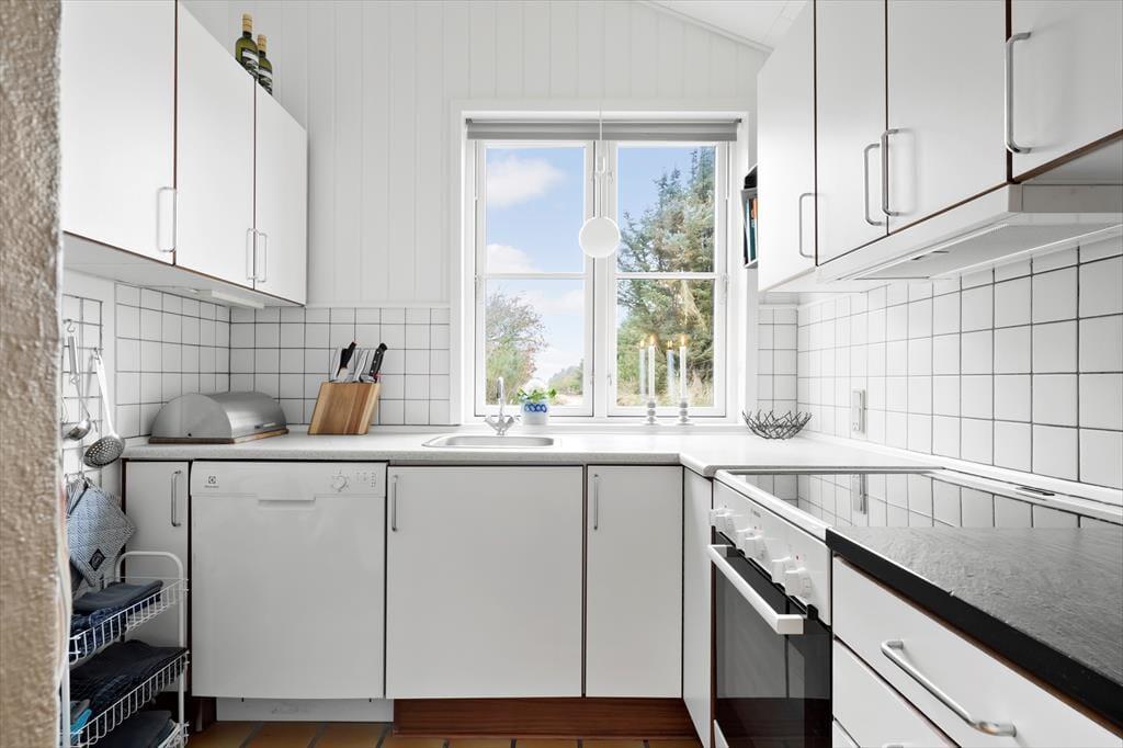 Varme hyggelige klinker og yderst flotte detaljer guider jer igennem dette lækre, arkitekttegnede feriehus. Nyd den dejlige rumlighed og det skønne køkken-alrum med loft til kip. Slå jer ned i det store køkken-alrum og nyd det smukke lysindfald, der bliver skabt af de store vinduer med fantastisk udsigt ud over grunden. I køkkenet kan I endda kigge lige ned på fjorden. Det store køkken-alrum gør det muligt for jer at være sammen, på trods af at I laver forskellige ting – nogle kan tilberede et lækkert måltid i køkkenet, mens andre nyder et hyggeligt spil kort og den gode samtale, der bare flyder, imens I nyder solens stråler gennem de store vinduer. Og når kroppen trænger til afslapning, kan I glæde jer over husets indbyggede sauna – den perfekte afslutning på en aktiv dag.
