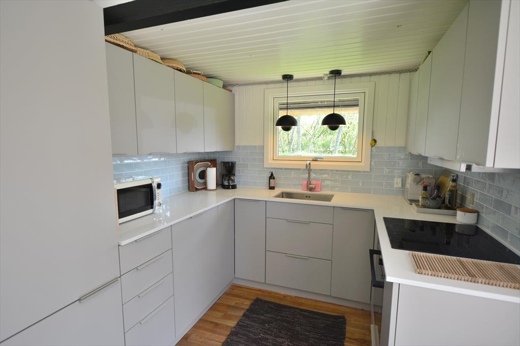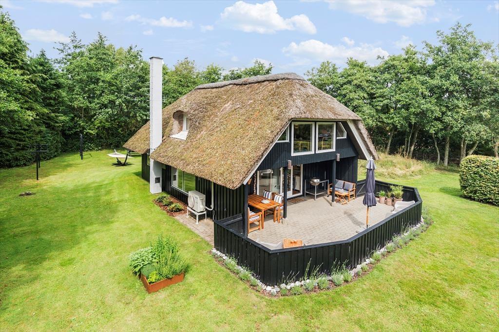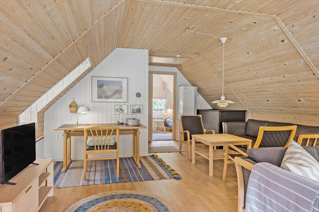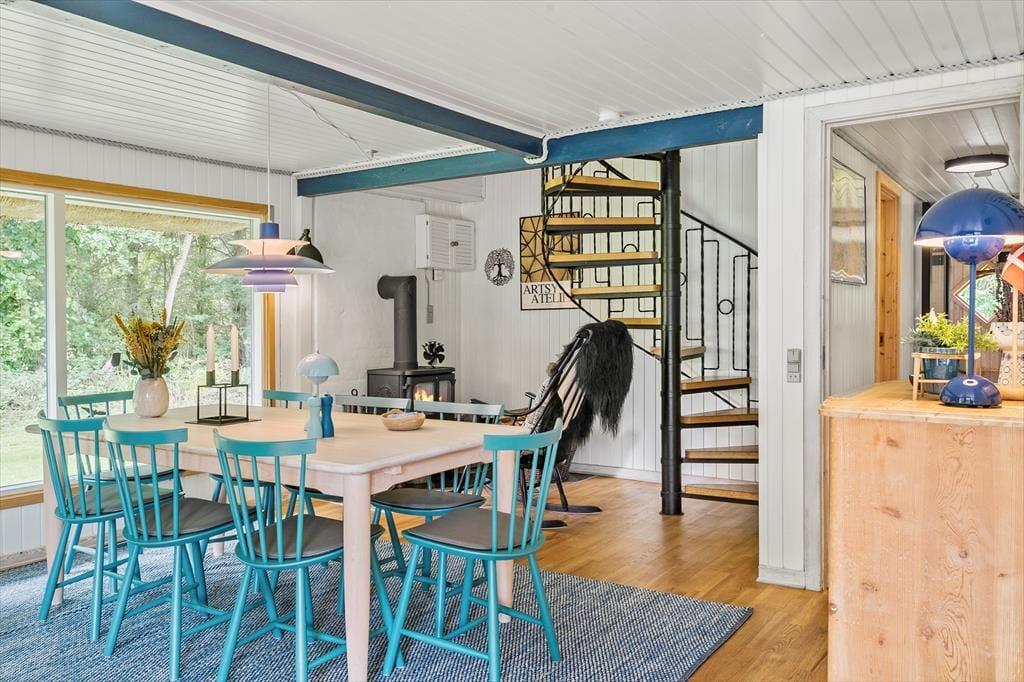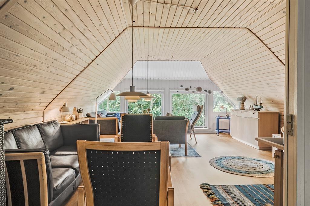 Træd ind i et charmerende træhus med stråtag, der emmer af klassisk sommerhusstemning. Her mærker I straks roen og hyggen brede sig. Indretningen er varm og indbydende med gode møbler og små detaljer, der får jer til at føle jer hjemme. I stueetagen finder I en lys opholdsstue og spiseplads i åben forbindelse med køkkenet – det perfekte sted til kortspil, hyggesnak eller en aften foran brændeovnen. I 2025 er der kommet et helt nyt køkken, som giver jer endnu bedre rammer for madlavning og samvær – moderne, funktionelt og i tråd med husets stil. Her er både brændeovn og varmepumpe, trægulve med løse tæpper og direkte udgang til en sydvestvendt terrasse, hvor solen ofte titter frem. På første sal fører en fin vindeltrappe op til en rummelig opholdsstue og et ekstra soveværelse – perfekt til afslapning, leg eller bare et stille øjeblik med en god bog.