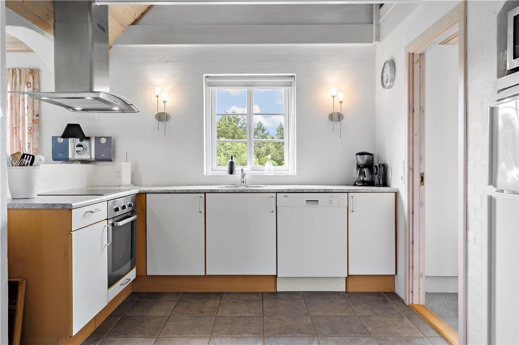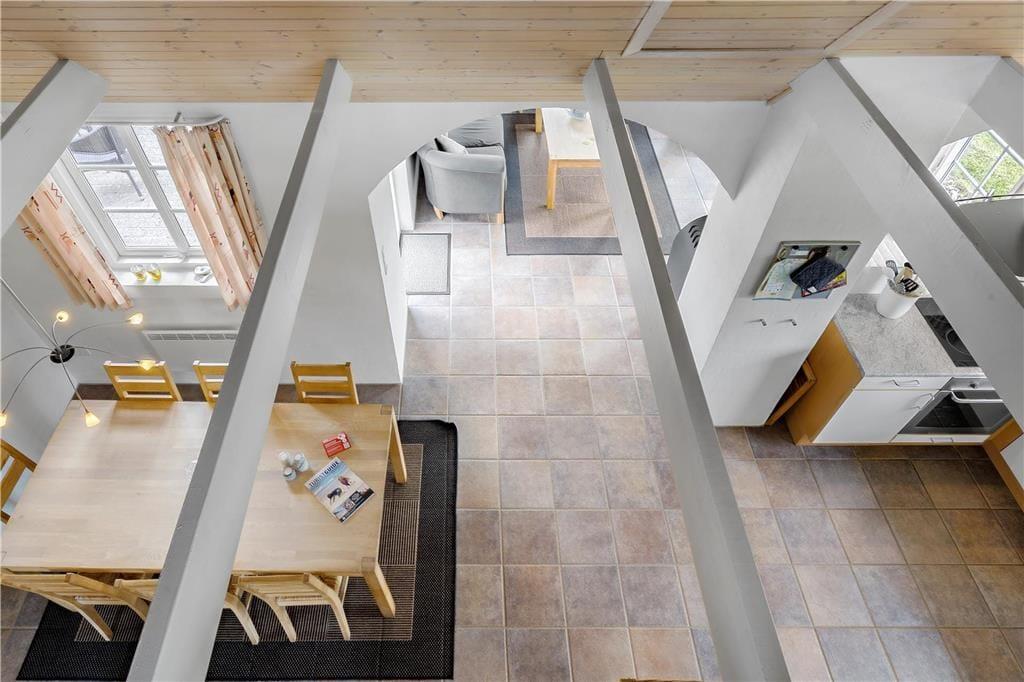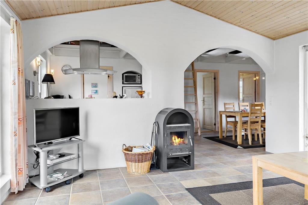 Velkommen til dette fantastiske feriehus, hvor naturen virkelig kan nydes ud af vinduerne! Stue og køkken/alrum er i åben forbindelse, hvilket giver et lyst og rummeligt miljø med lofter til kip. Fra de store vinduer i stuen har I en helt uforstyrret udsigt over den smukke naturgrund, omkranset af majestætiske træer. Her kan I ofte spotte et væld af fugle, og måske endda en hare eller et rådyr, der kigger forbi.
