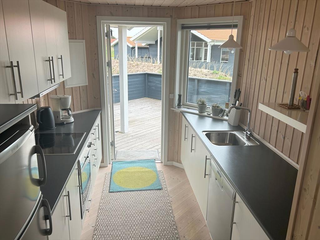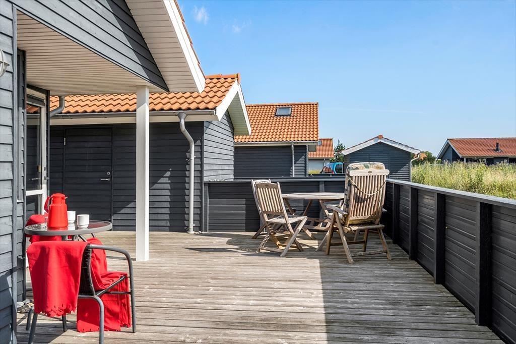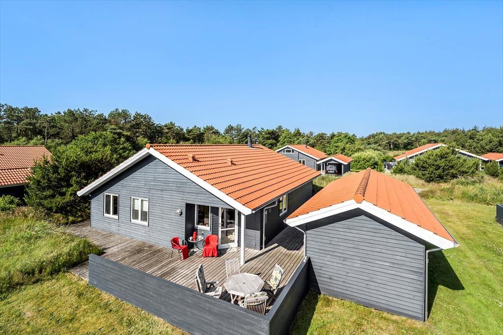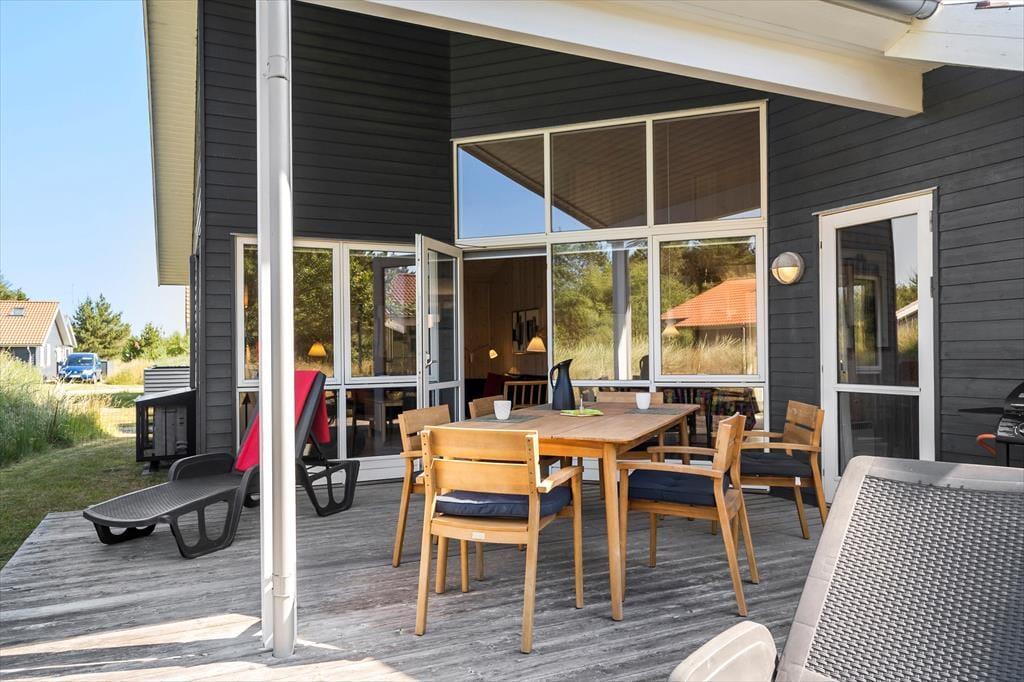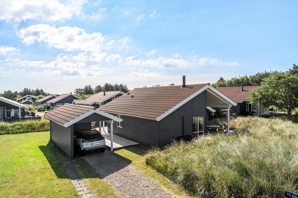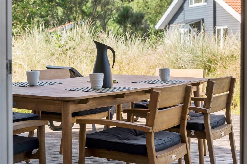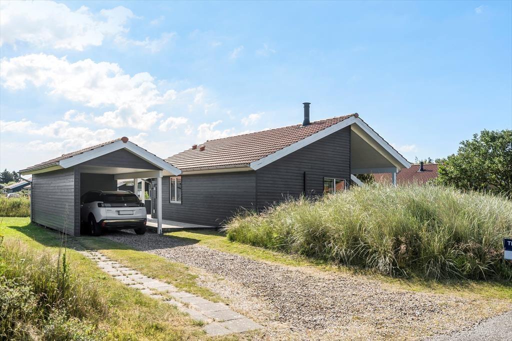 Forestil jer at nyde morgenkaffen i solen, mens I sidder på den skønne træterrasse, der smyger sig om det meste af huset – her er rig mulighed for at finde både læ og sol hele dagen. De komfortable havemøbler indbyder til lange, afslappede stunder, hvor I kan hygge jer sammen, nyde et godt måltid under åben himmel eller bare læne jer tilbage og lade roen sænke sig. En del af terrassen og haven er indhegnet, hvilket gør området helt perfekt for både børn og hund – her kan de trygt lege og færdes frit. Til huset hører også en praktisk carport med tilhørende udhus, hvor I har god opbevaringsplads til cykler, strandudstyr eller andet feriegrej. I kort afstand fra huset finder I et fælles legeareal og en boldbane, hvor børnene kan få nye legekammerater, og I sammen kan nyde ferien i aktive og hyggelige omgivelser. Her er der virkelig tænkt på både afslapning, fællesskab og familieliv.