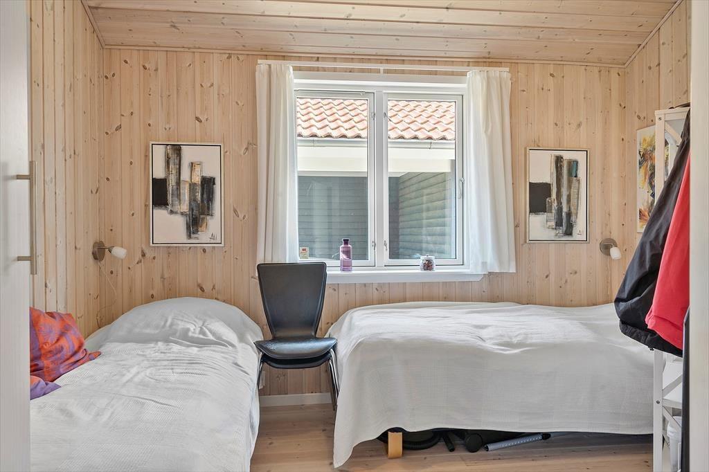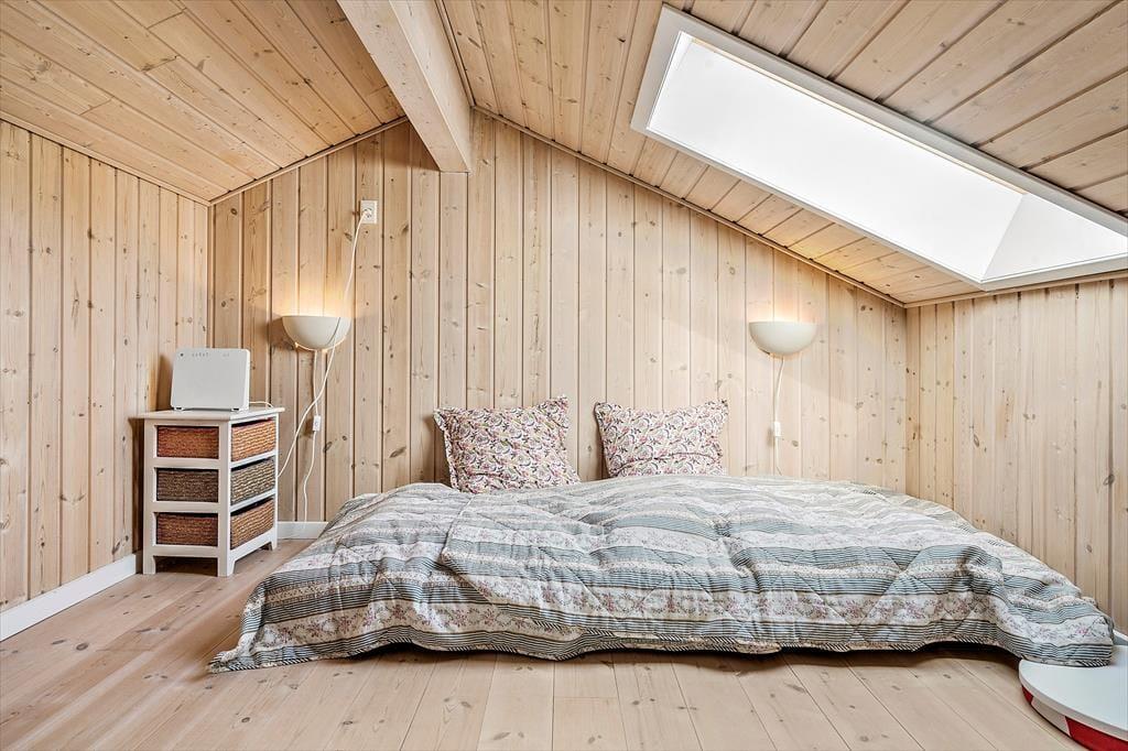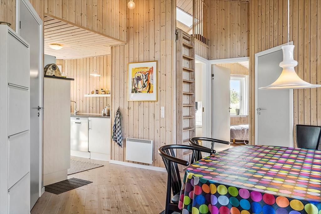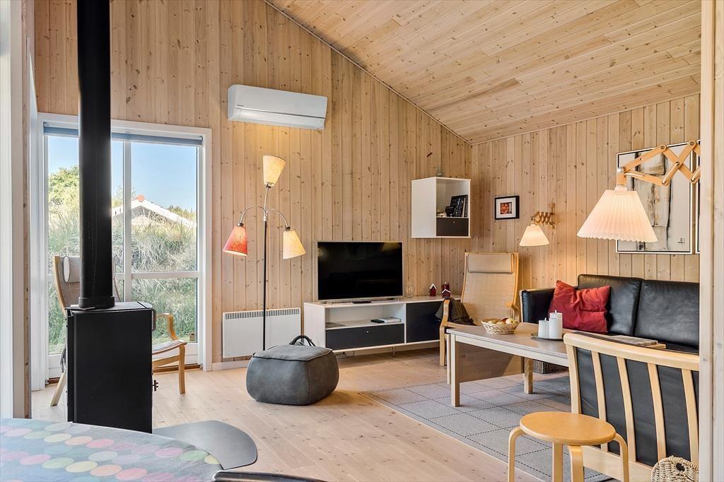Glæd jer til en dejlig ferie i dette charmerende træferiehus, der emmer af hygge og varme. Her bor I på en mindre, overskuelig grund – perfekt til afslapning – og med kort afstand til et skønt skovområde, hvor både børn og voksne kan få glæde af en stor og indbydende skovlegeplads. Huset er lyst og venligt indrettet med komfortable møbler og en indbydende atmosfære, hvor I straks vil føle jer hjemme. Det åbne køkken er veludstyret og en naturlig samlingsplads, hvor I kan lave mad sammen, mens samtalen flyder videre ind i spise- og opholdsstuen. Her er plads til både nærvær og afslapning. Badeværelset er flot og moderne med bruseniche og spa – et oplagt sted at forkæle sig selv efter en dag i naturen. Med tre lyse soveværelser og en hyggelig hems er der god plads til hele familien – også til de små, der elsker at kravle op og få deres egen lille hule. Dette er stedet, hvor I kan nyde roen, hinanden og naturen lige udenfor døren.
