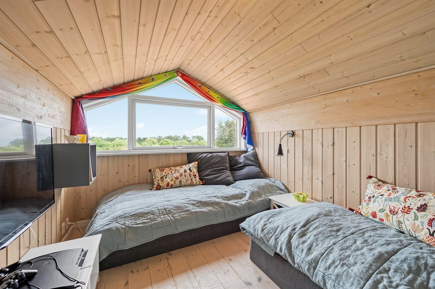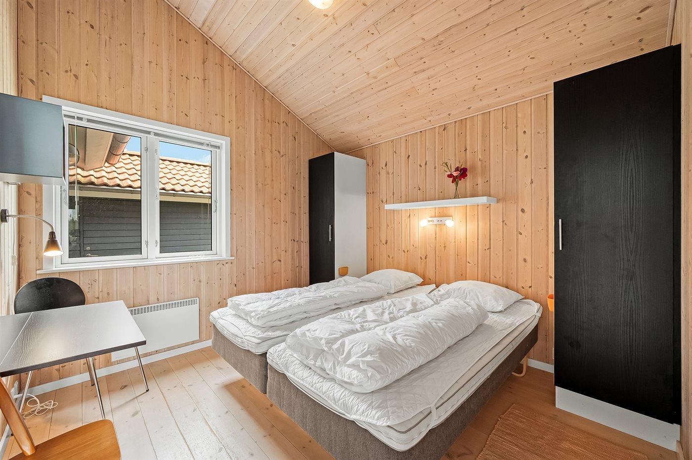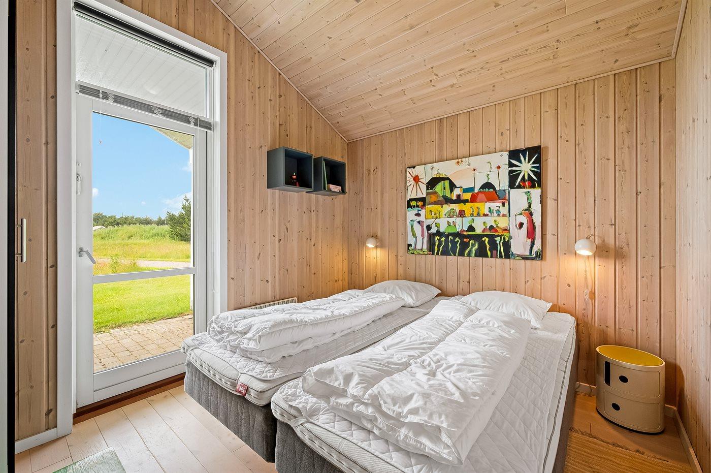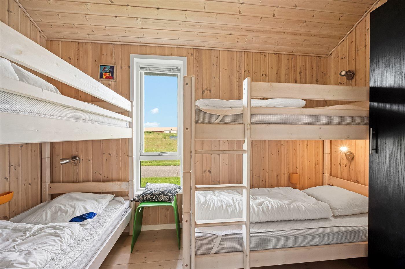 Der er i alt 3 soveværelser. Sovepladserne fordeler sig på: 6 sovepladser i enkeltsenge. 4 sovepladser i køjesenge. 2 af disse sovepladser befinder sig på husets hems. Derudover er der 1 stk. barneseng.