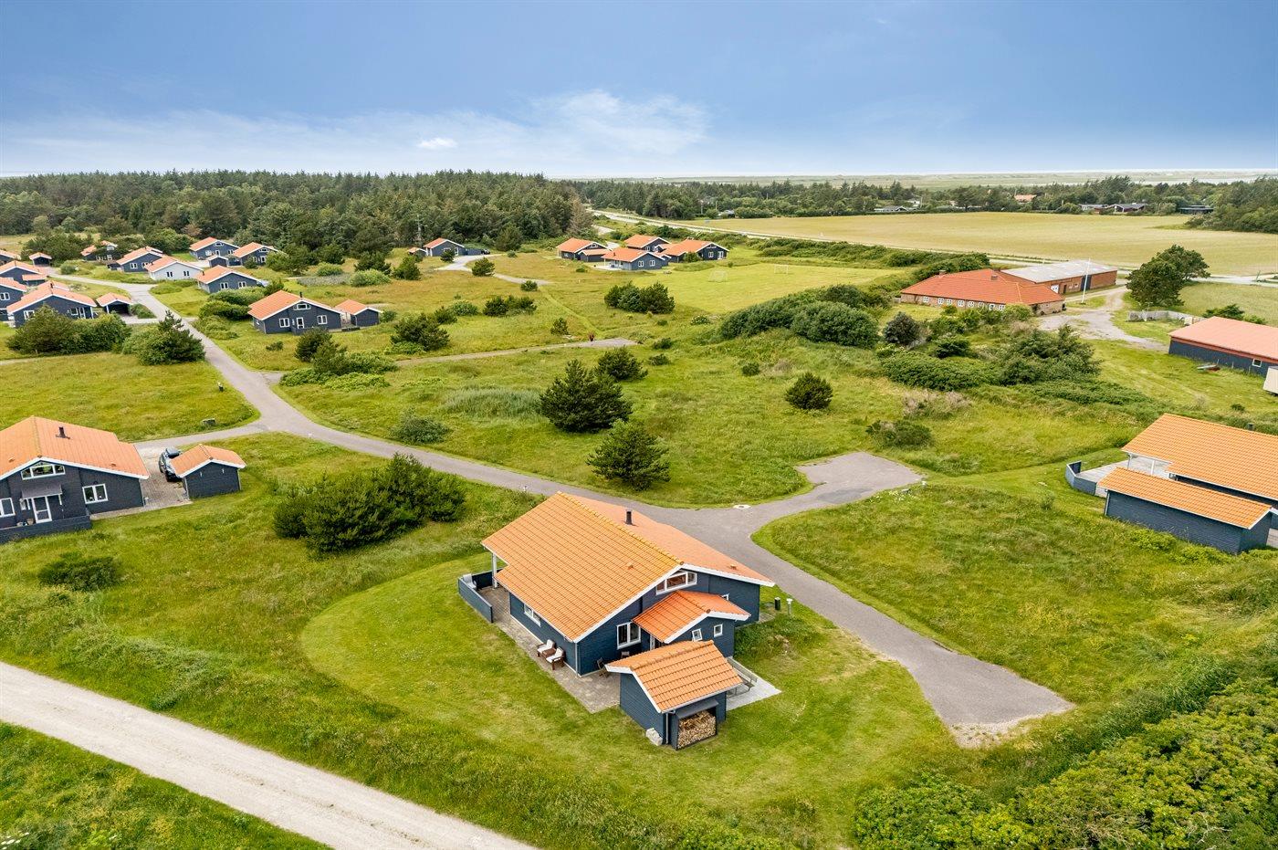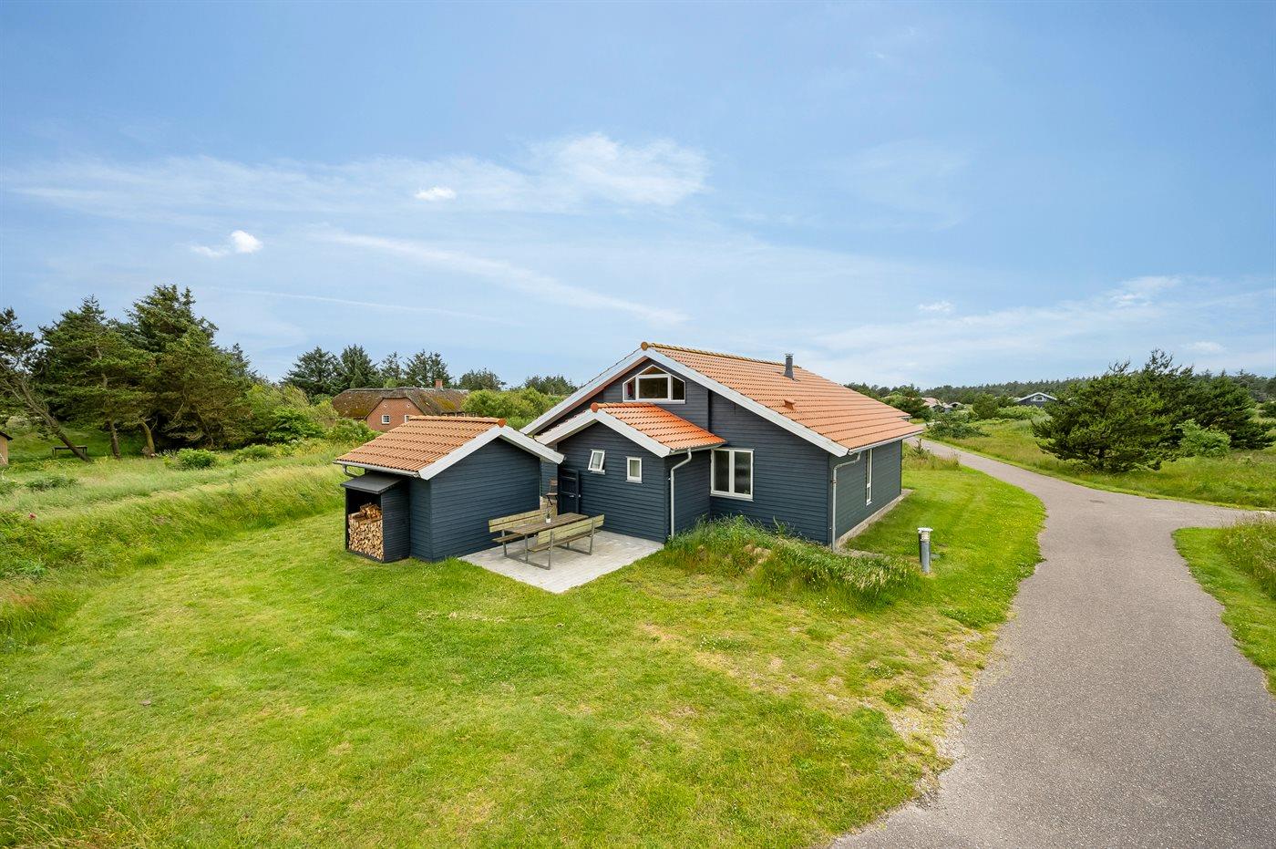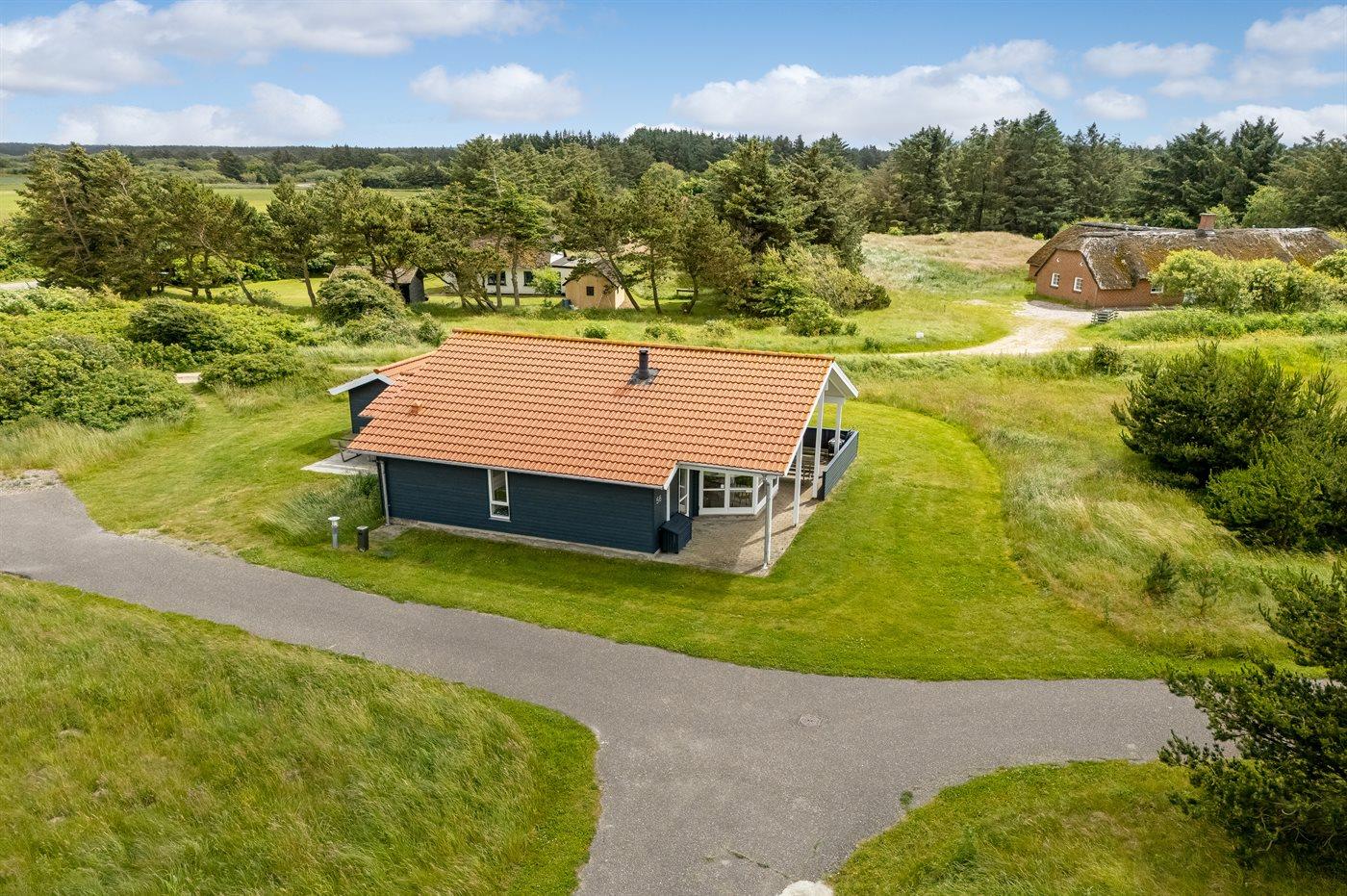 Ferieboligen er beliggende på en 400 m² stor naturgrund. Der er 800 m til havet. Der er 1000 m til fjorden. Nærmeste forretning er beliggende i en afstand af 3000 m. Til ferieboligen hører åbent terrasseareal. Desuden er der overdækket terrasse. Der er redskabsrum. Der ligger en legeplads i en afstand af 400 m. Grill til rådighed. Der er installeret stik til opladning af elbil. Type 2 stik. Med 11 kW ladeeffekt. Parkering ved ferieboligen.