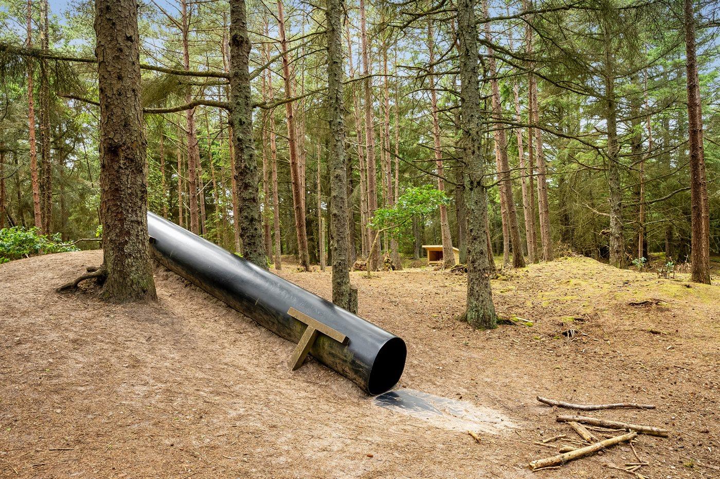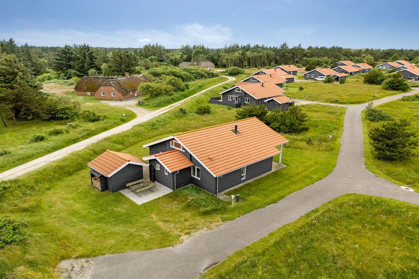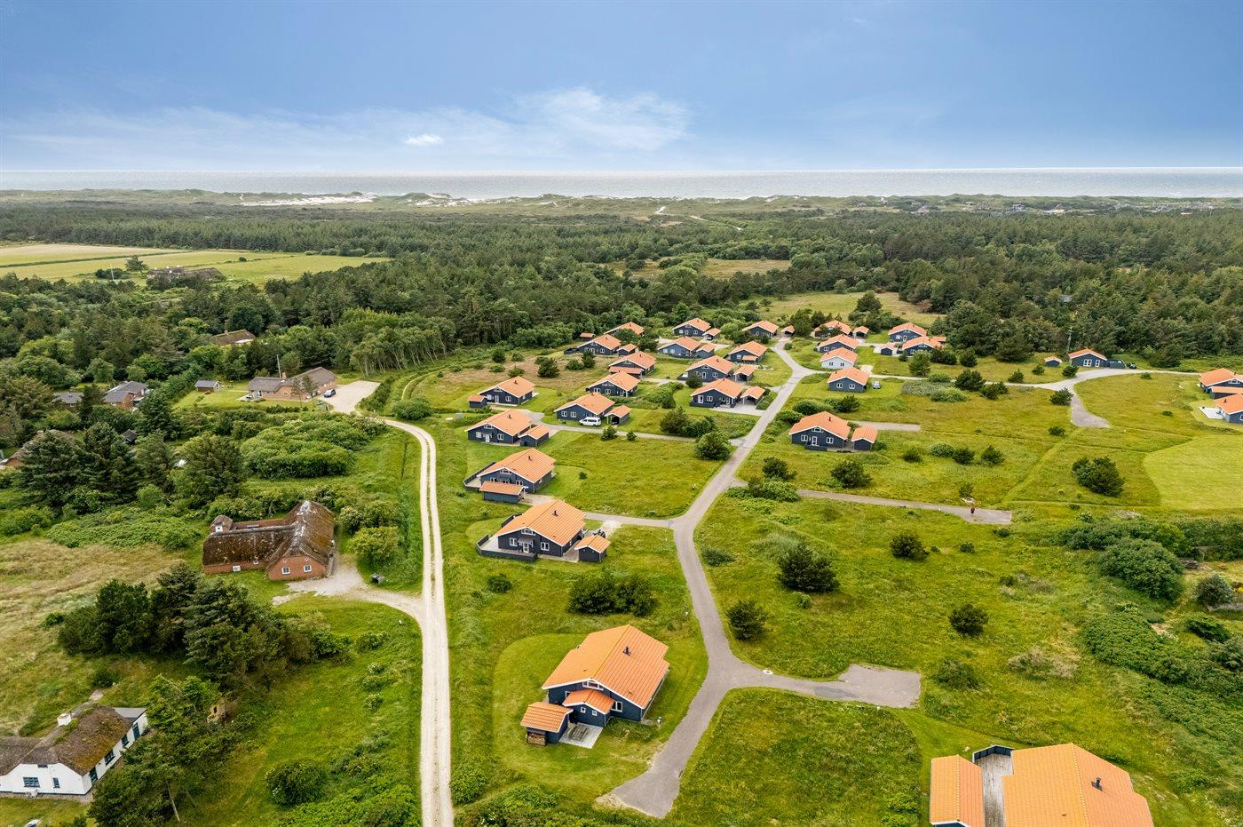 Ferieboligen er beliggende på en 400 m² stor naturgrund. Der er 800 m til havet. Der er 1000 m til fjorden. Nærmeste forretning er beliggende i en afstand af 3000 m. Til ferieboligen hører åbent terrasseareal. Desuden er der overdækket terrasse. Der er redskabsrum. Der ligger en legeplads i en afstand af 400 m. Grill til rådighed. Der er installeret stik til opladning af elbil. Type 2 stik. Med 11 kW ladeeffekt. Parkering ved ferieboligen.