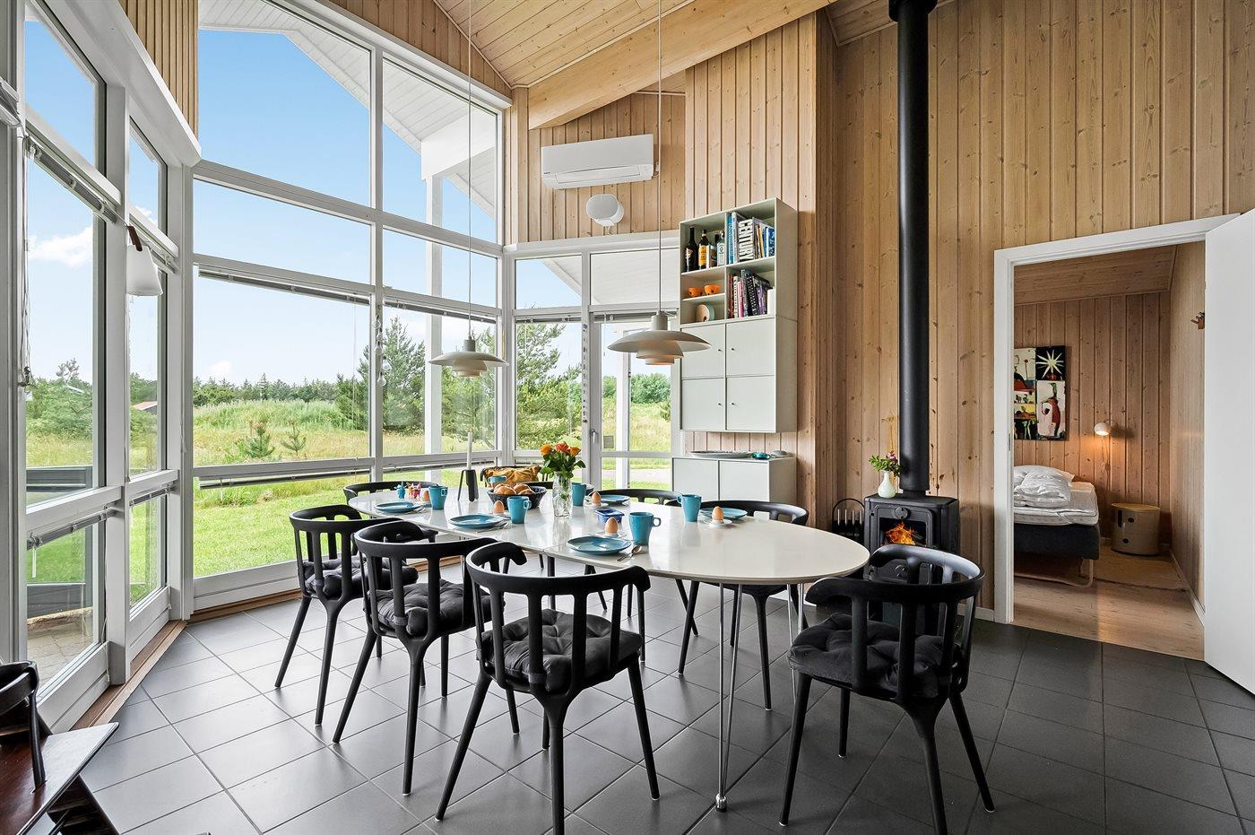 Sommerhuset egner sig til 8 personer. Ferieboligen er på 99 m² og er bygget i 2011. Det er tilladt at medbringe 2 husdyr. Ferieboligen er udstyret med 1 energibesparende luft til luft varmepumpe. Der er gulvvarme i alle klinkegulve. Ferieboligen har vaskemaskine. Tørretumbler. Frysekapacitet på 40 liter. Der er desuden brændeovn. Til de små er der 1 stk. barnestol.
