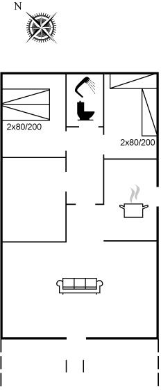 Der er i alt 2 soveværelser. Sovepladserne fordeler sig på: 2 sovepladser i dobbeltseng. 2 sovepladser i enkeltsenge.