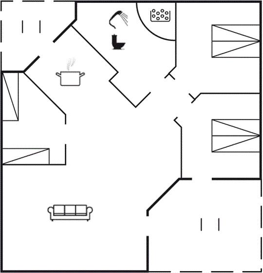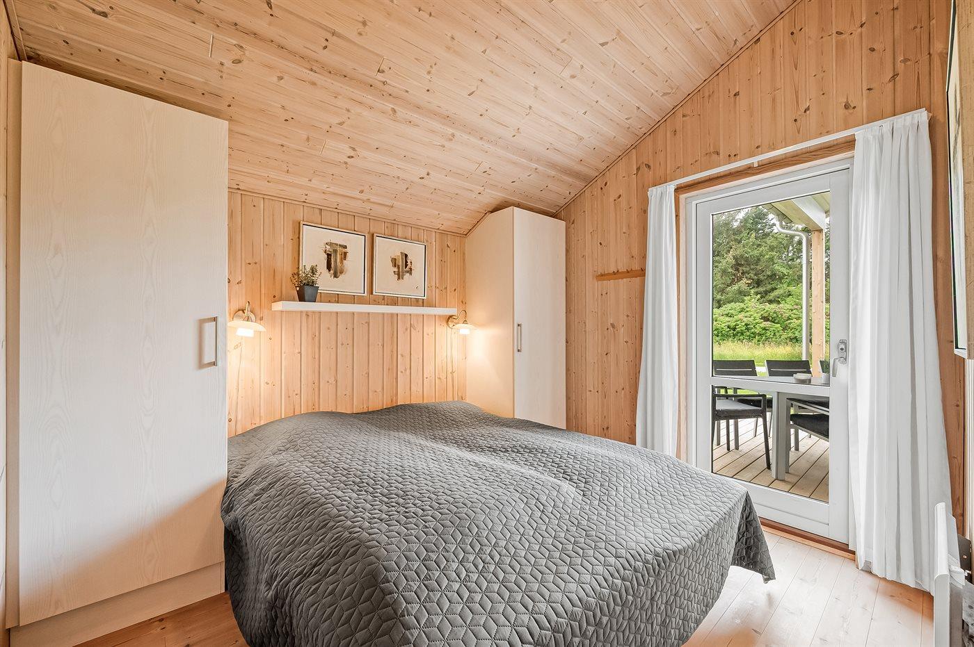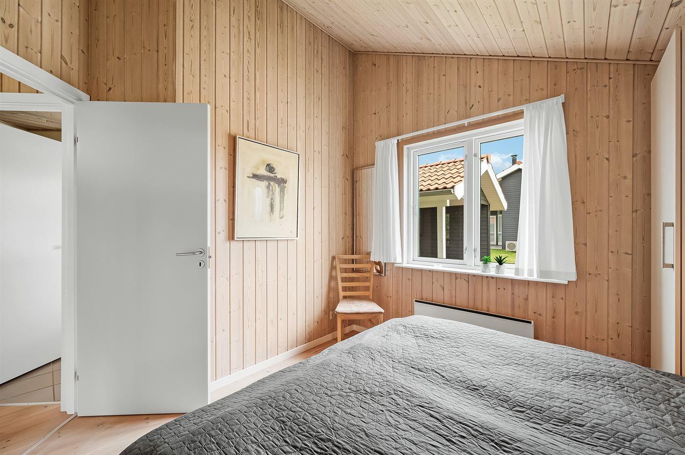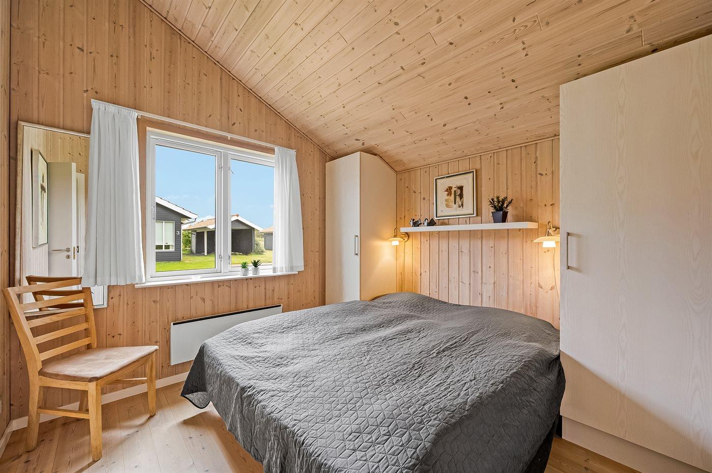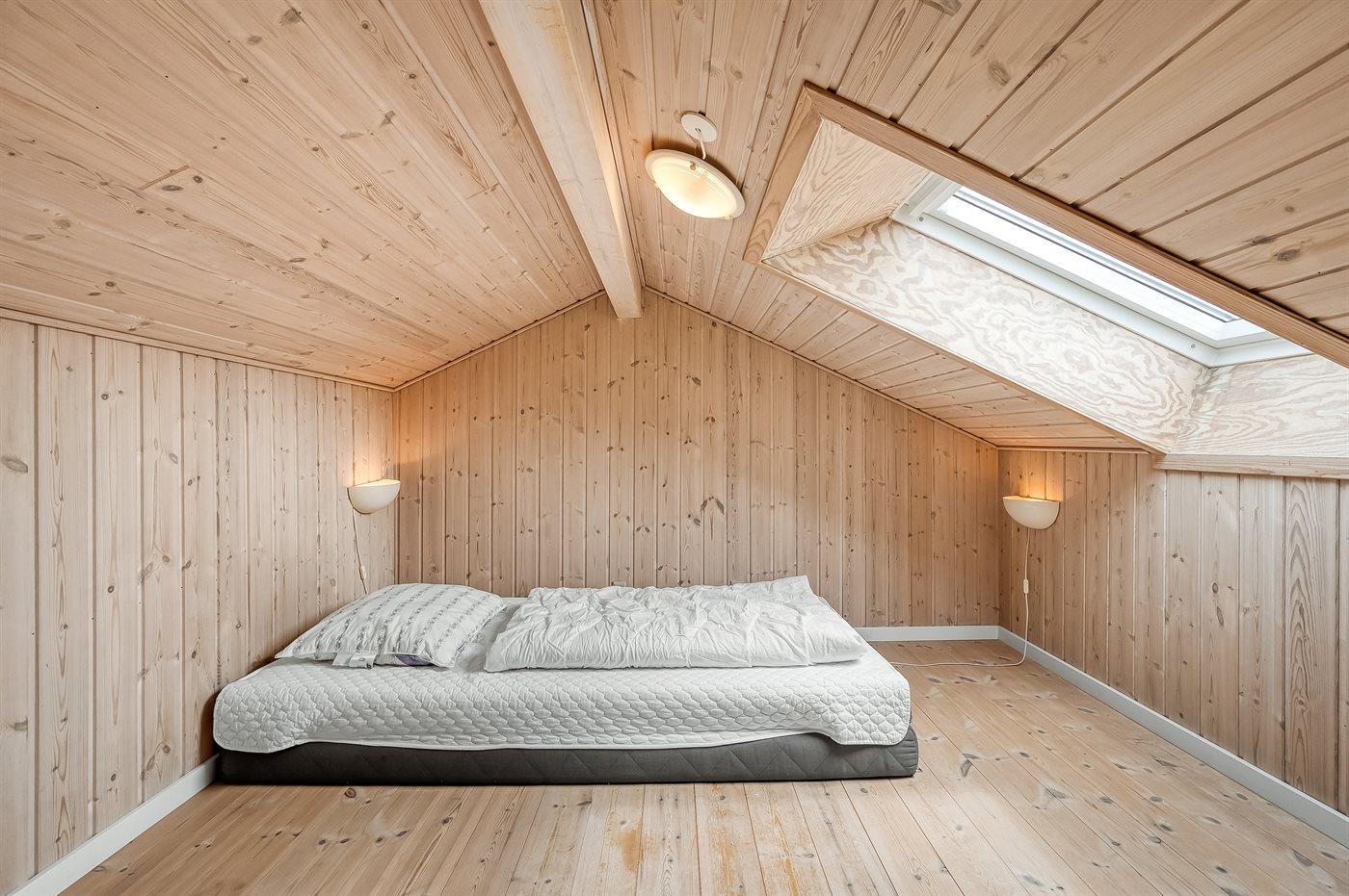 Der er i alt 3 soveværelser. Sovepladserne fordeler sig på: 6 sovepladser i enkeltsenge. 2 sovepladser på madrasser. 2 af disse sovepladser befinder sig på husets hems.
