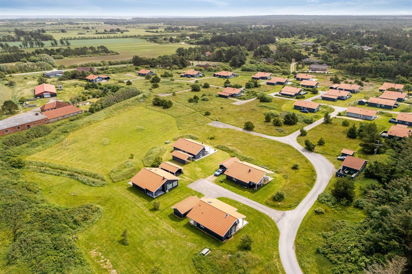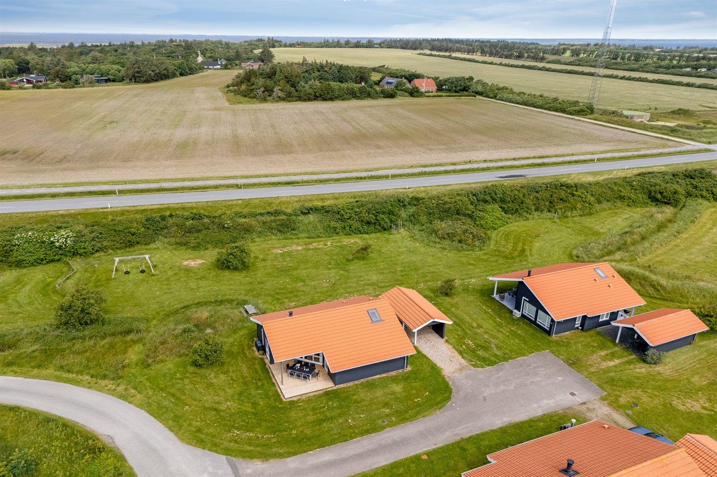 Ferieboligen er beliggende på en 400 m² stor naturgrund. Der er 800 m til havet. Der er 1000 m til fjorden. Nærmeste forretning er beliggende i en afstand af 3000 m. Til ferieboligen hører åbent terrasseareal. Desuden er der overdækket terrasse. Der er redskabsrum. Der ligger en legeplads i en afstand af 400 m. Der er carport til rådighed.