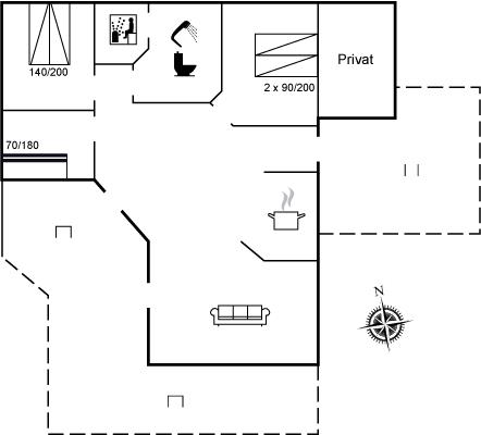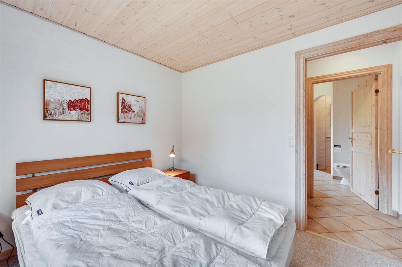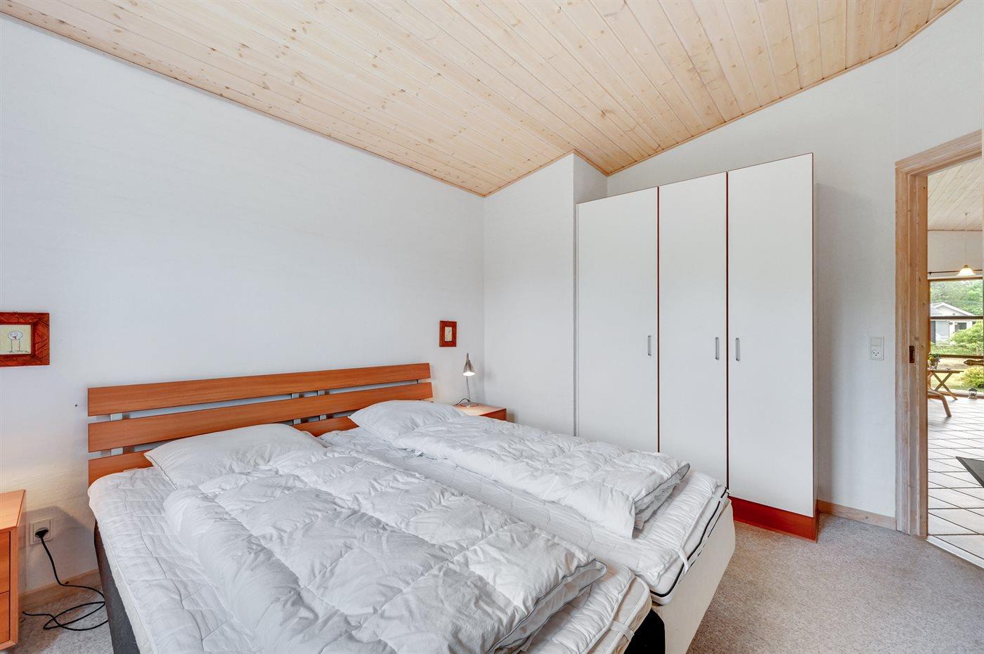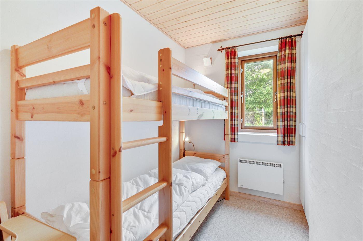 Der er i alt 3 soveværelser. Sovepladserne fordeler sig på: 4 sovepladser i dobbeltsenge. 2 sovepladser i køjeseng. Derudover er der 1 stk. barneseng.