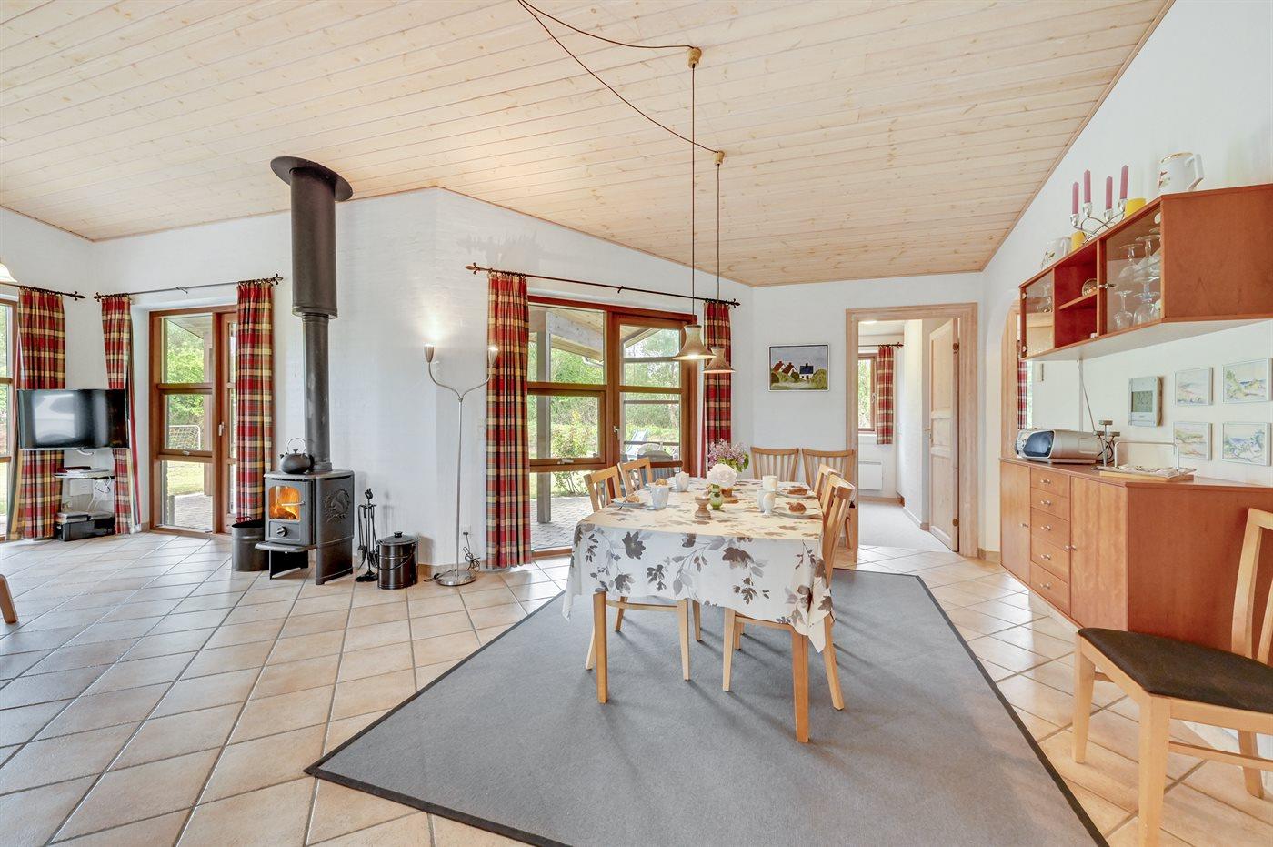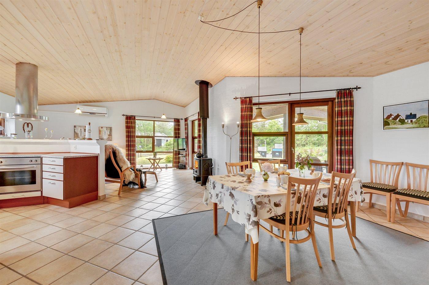 Sommerhuset egner sig til 6 personer samt 1 barn op til 3 år. Ferieboligen er på 98 m² og er bygget i 2001. Det er tilladt at medbringe 2 husdyr. Ferieboligen er udstyret med energibesparende varmepumpe. Ferieboligen har vaskemaskine. Tørretumbler. Frysekapacitet på 34 liter. Der er desuden brændeovn. Til de små er der 1 stk. barnestol.