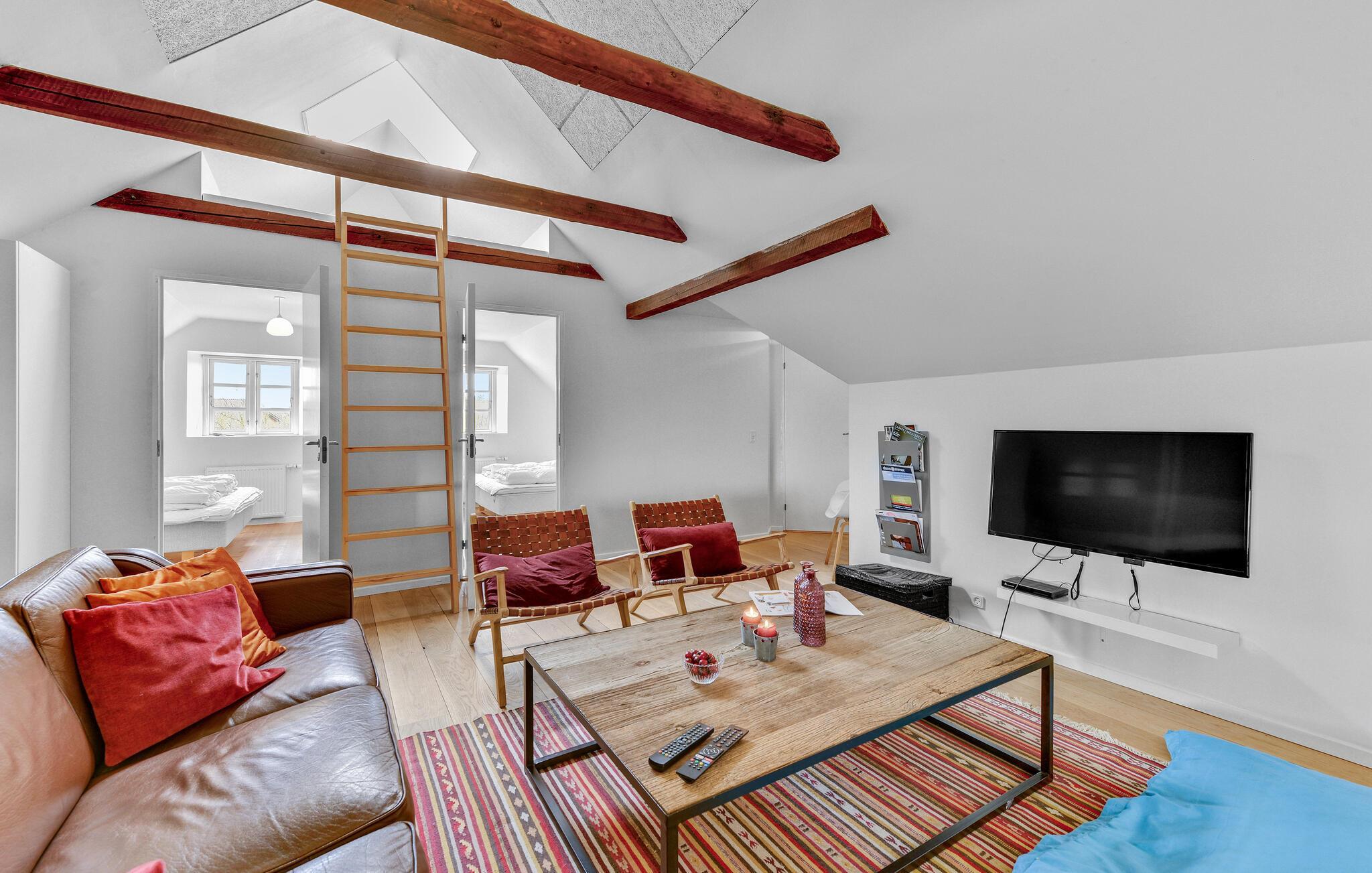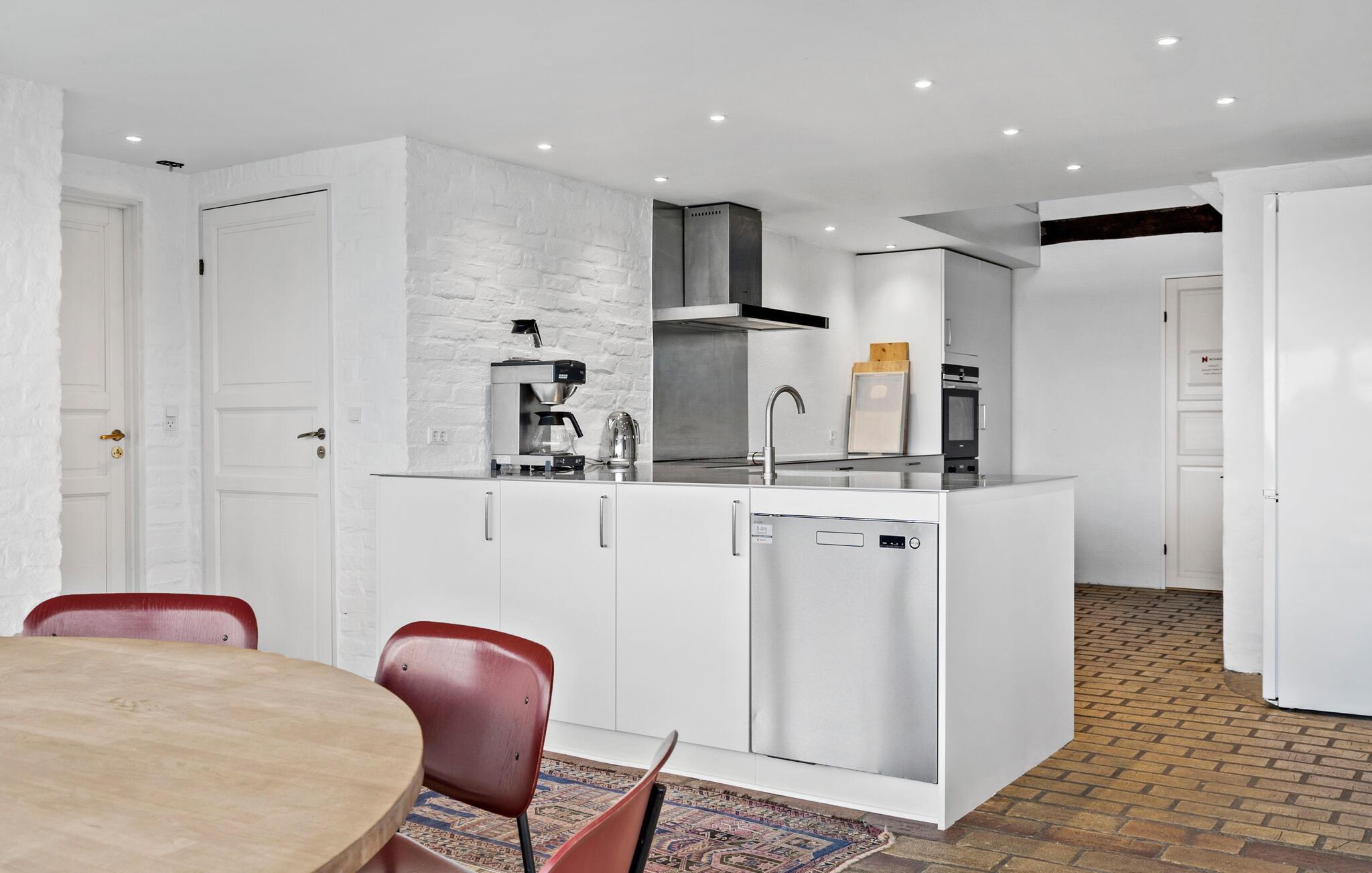Klitgården har 32 sovepladser og består af fire lejligheder, der er opdelt således: Lejlighed A på 157 m2 med plads til ti personer. Lejlighed B på 120 m2 med plads til otte personer. Lejlighed C på 67 m2 med plads til seks personer, og lejlighed D på 180 m2 med plads til otte personer. Så hvis I trænger til at slappe af, kan I med god samvittighed trække jer tilbage til jeres egen bolig, og nyde en god bog eller se lidt tv. Hver lejlighed har hvert sit køkken med alt i tilbehør, spiseplads samt tv-stue med brændeovn. Desuden er der et to-personers spabad til hver lejlighed, hvor tre af lejlighederne også har en sauna. I lejlighed D findes desuden også et aktivitetsrum med poolbord, bordtennis og bordfodbold.