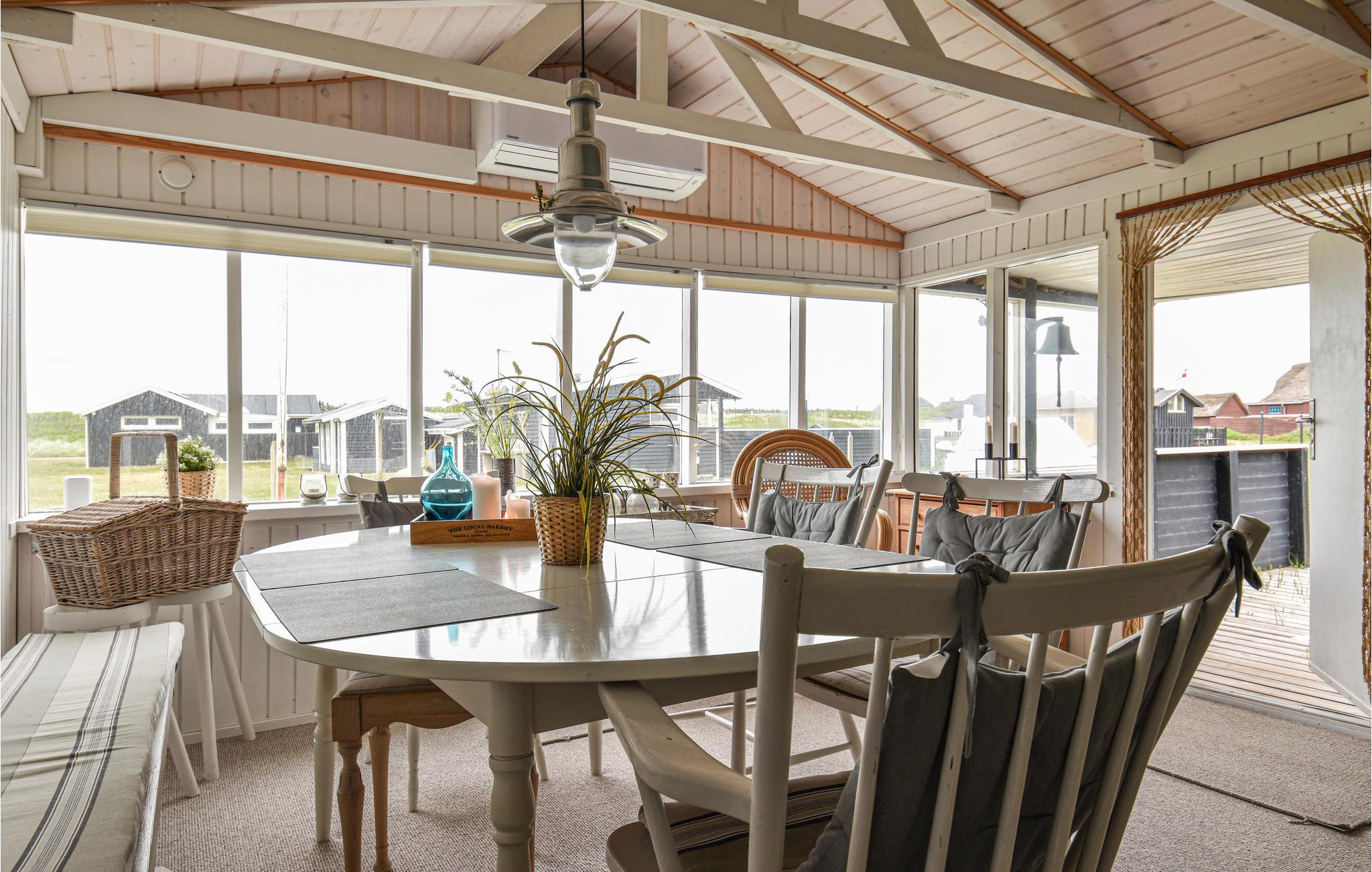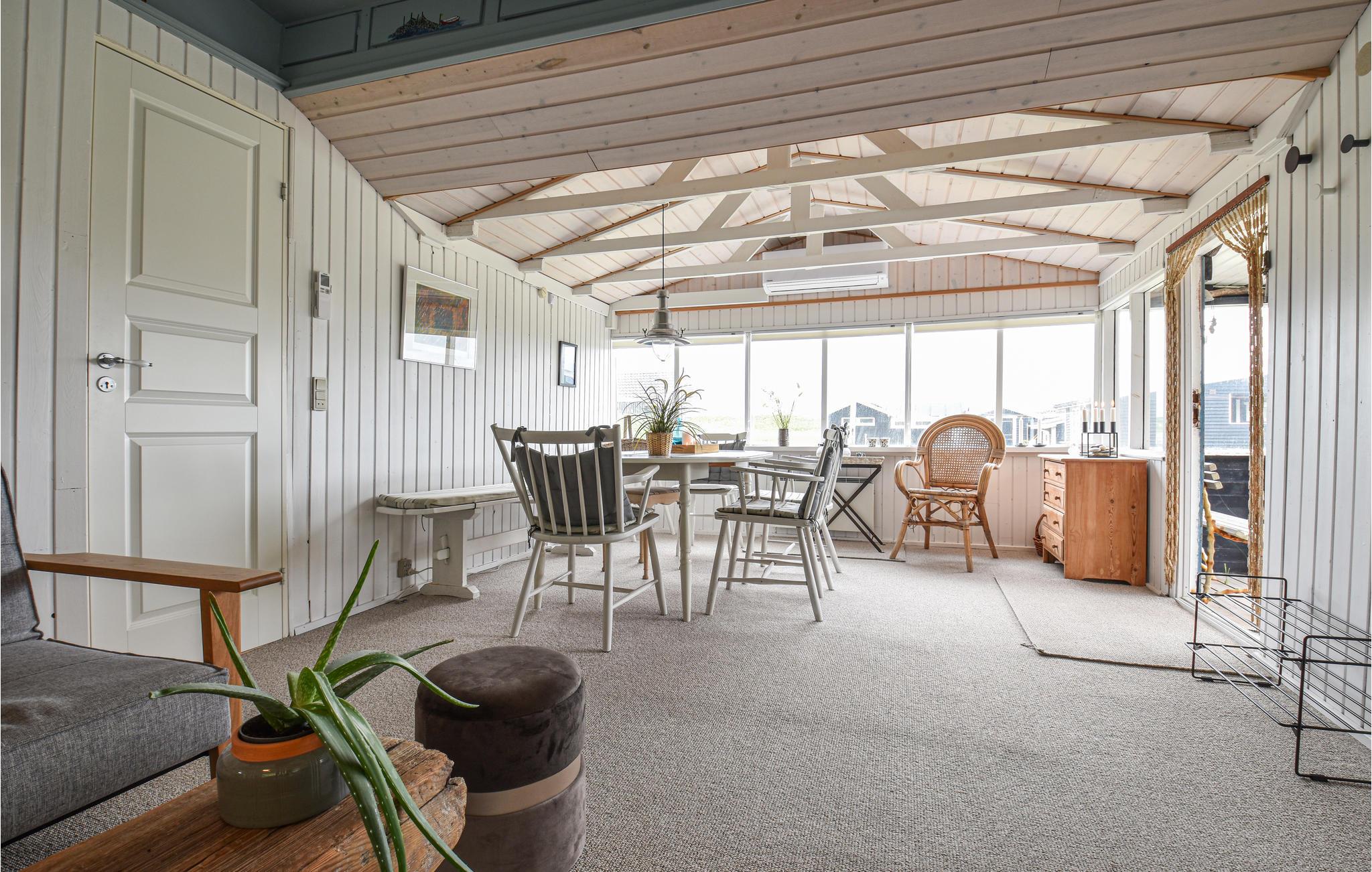 Dette utroligt charmerende og hyggeligt indrettede sommerhus ligger med Vesterhavet i baghaven. Huset er godt indrettet til den lille familie, der elsker naturen og gerne vil bo midt i de naturskønne omgivelser. I selve hovedhuset findes et soveværelse, et badeværelse med bruser samt et lyst og indbydende køkken i åben forbindelse med stuen og spiseområdet. Der er tyske tv-kanaler via parabol samt Chromecast til rådighed. Til huset hører desuden et annex med yderligere et soveværelse og et badeværelse med bruser. Her er flere gode, små lækroge og en dejlig terrasse. Lige bagved huset er klitterne og Vesterhavet.