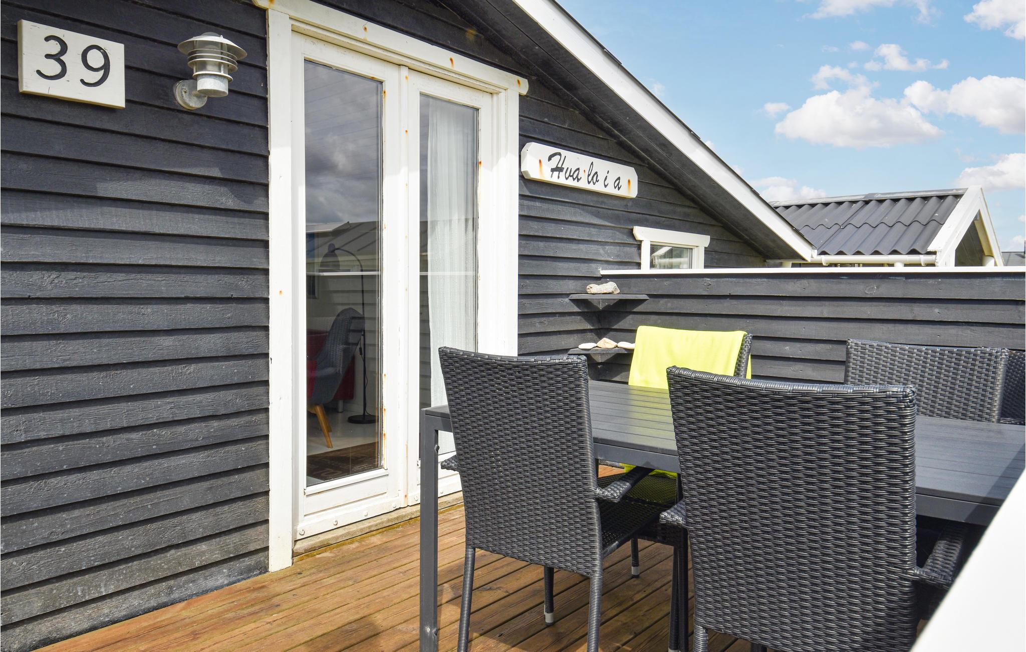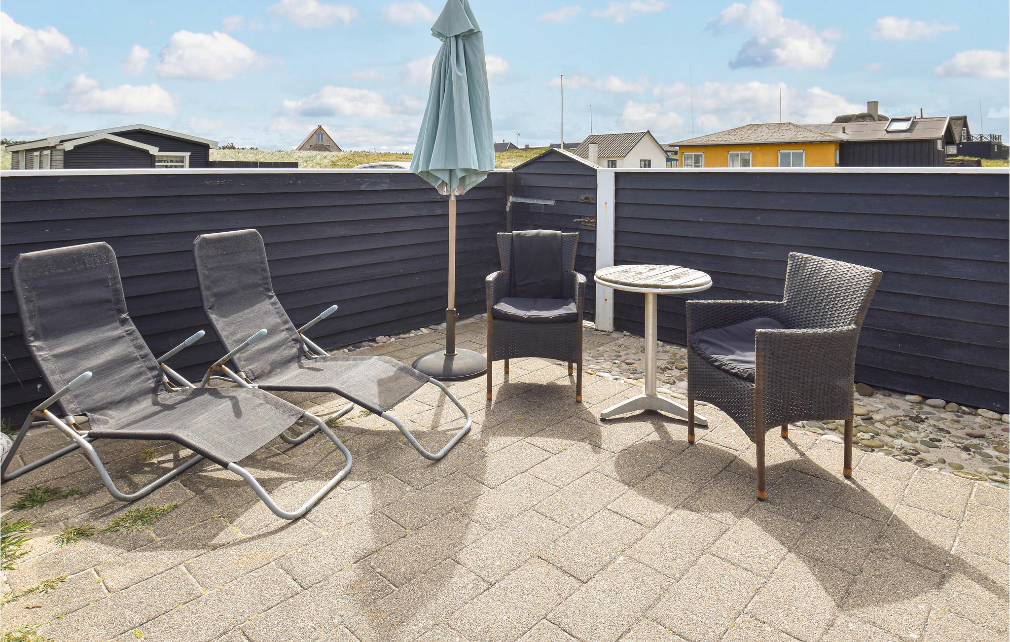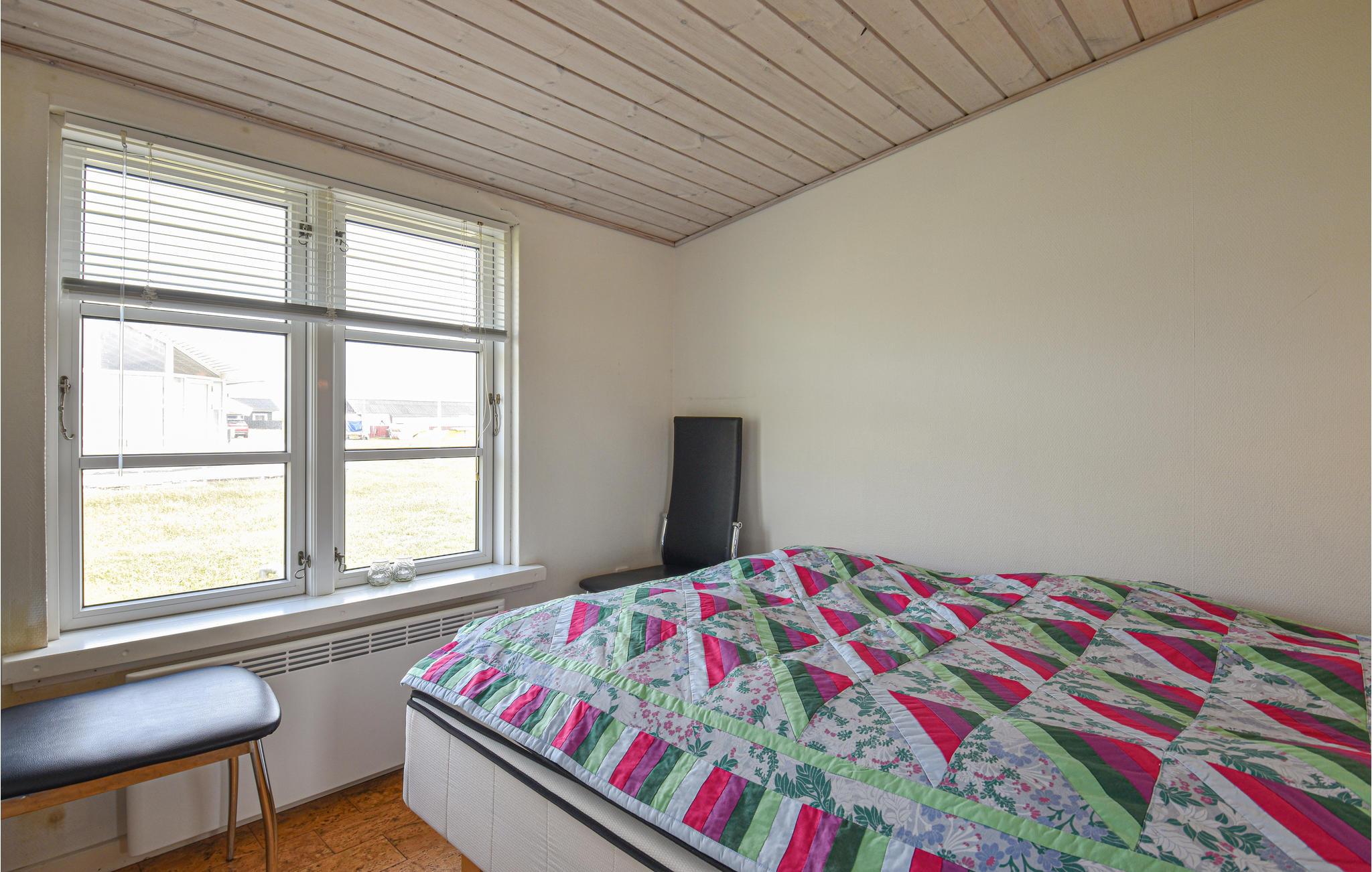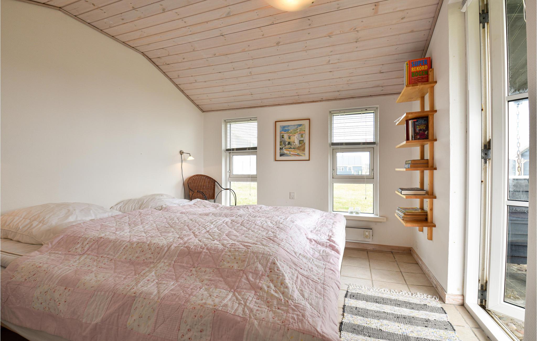Dette skønne sommerhus ligger helt fantastisk, lige på den anden side af de smukke klitter og det betagende Vesterhav. Huset er godt indrettet med et hovedhus og et anneks. I hovedhuset findes et lyst køkken, stue med brændeovn, tv og behagelige møbler. Fra stuen går et par trin ned til et åbent værelse med en sovesofa, der kan slås ud til to sovepladser. Fra dette værelse er der adgang til husets ene badeværelse med bruser. Soveværelset med en dobbeltseng har udgang til den ene overdækkede terrasse. Døren til dette soveværelse er meget lav.
