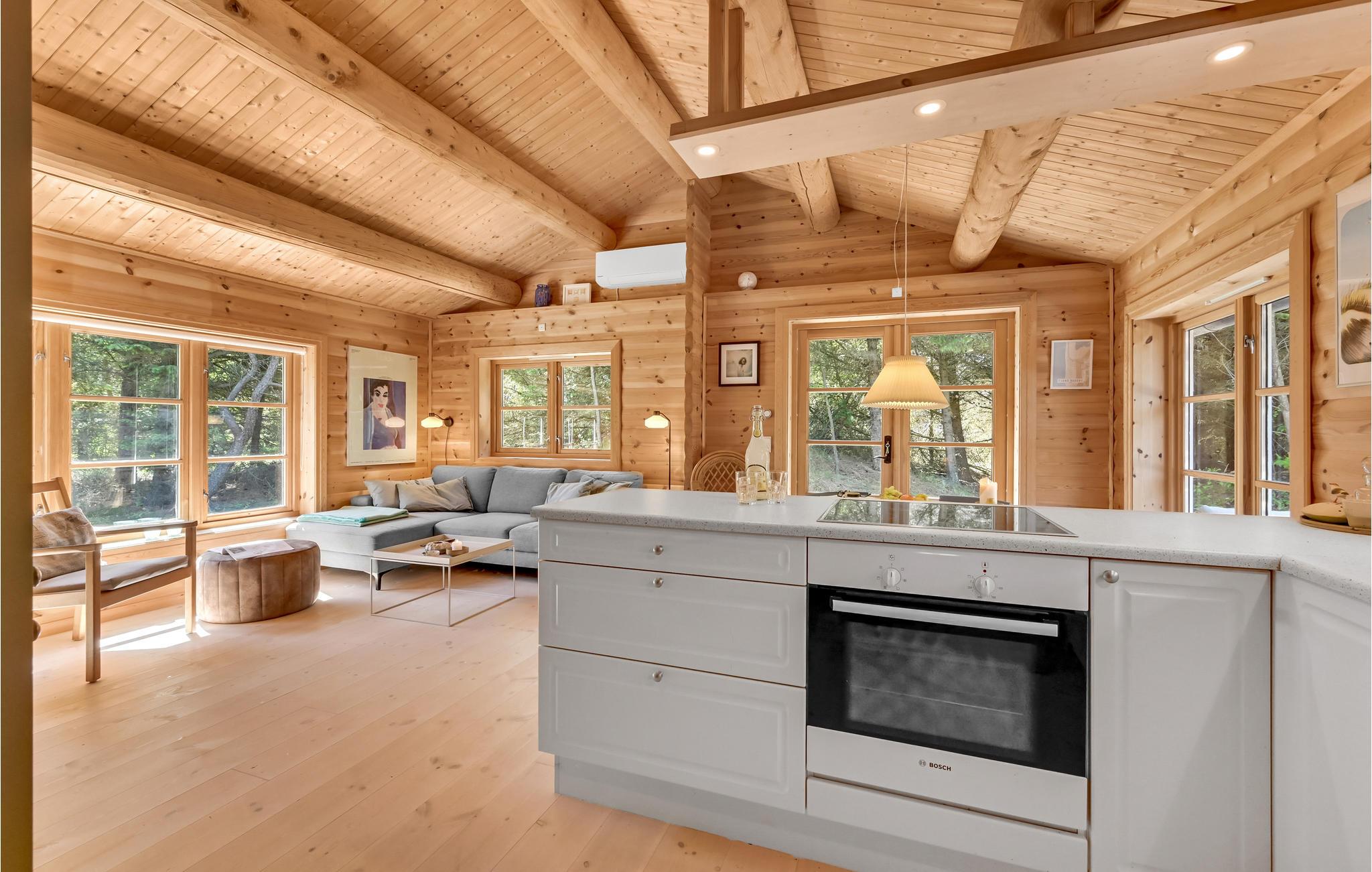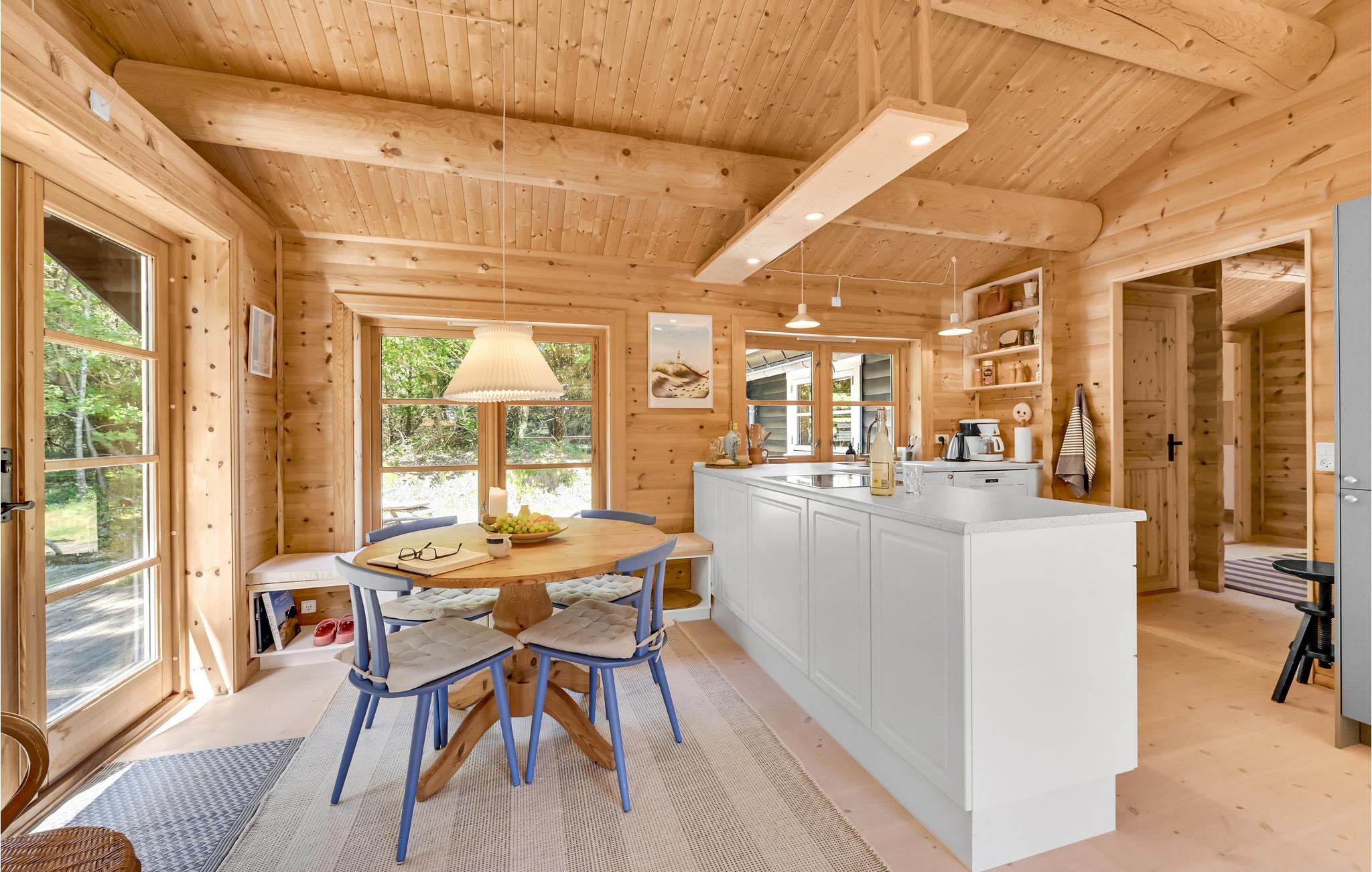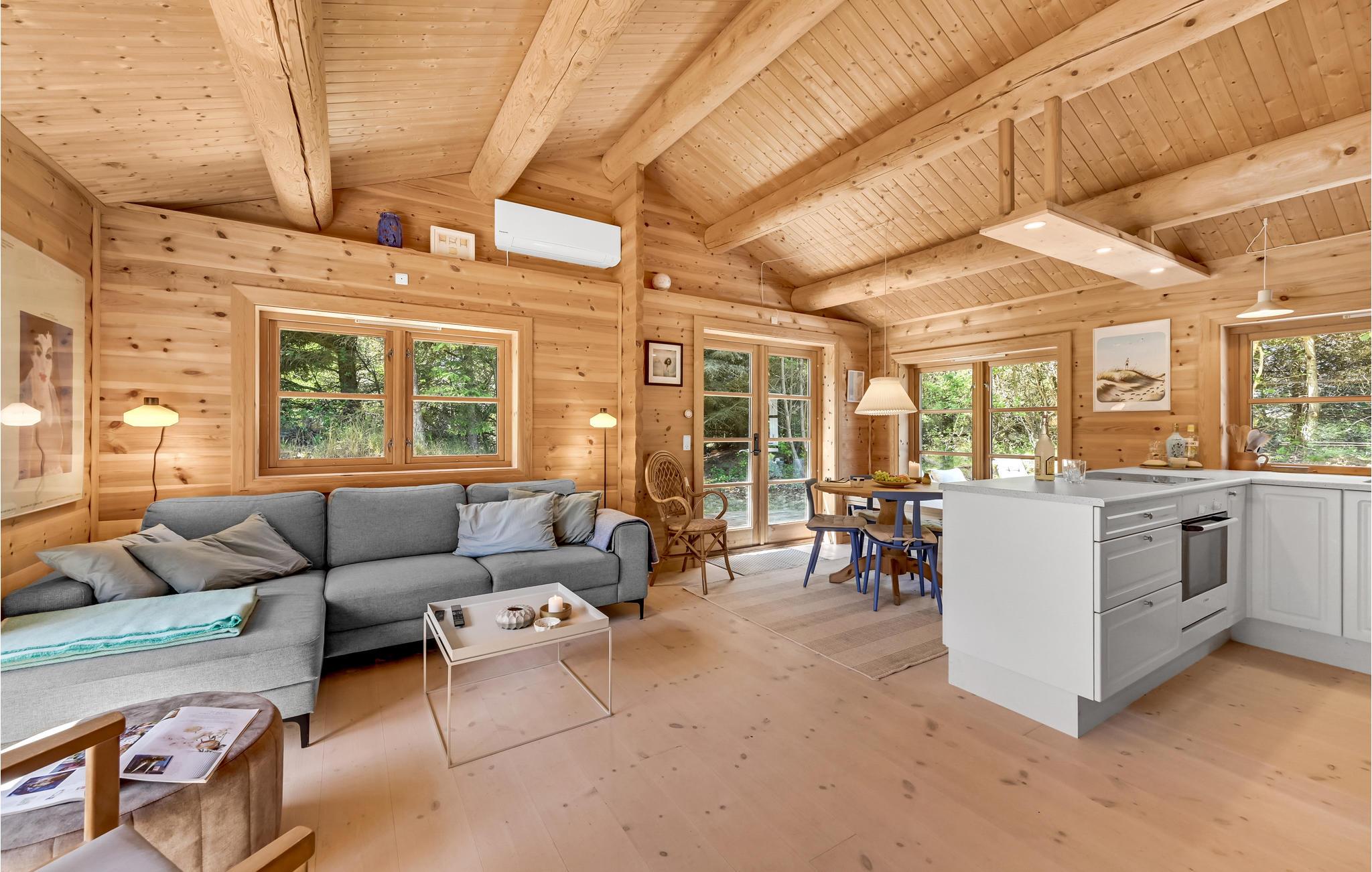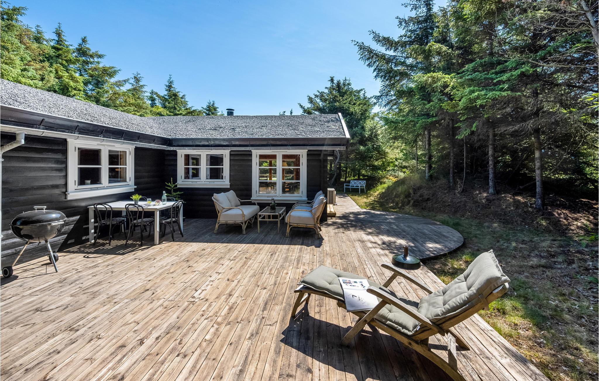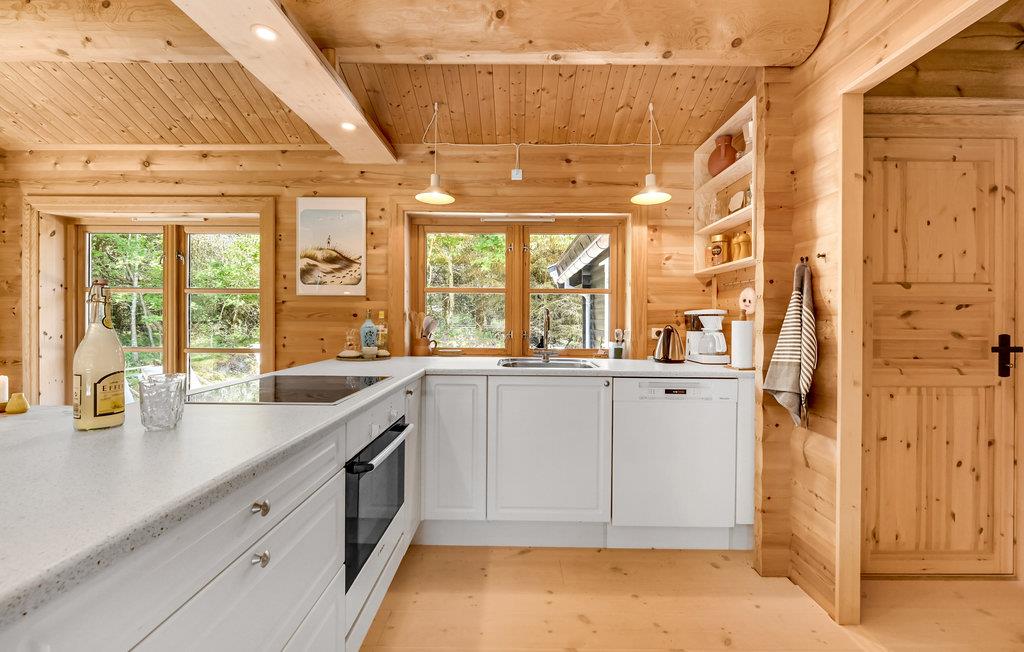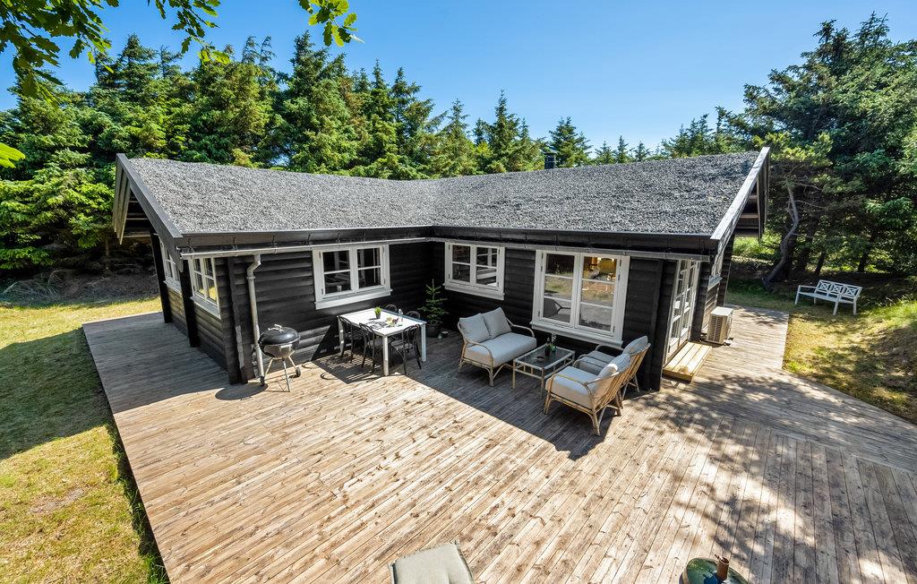 Glæd jer til en skøn ferie på den jyske vestkyst med venner, familie og hund. Huset tager sig ud som en lækker træhytte med et gedigent, skandinavisk udtryk. Her kan I tilbringe dejlige timer med familien. Brændeovnen sørger for hyggelig varme på kølige dage, og når solen er fremme, kan I nyde vejret på terrassen og slippe børnene løs i haven.