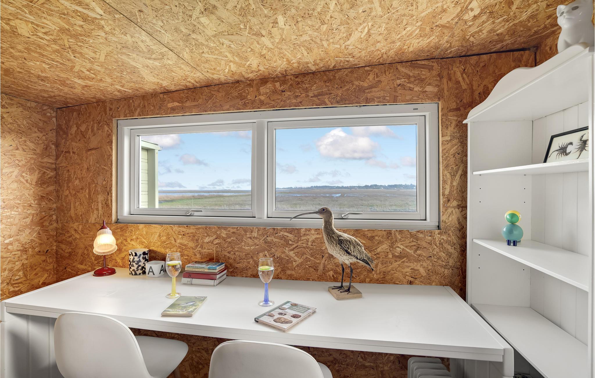 Fra terrassen og udestuen har I en smuk udsigt over fjorden. Et ekstra rum i udhuset giver jer den ideelle udsigt til fuglelivet og inviterer jer til at kigge på det i alt slags vejr.