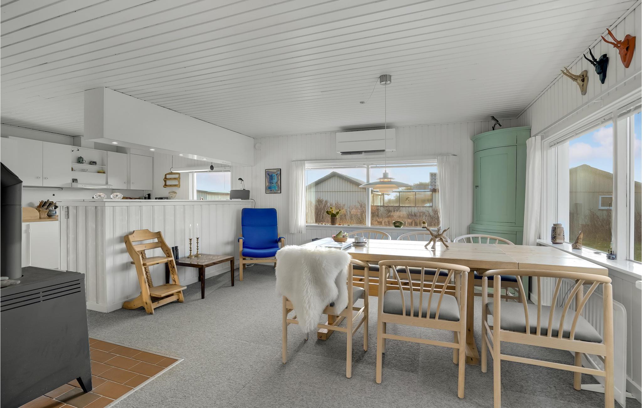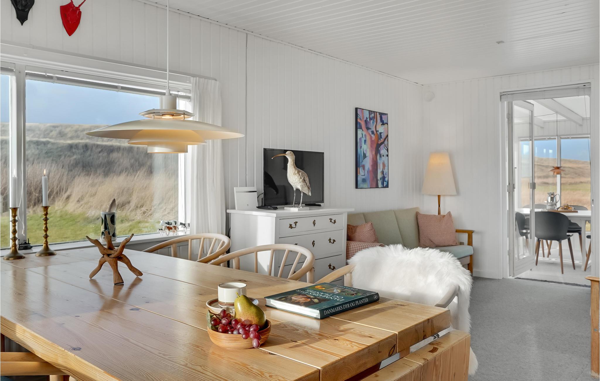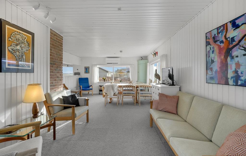 Nyd jeres ferie i en rolig beliggenhed mellem Nordsøkysten og fjorden og føl jer hjemme i det fuldt udstyrede feriehus. Denne smukke feriebolig er ideel til at finde fred og ro og forlade hverdagens travlhed. Tilbring afslappende dage med familien eller et par venner og nyd den lyse stue, som indbyder til mange hyggelige stunder.