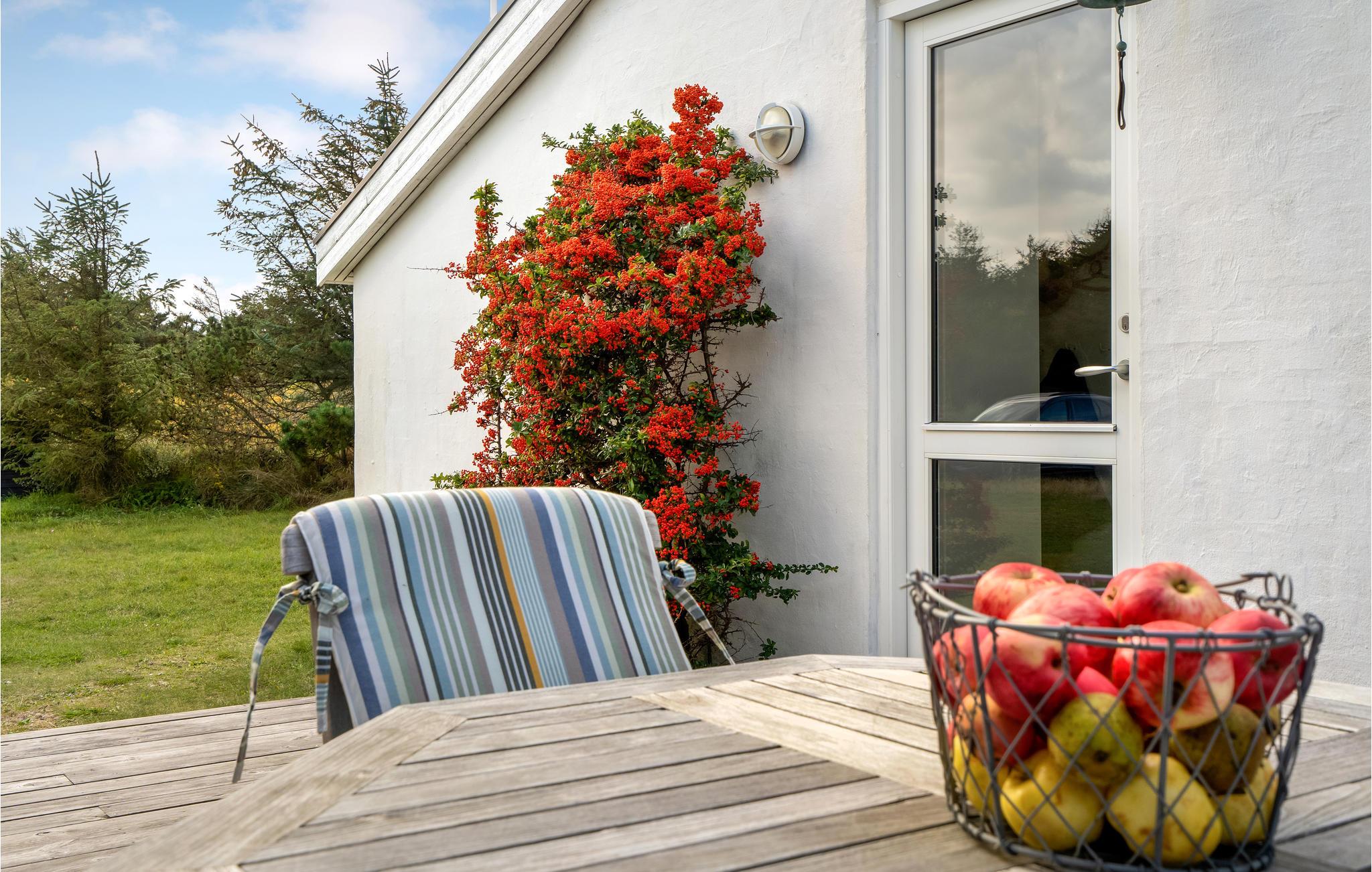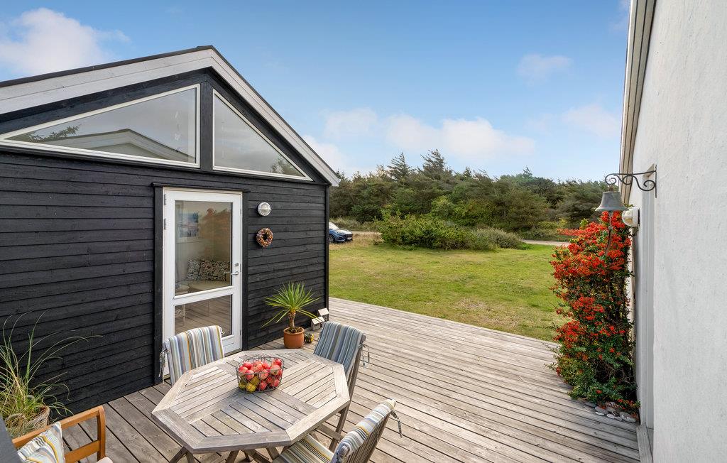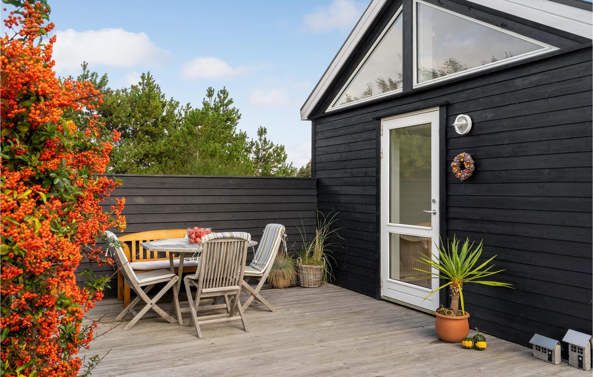 Hyggeligt feriehus med anneks nær sandstrand i Fjand, indrettet i moderne skandinavisk stil med stort terrasseområde.
