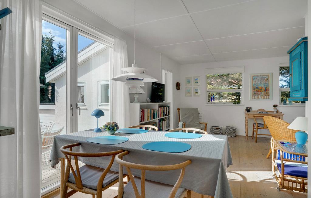 I den lille badeby Fjand, mellem Nissum Fjord og Vesterhavet ligger dette charmerende feriehus, som er indrettet i moderne skandinavisk stil. Feriestemningen indfinder sig hurtigt, for huset er lyst og lækkert indrettet med møbler i flet og træ samt den havblå farve som gennemgående tema. Anneksbygningen giver jer ekstra sengepladser og god mulighed for at fordele jer.