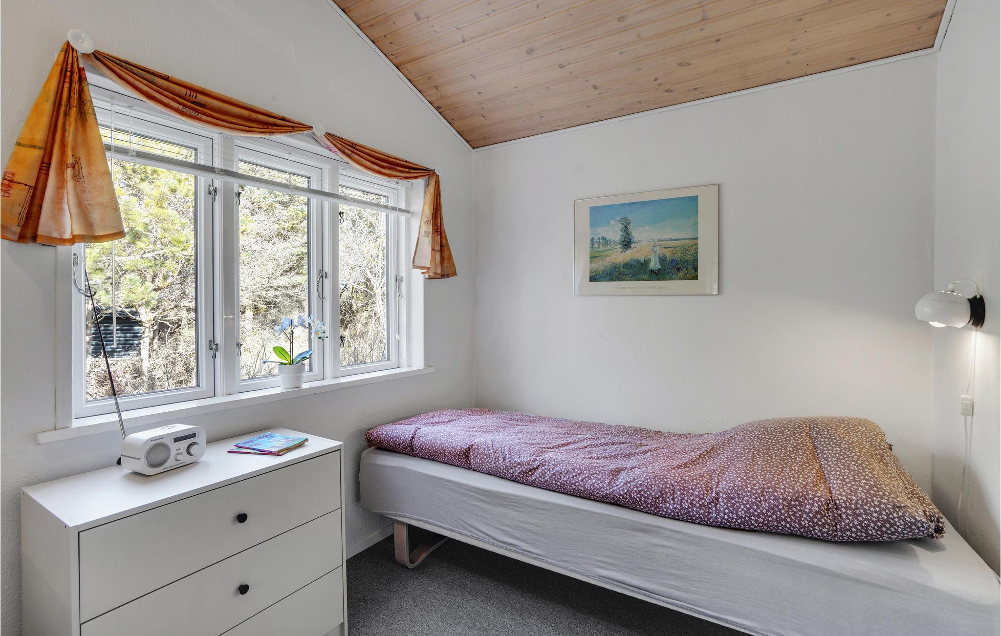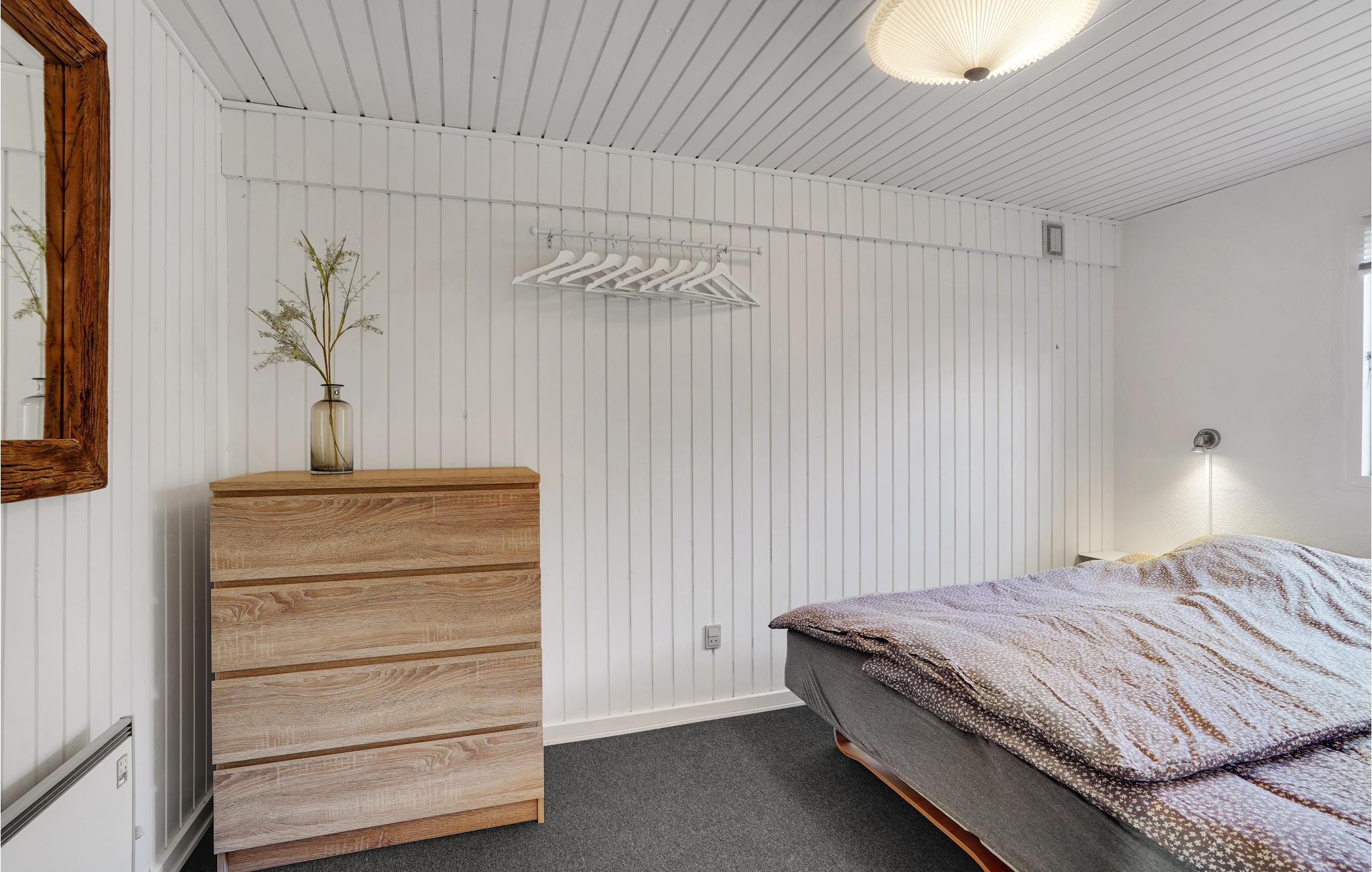 Huset ligger på en flot, åben grund, som er omkranset af træer. Her er der gode rammer til hele familien, for boligen er lys, stilren og enkelt indrettet. Nyd dagens måltider i den behagelige udestue, som næsten går i ét med haven. Efter en lang dag på farten, hvor I både har været ved vandet og på udflugter, kan I se frem til en rolig aften i sommerhuset.
