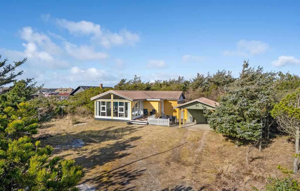 Hyggeligt og lyst feriehus i Fjand med skøn udestue og kort gåafstand til Vesterhavet.