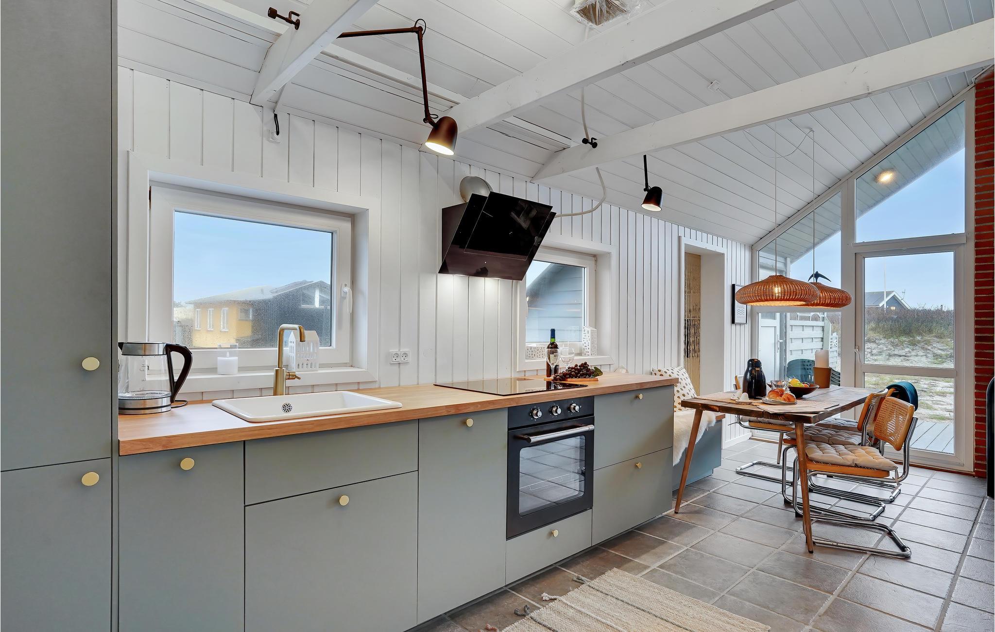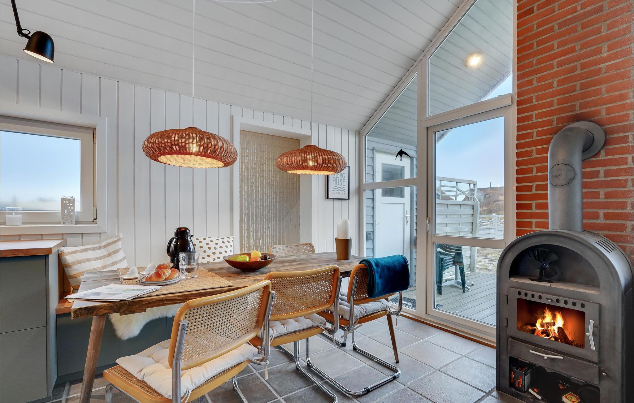 Her bor I midt i vestkystens smukke klitlandskab, der ligger som en beskyttende dyne om huset, der er renoveret i 2020 og er ideelt til en hyggelig familieferie. Her er tre soveværelser. Opholdsstuen er et naturligt samlingssted hvor I kan samles om brætspil, med ild i brændeovnen, eller bare nyde den smukke udsigt gennem de store vinduespartier.