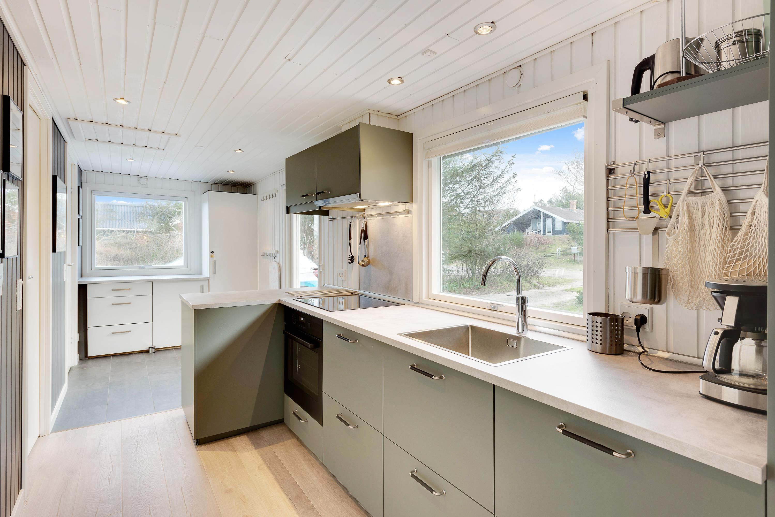 Dette charmerende træferiehus byder jer straks velkommen i rolige og grønne omgivelser. Indenfor mødes I af en personlig og hyggelig indretning, hvor små detaljer og store vinduer skaber en lys og indbydende atmosfære med smuk udsigt til naturen omkring jer.