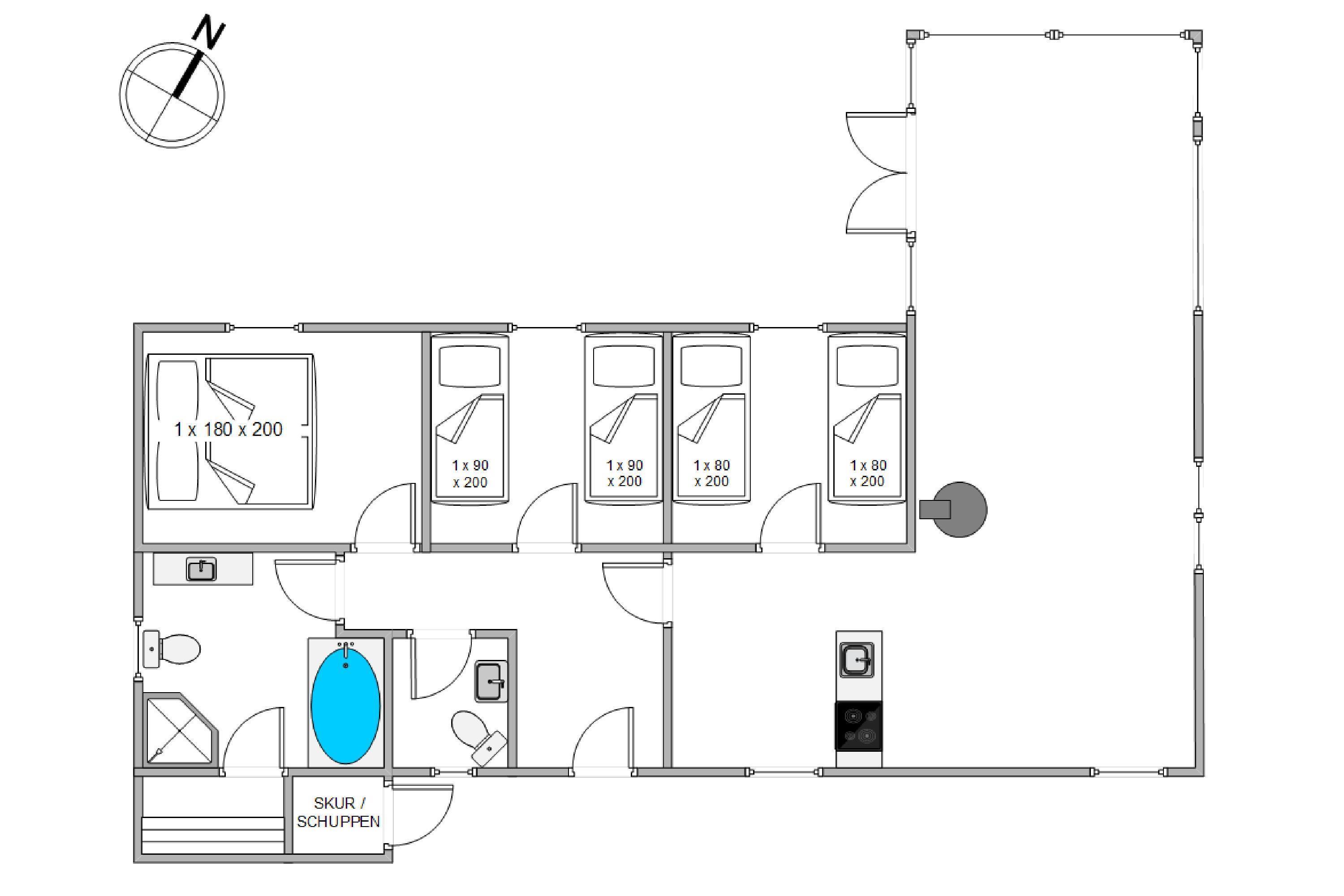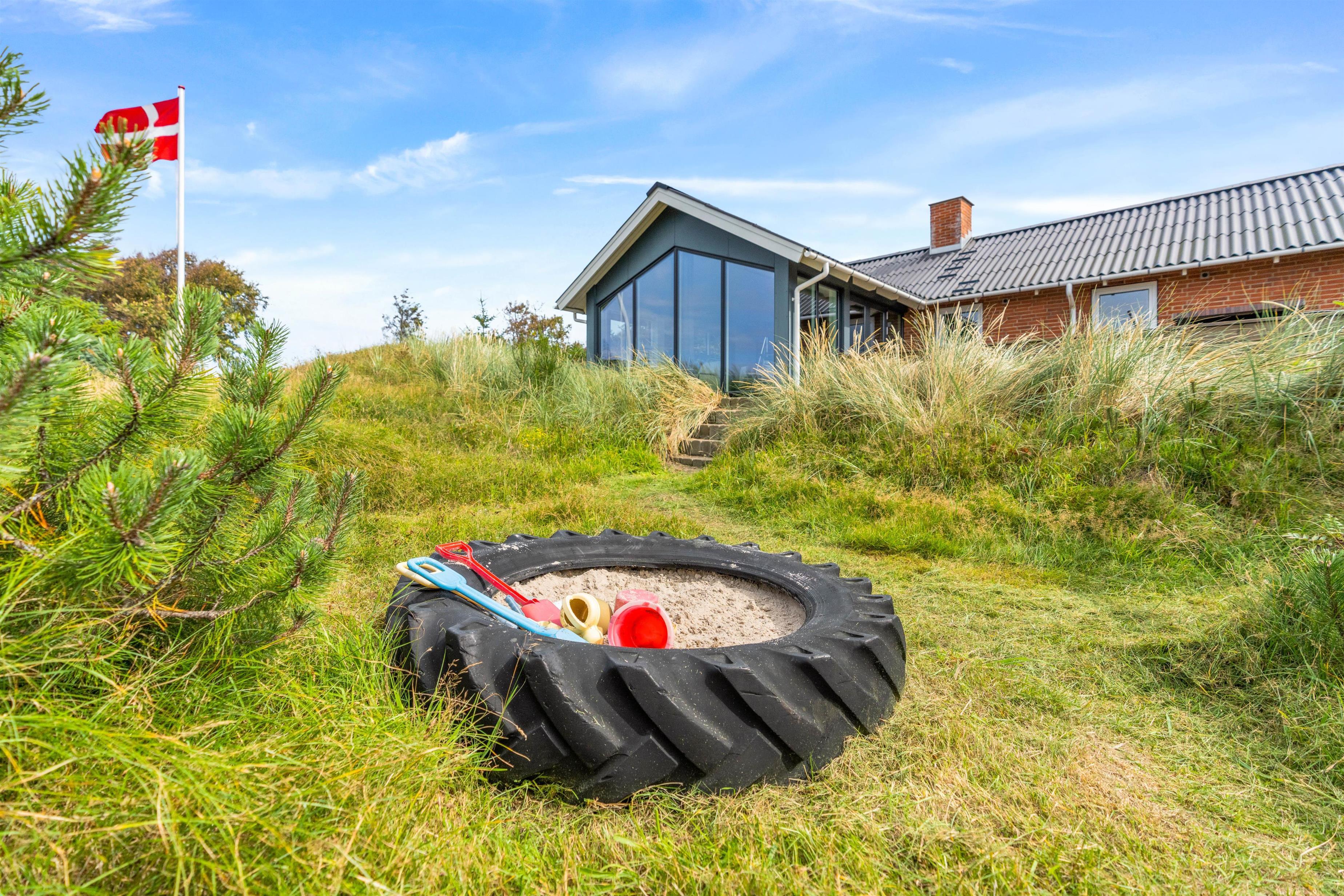 Med kun 1200 meter til den kilometer lange sandstrand og det brusende Vesterhav, kan det helt klar anbefales at tage en tur i vandet på de varmere sommerdage, for at blive kølet af i varmen. Når I kommer tilbage til sommerhuset, kan I benytte udebruseren, og få vasket det værste sand af kroppen. (Udebruseren kan benyttes fra april til og med oktober).