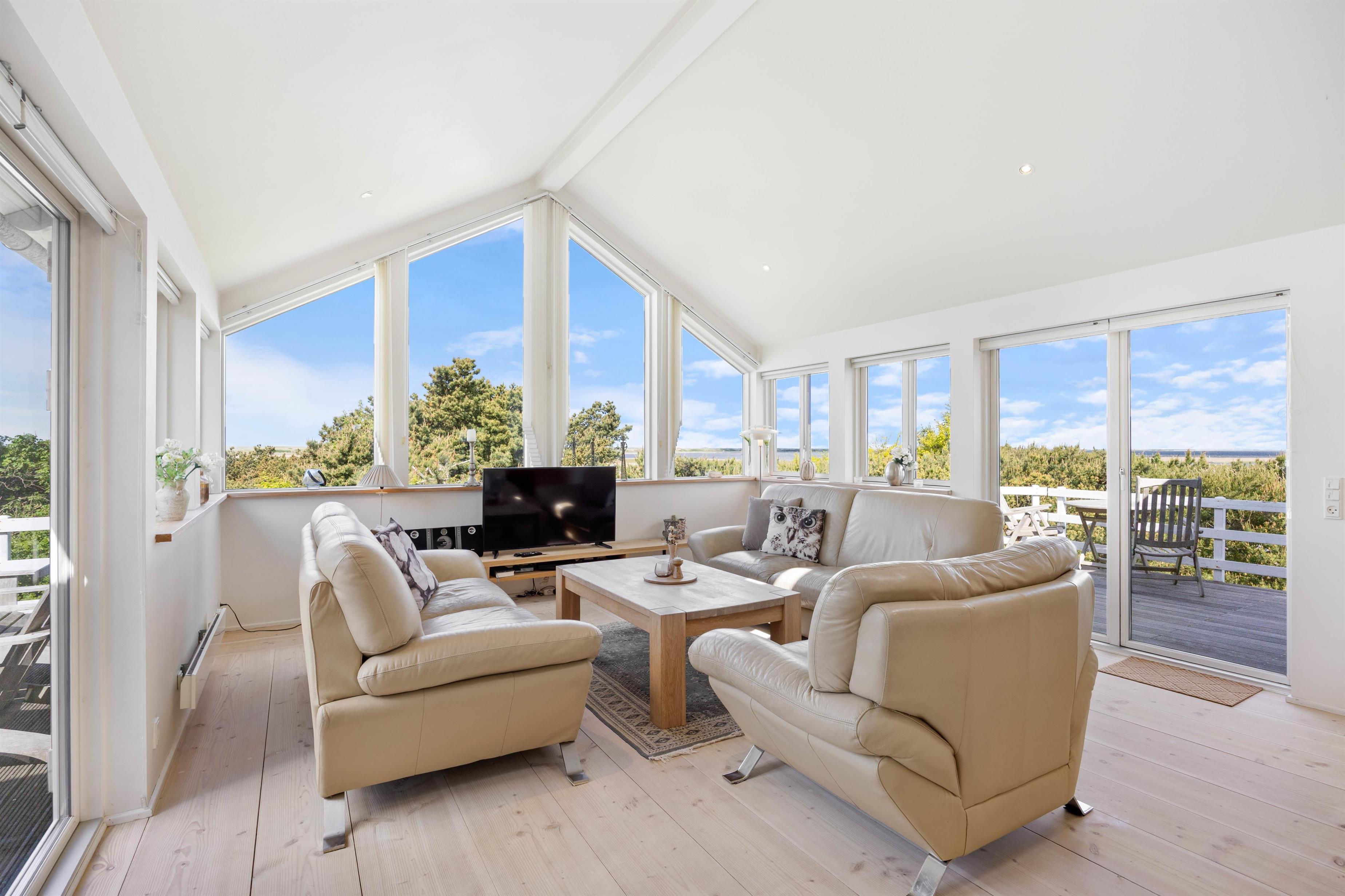 Feriehusets specielle konstruktion giver jer en smuk panoramaudsigt over Nissum Fjord.