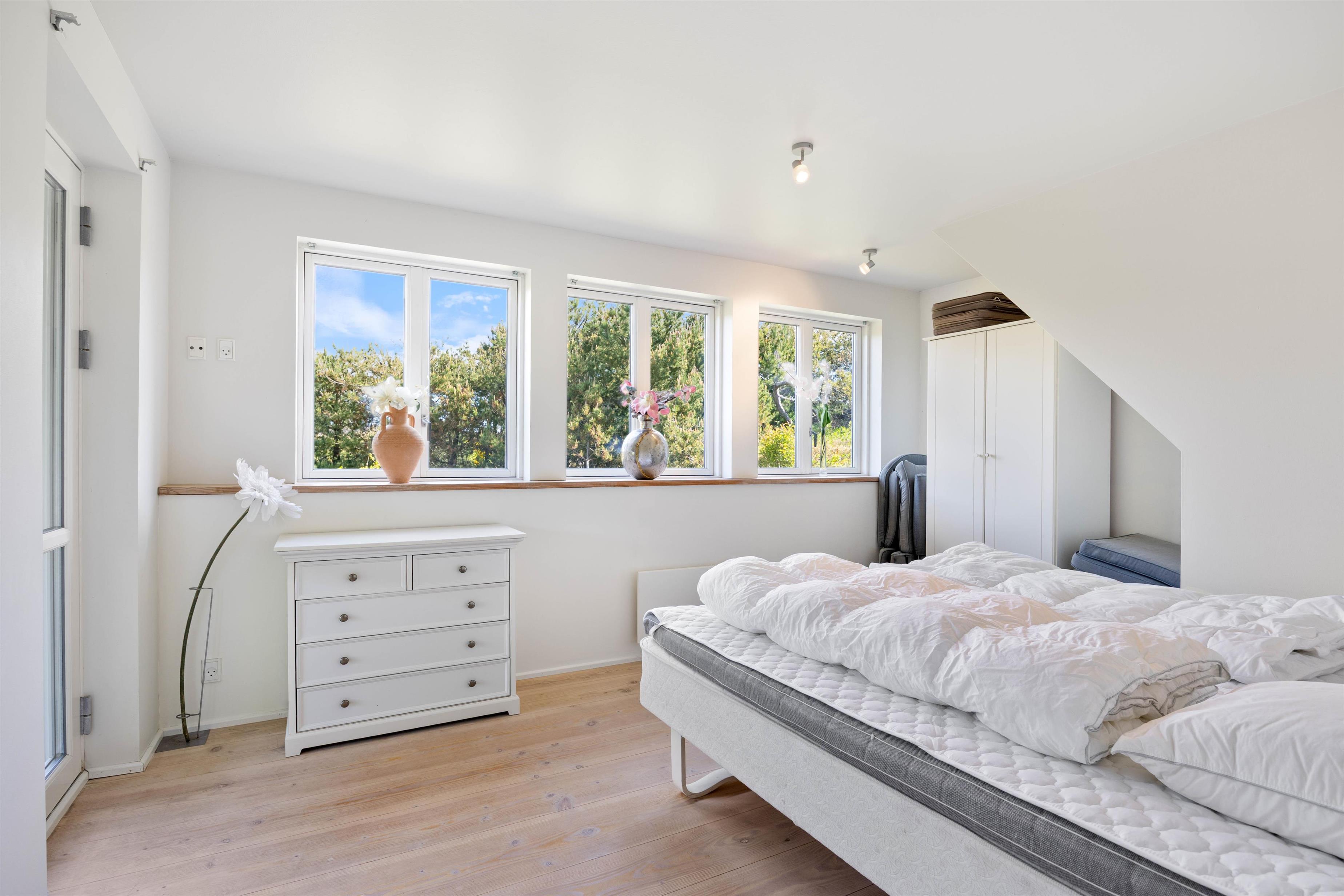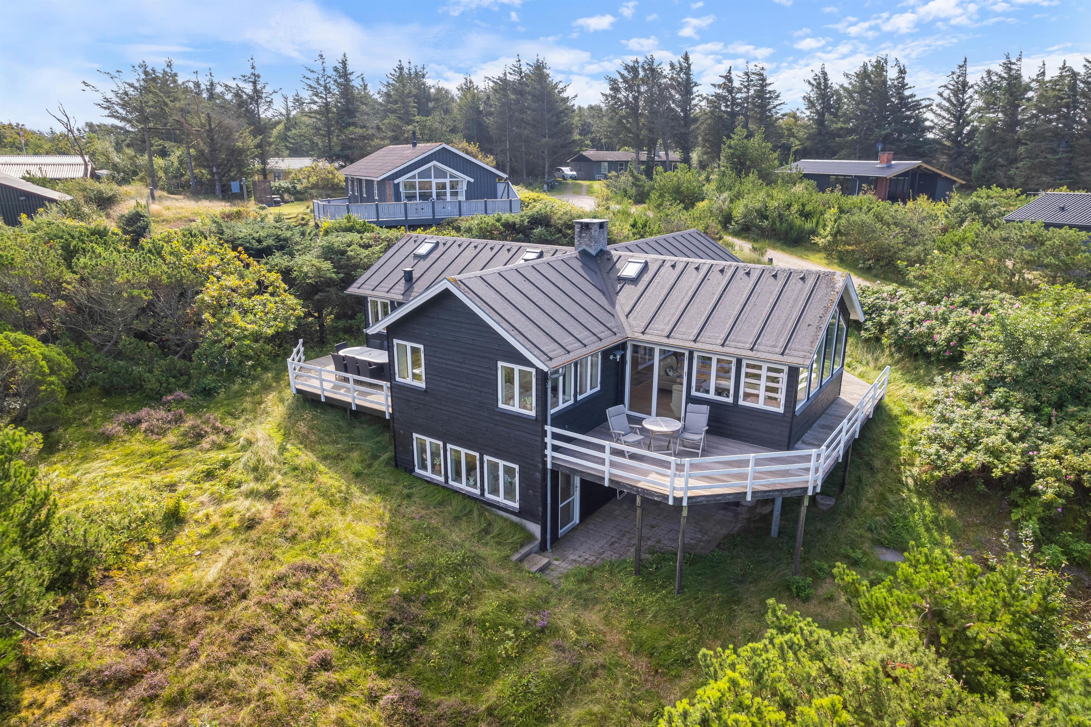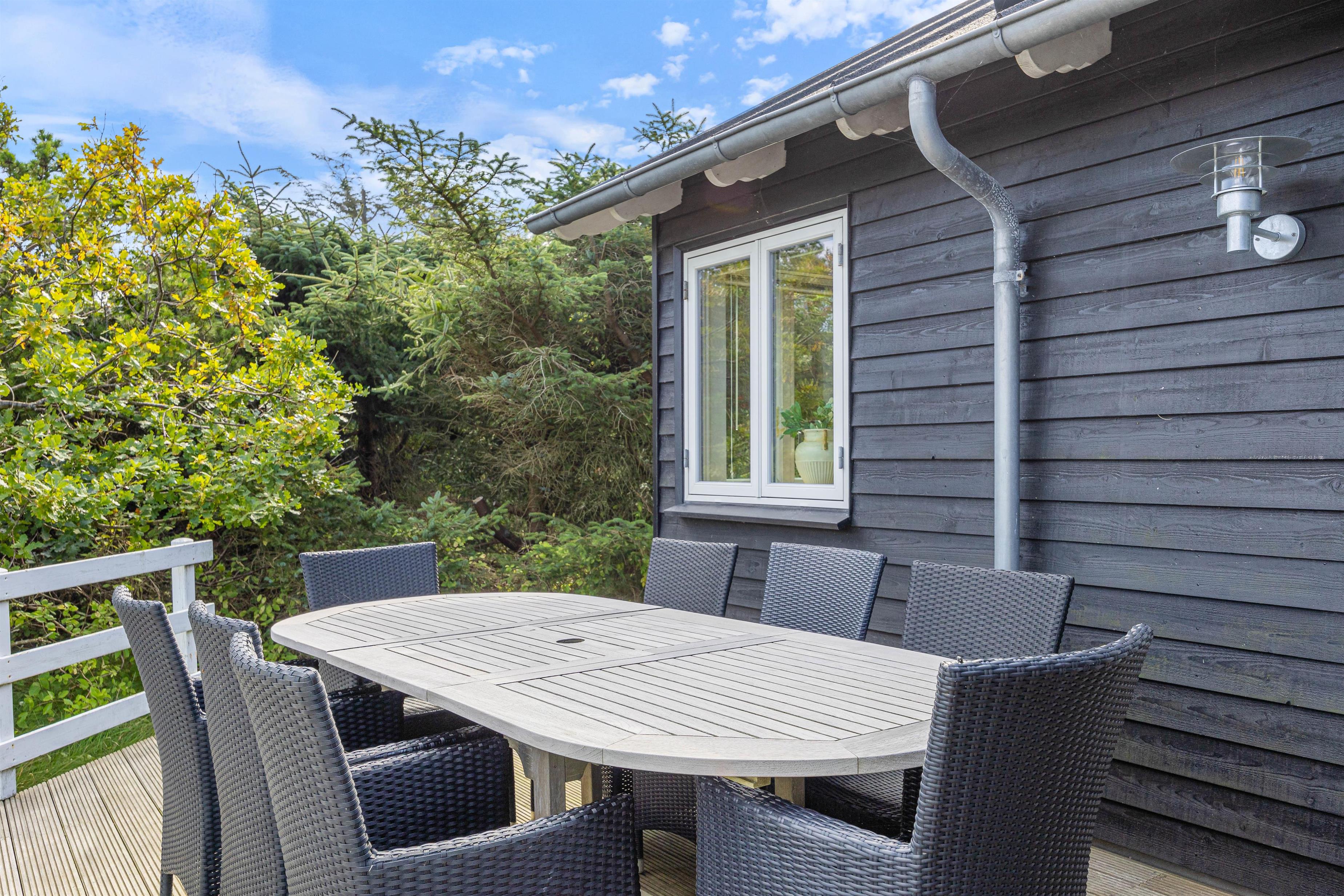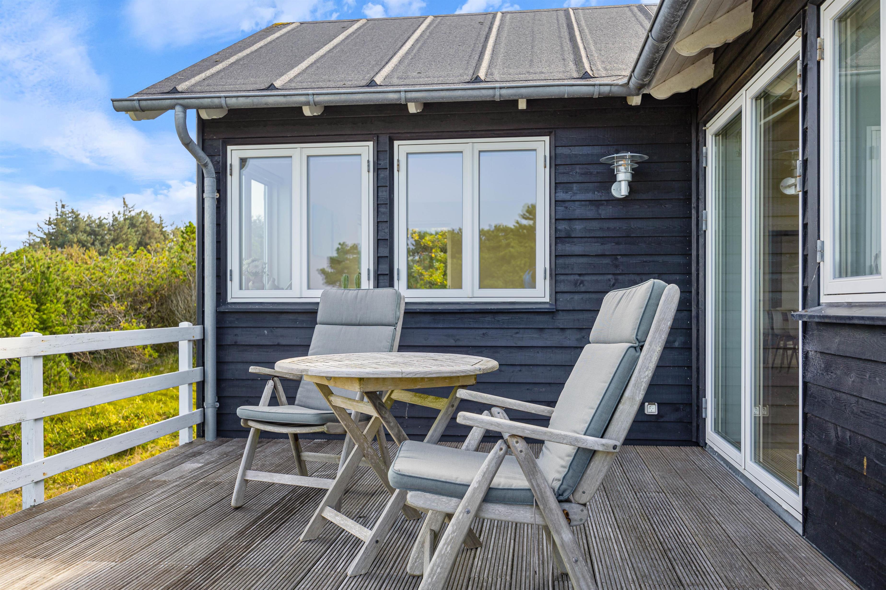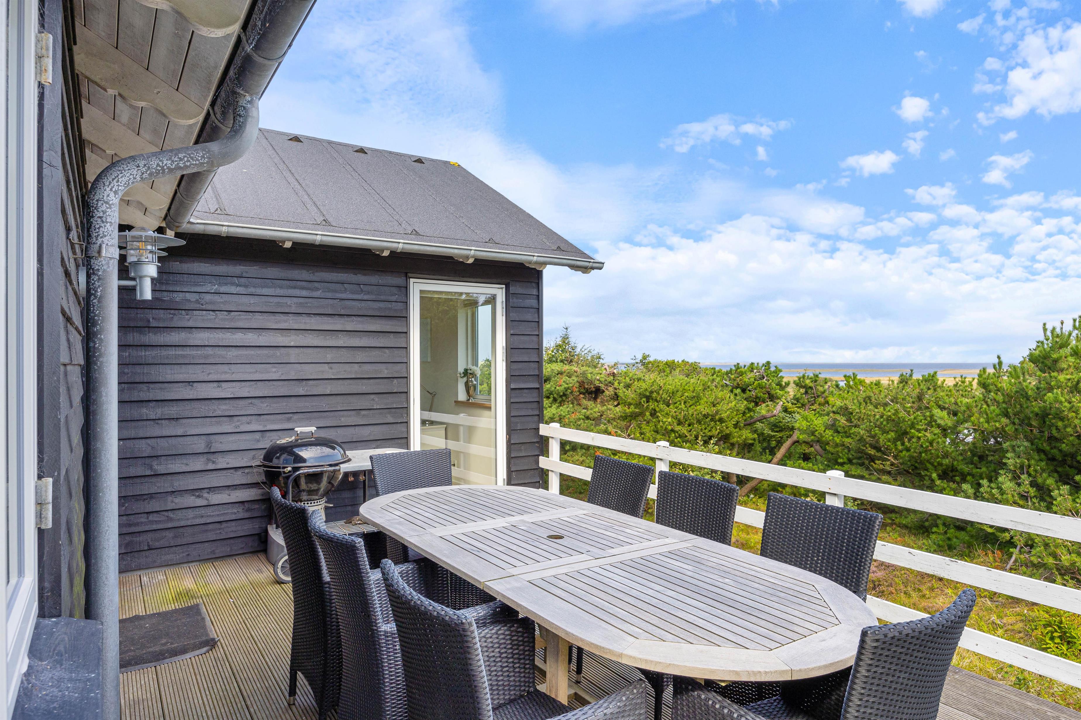 På øverste etage er der flere udgange til terrassen, som næsten går hele vejen rundt om feriehuset. Terrassen med de smukke møbler indbyder til afslapning. Nogle gange er lige det man har brug for at slappe af, er at tænde op i grillen på en varm sommeraften og nyde noget koldt at drikke.