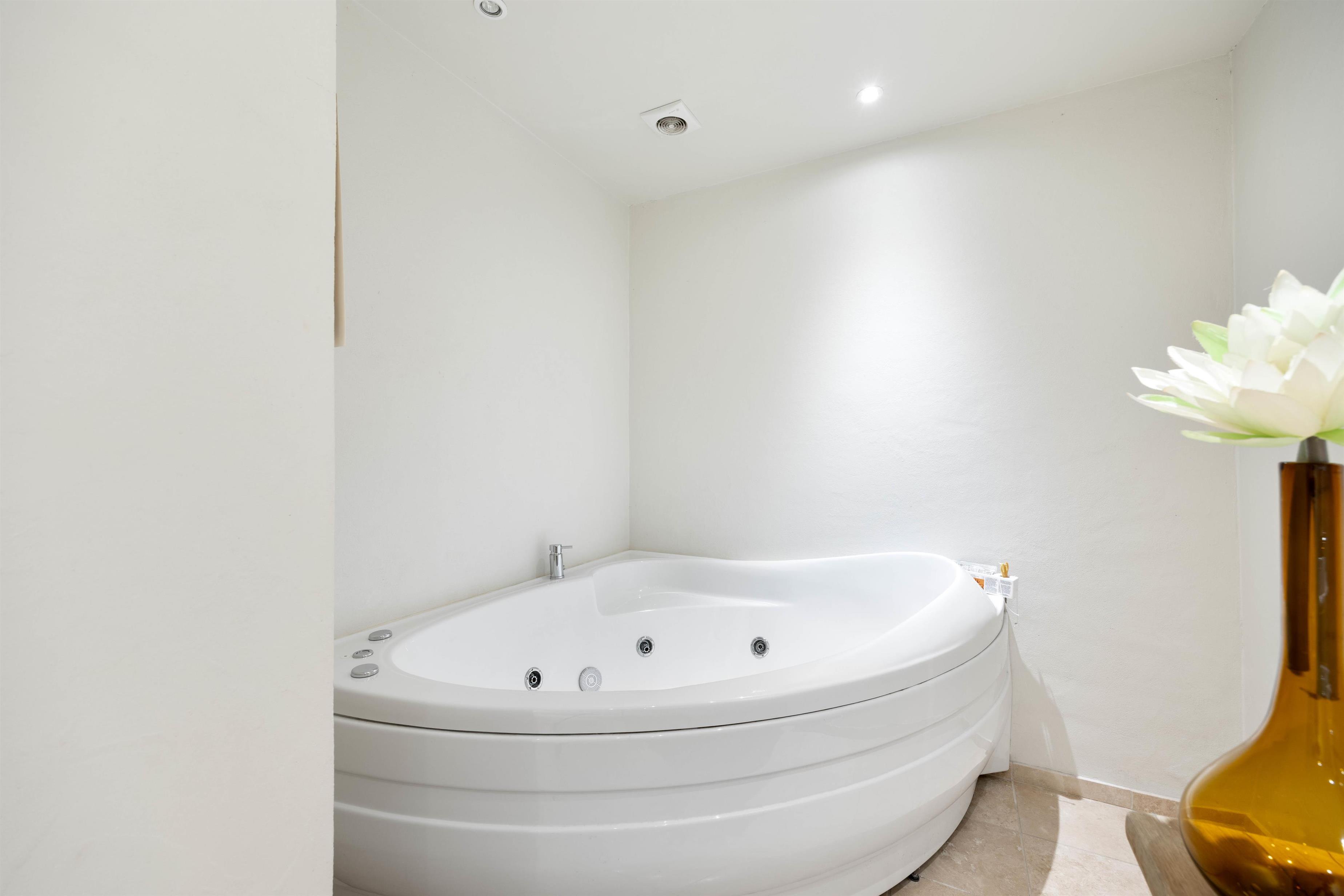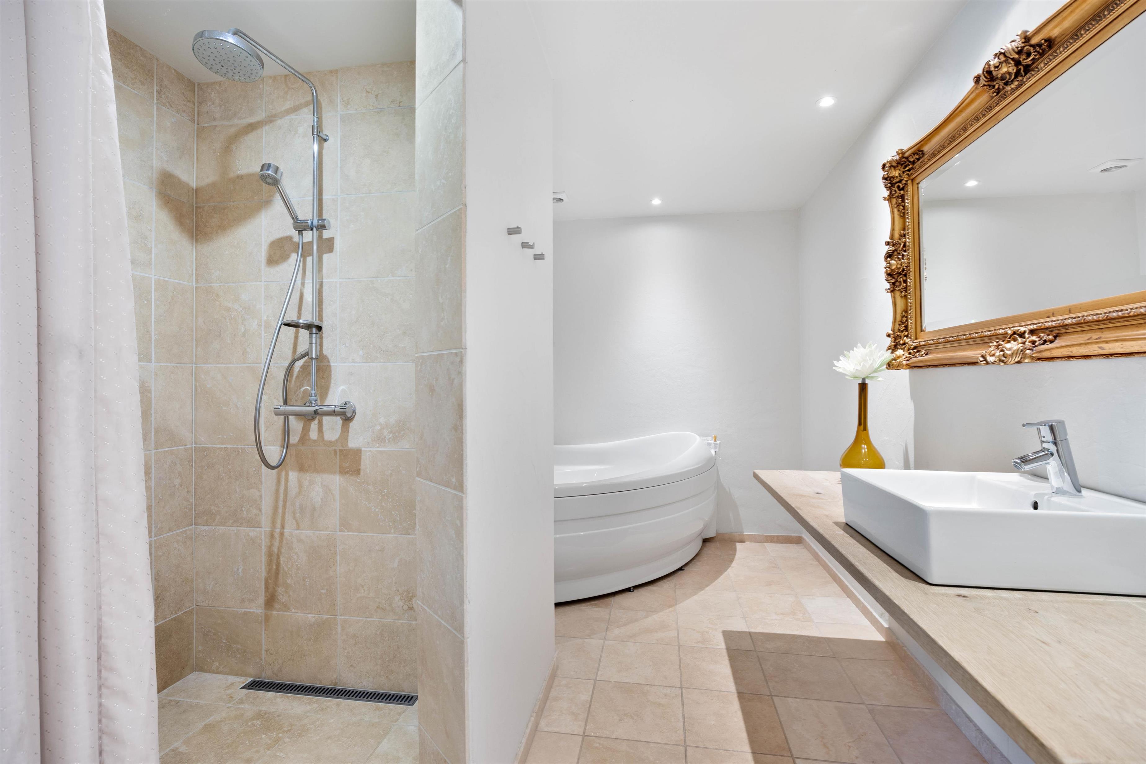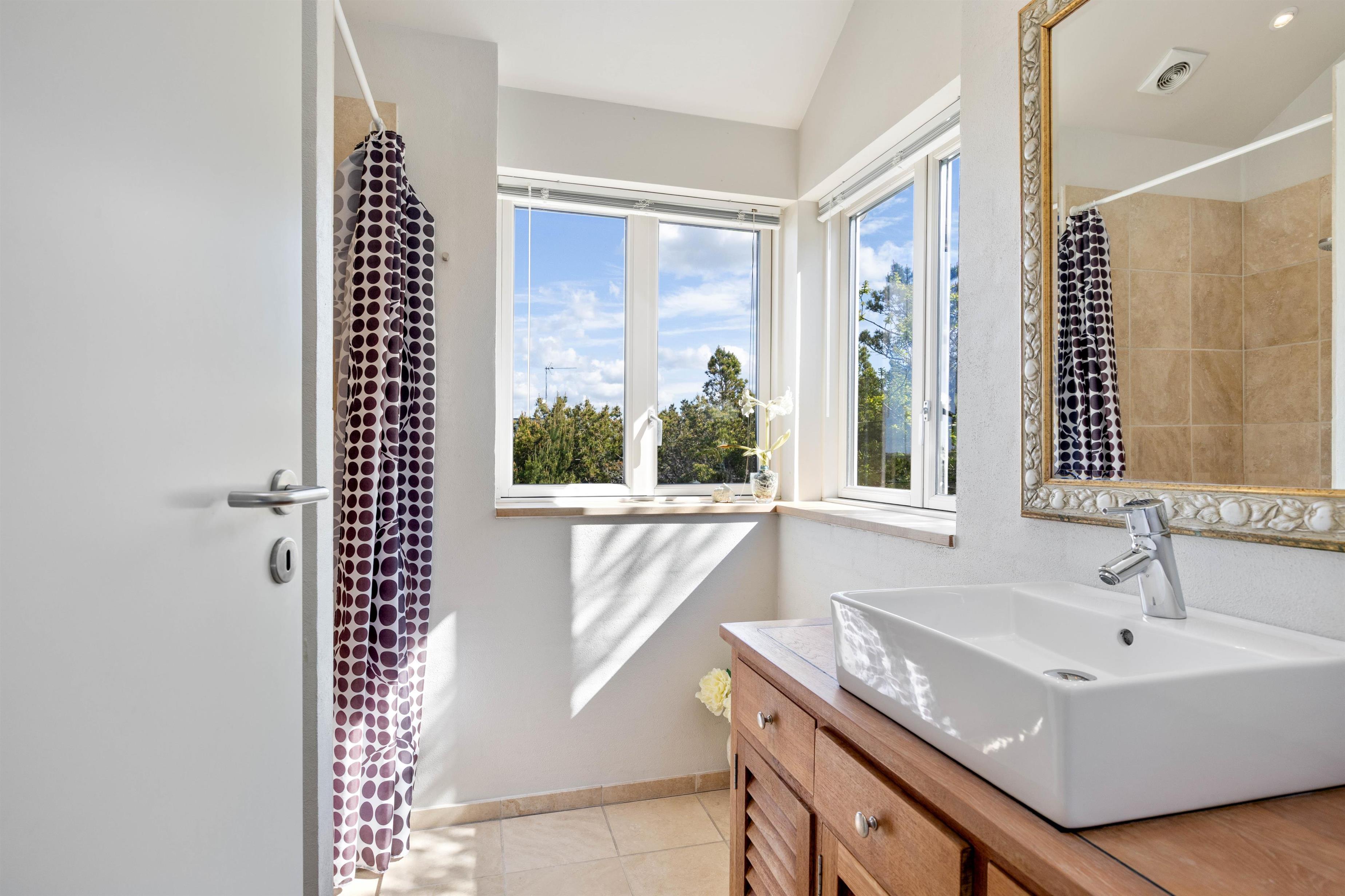 På samme etage finder I et badeværelse og 3 soveværelser, hvoraf det ene er et gennemgangsrum, så I kan komme ned i kælderen via trappen. I kælderen finder I endnu et soveværelse. Der er direkte adgang til en af terrasserne. Der er også et stort badeværelse med spa. For at gøre jeres ferie lettere er der vaskemaskine og tørretumbler i feriehuset.