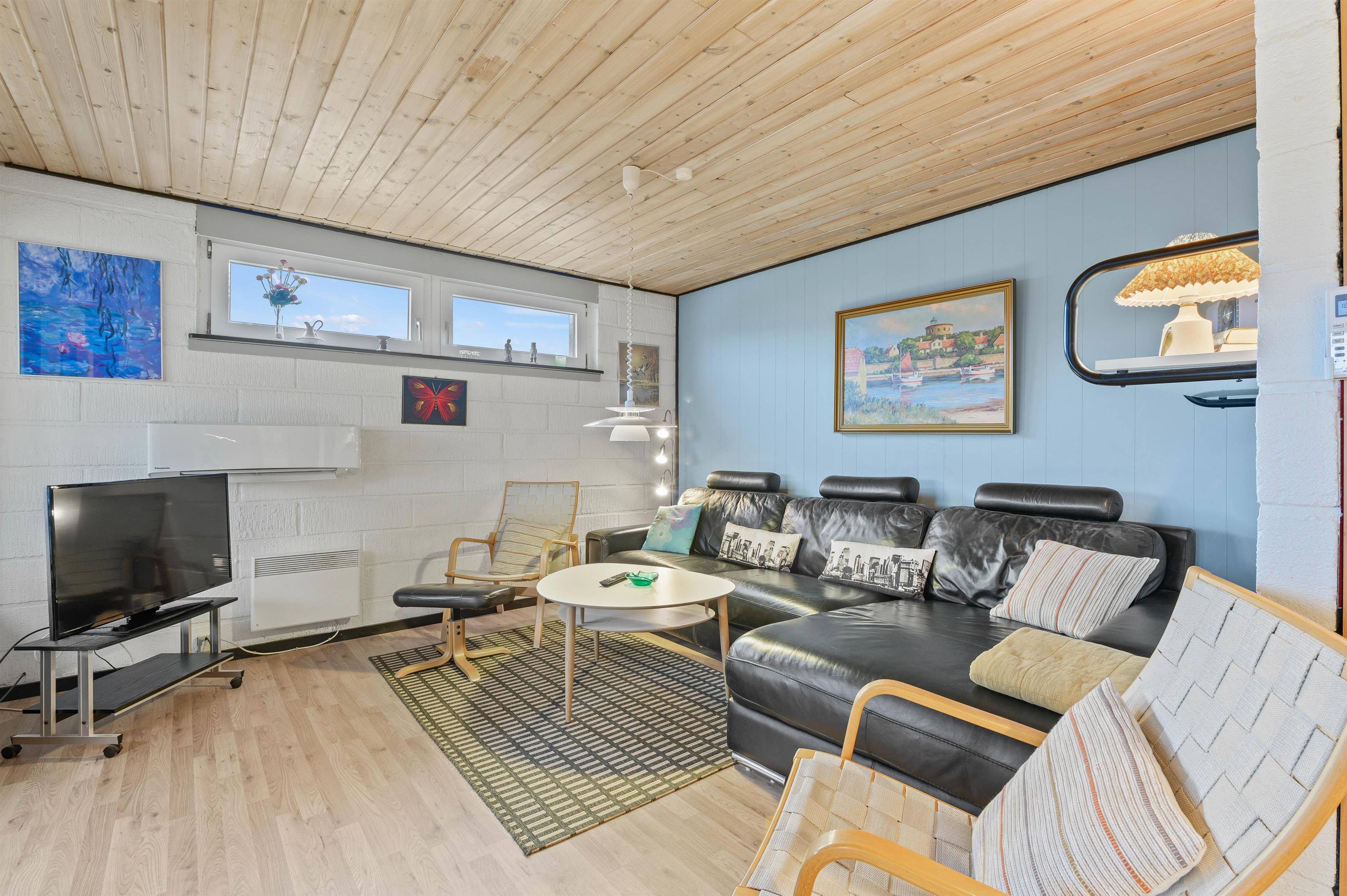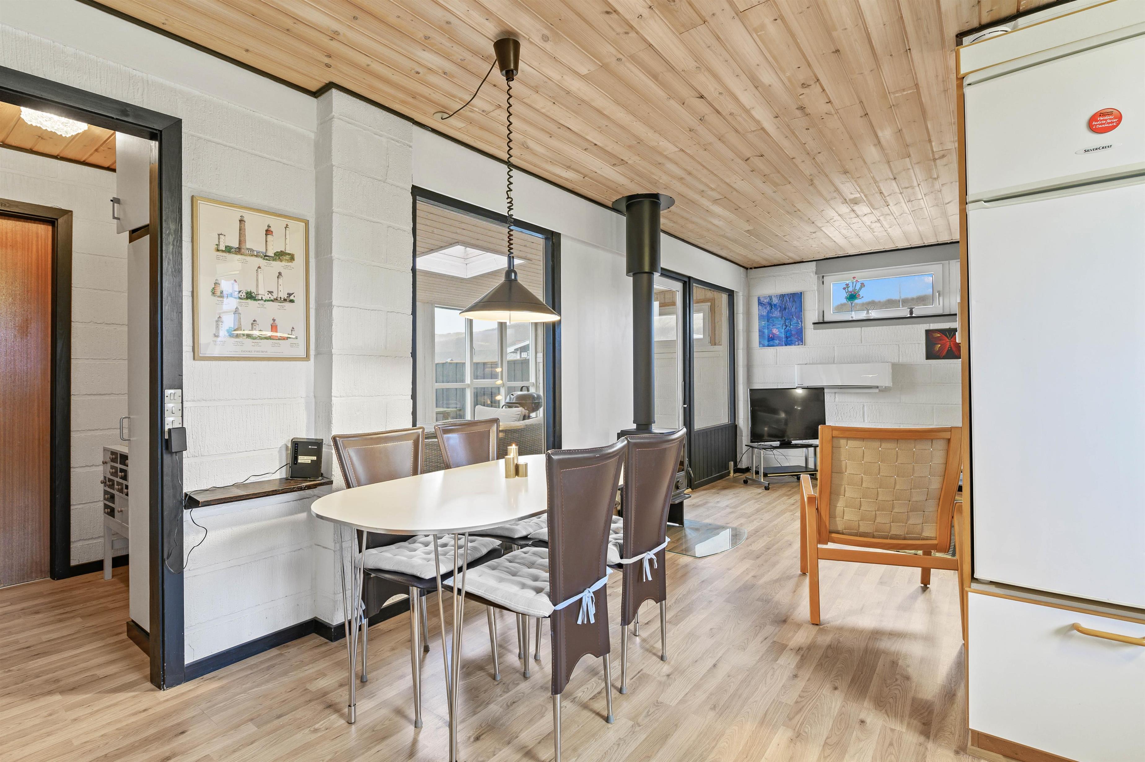 Indendørs venter et lyst og indbydende alrum, hvor køkken, stue og spiseplads er samlet i ét – perfekt til samvær og hyggelige stunder. Her kan I se film i sofaen, spille spil ved spisebordet og tilberede feriemiddage i det veludstyrede køkken. Efter maden sørger opvaskemaskinen for, at I slipper for opvasken.